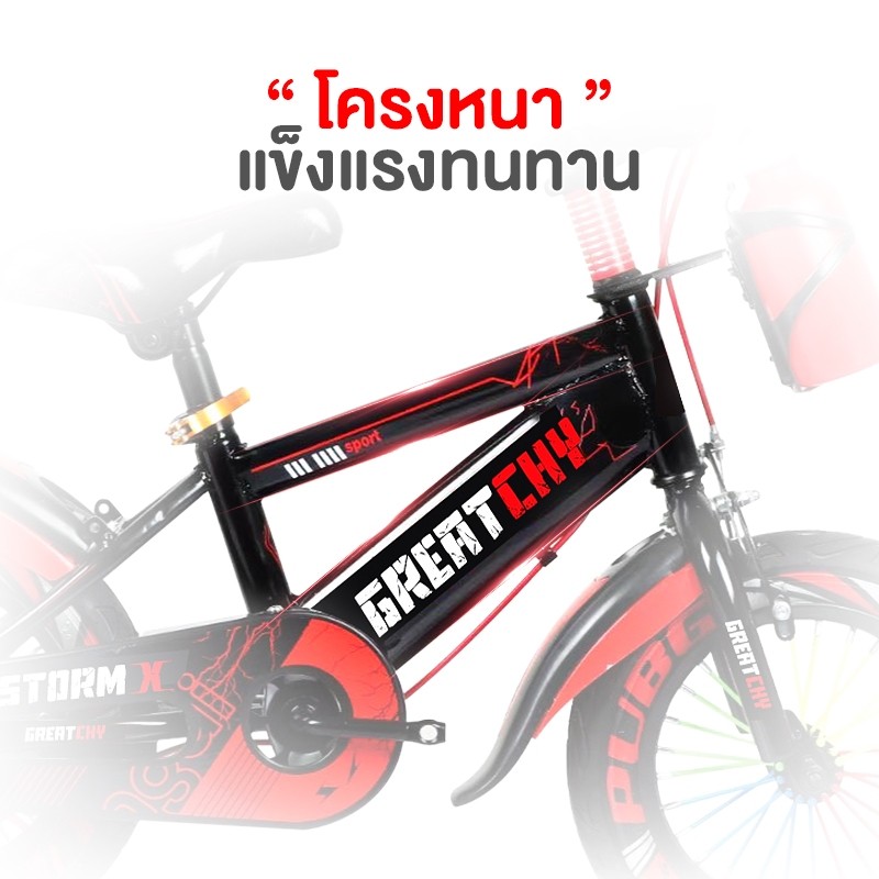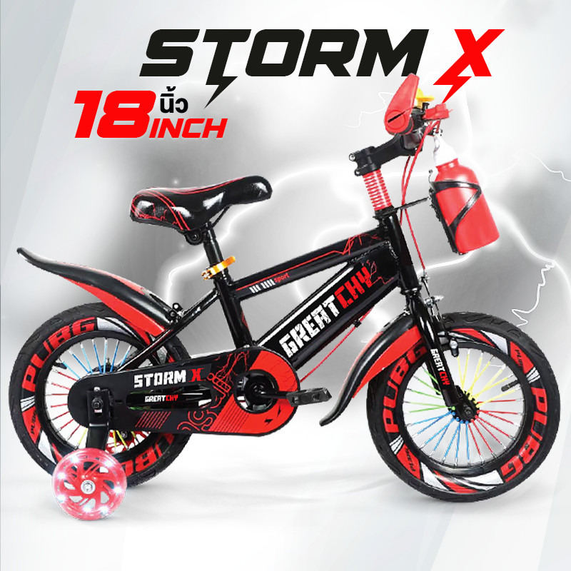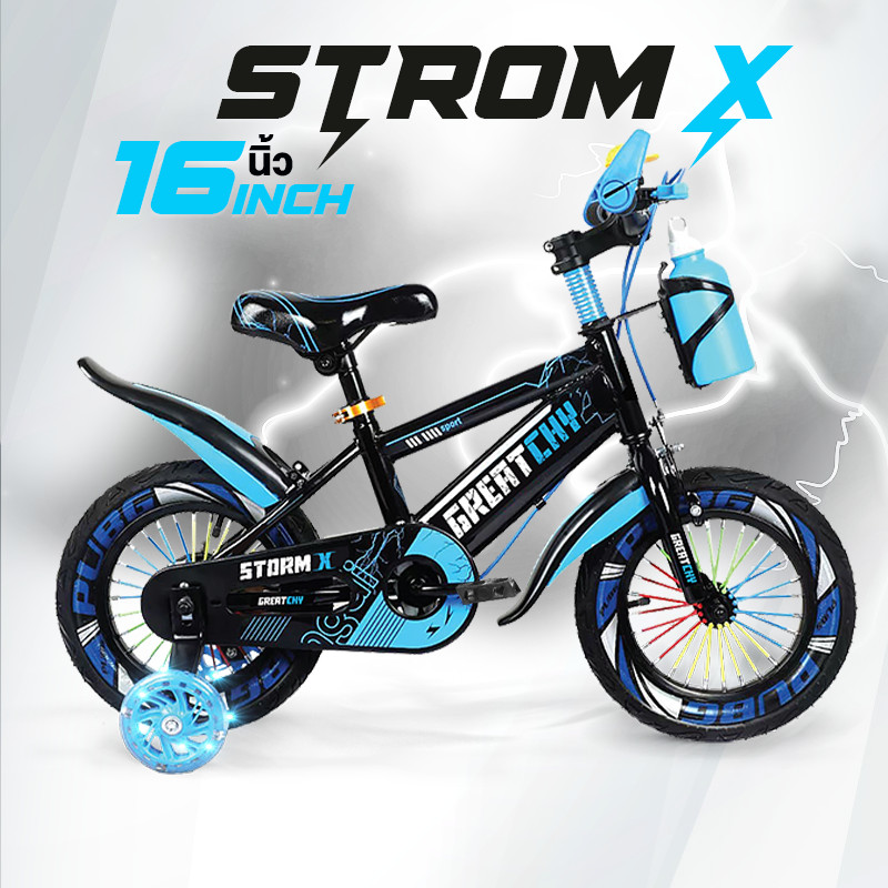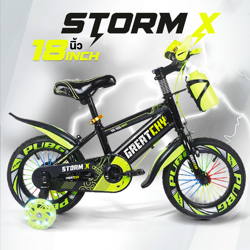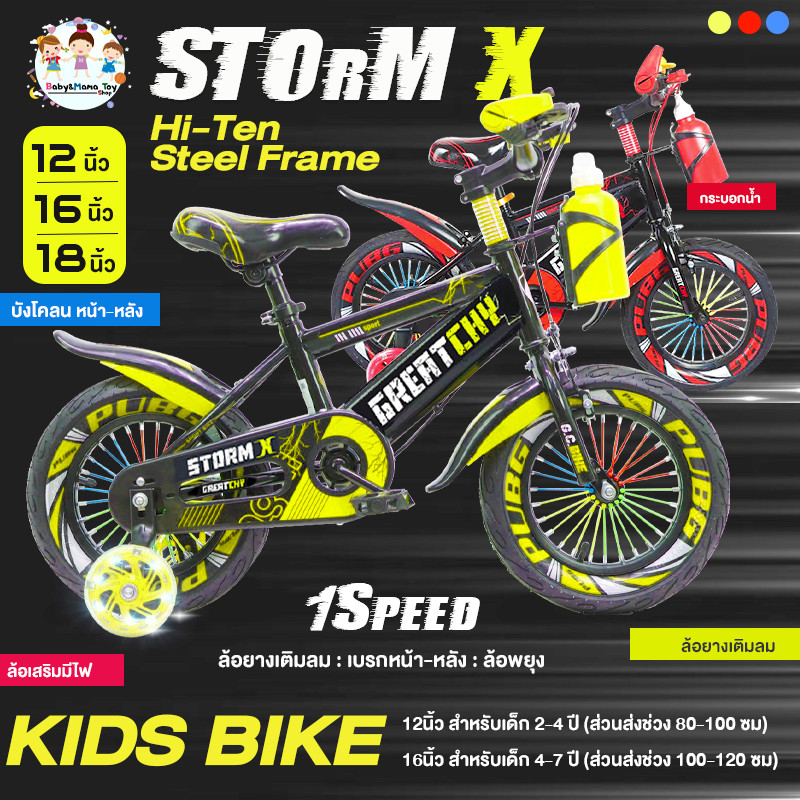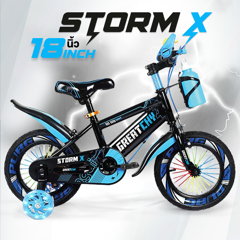 Greatchy จักรยานเด็ก Storm X จักรยานเสือภูเขา 12/16/18นิ้ว ยางเติมลม ยางมีลาย ล้อเสริมมีไฟ กระบอกน้ำ