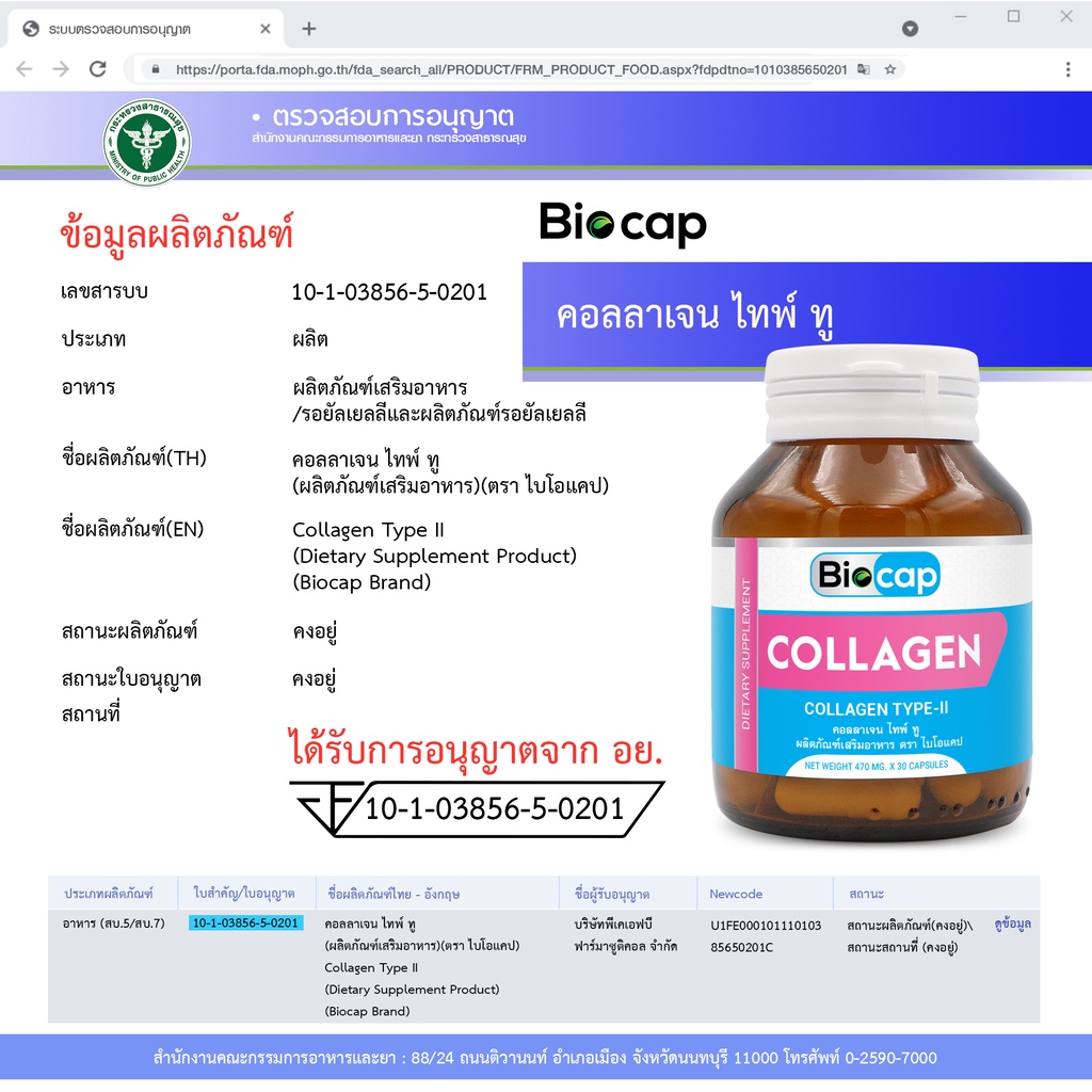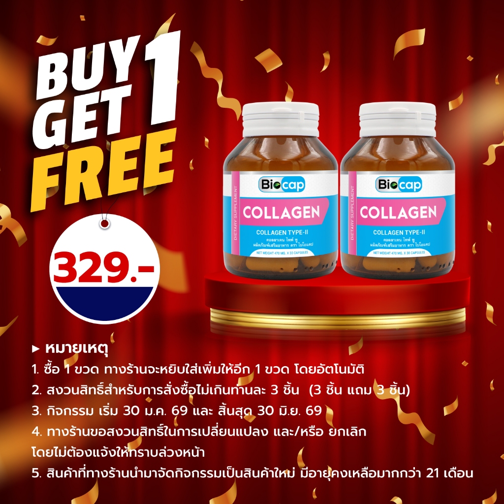 [ซื้อ 1 แถม 1] คอลลาเจนไทพ์ทู ไบโอแคป Collagen Type2 Type II Type2 Biocap คอลลาเจนไทป์ทู คอลลาเจน ไทพ์ทู ไทป์ทู ไทพ์2
