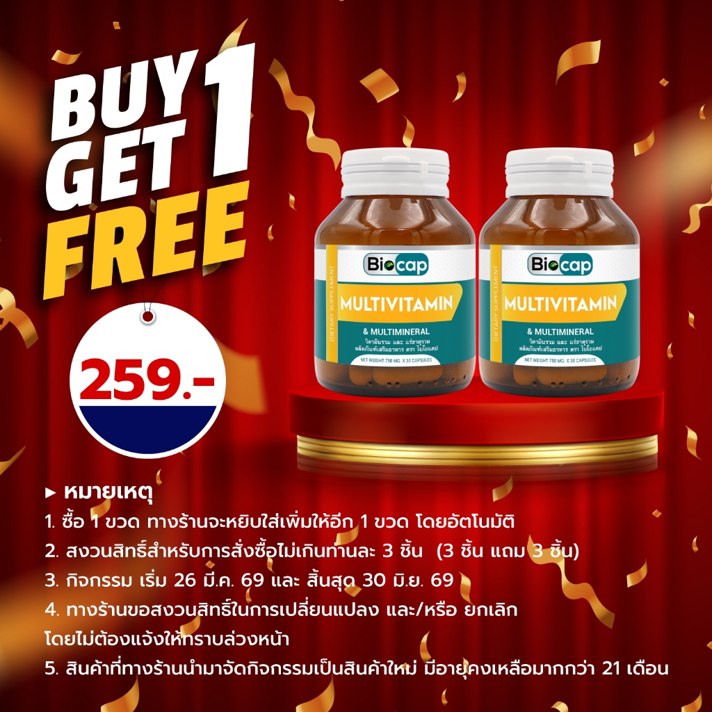 [ซื้อ 1 แถม 1] วิตามินรวม แร่ธาตุรวม ไบโอแคป ซิงค์ แมกนีเซียม Multivitamin and Multimineral Biocap Zinc Magnesium