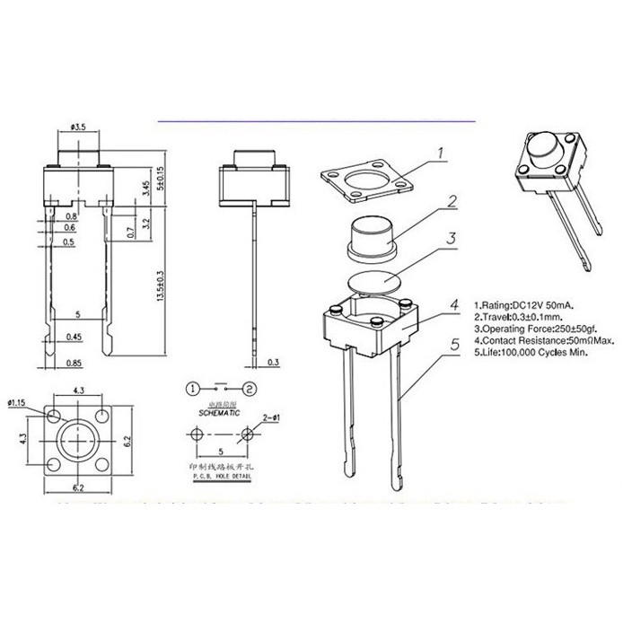 Push Bottom Switch สวิตซ์ 2ขา 6x6x5 mm 5 ชิ้น