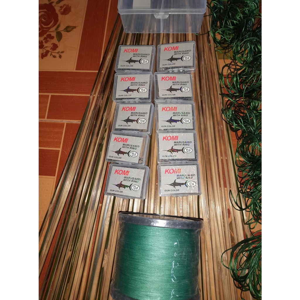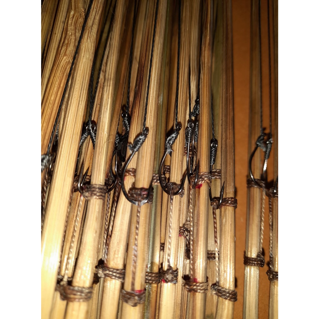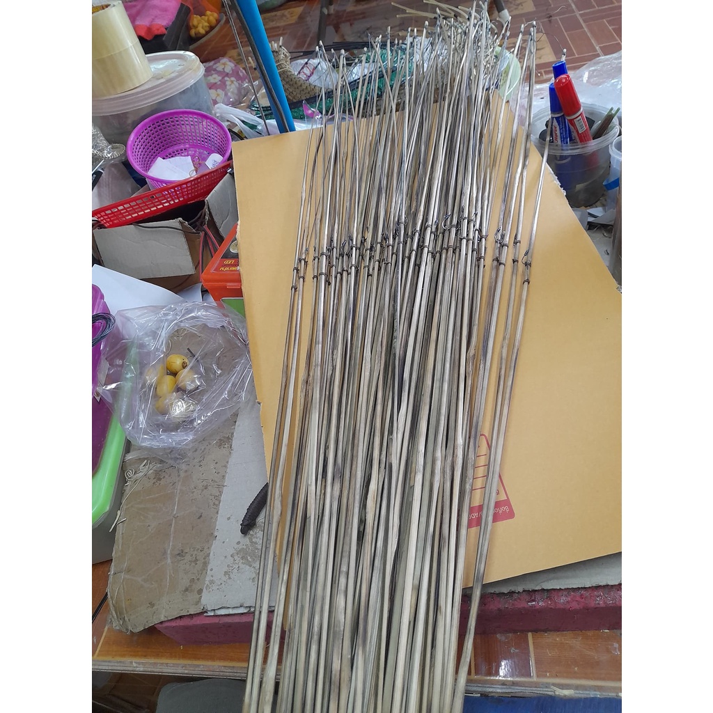 เบ็ดปักคันนา คันไม่ไผ่ ต่อสายเบ็ดด้วย PE งานเหลามือ รมควันอย่างดี เบ็ดปลาฉลามเบอร์14
