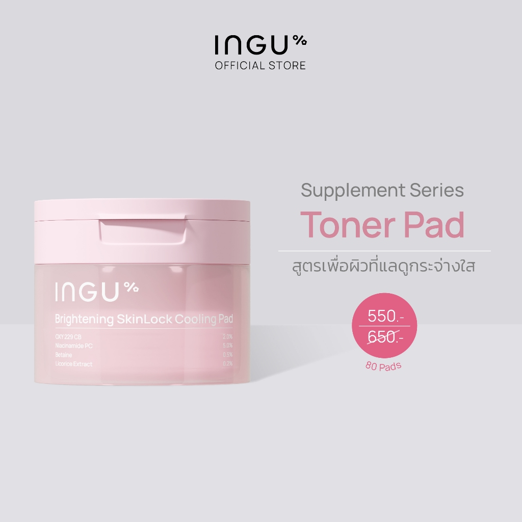 INGU SkinLock Cooling Pad โทนเนอร์แพด สูตร Hydrating เพื่อผิวที่ชุ่มชื้น และ Brightening เพื่อผิวที่แลดูกระจ่างใส 80pads