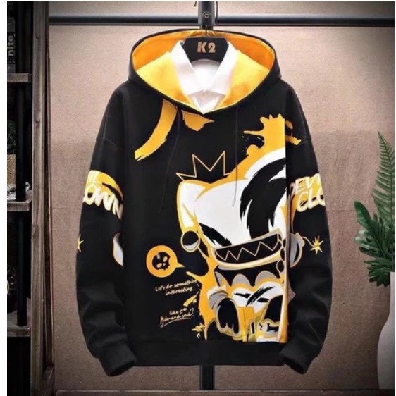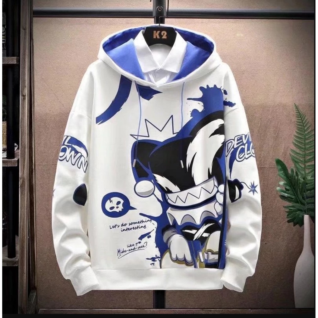 เสื้อจั๊มเปอร์แขนยาว มีฮู้ด พิมพ์ลายการ์ตูน ทรงหลวม แฟชั่นฤดูใบไม้ร่วง และฤดูหนาว สําหรับผู้ชาย