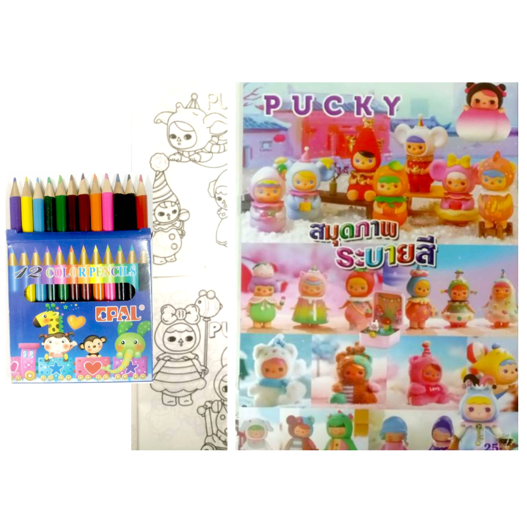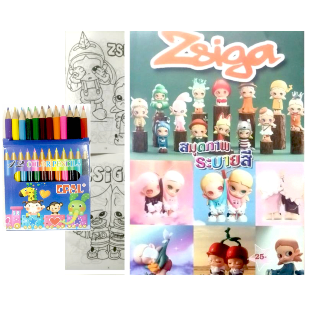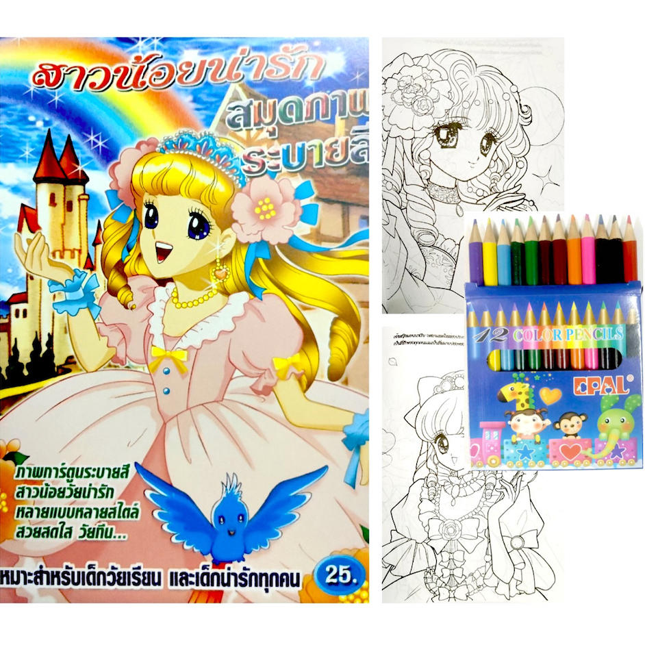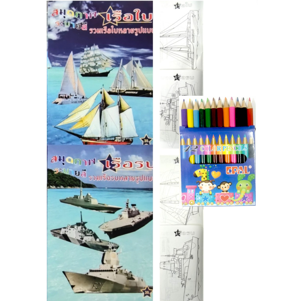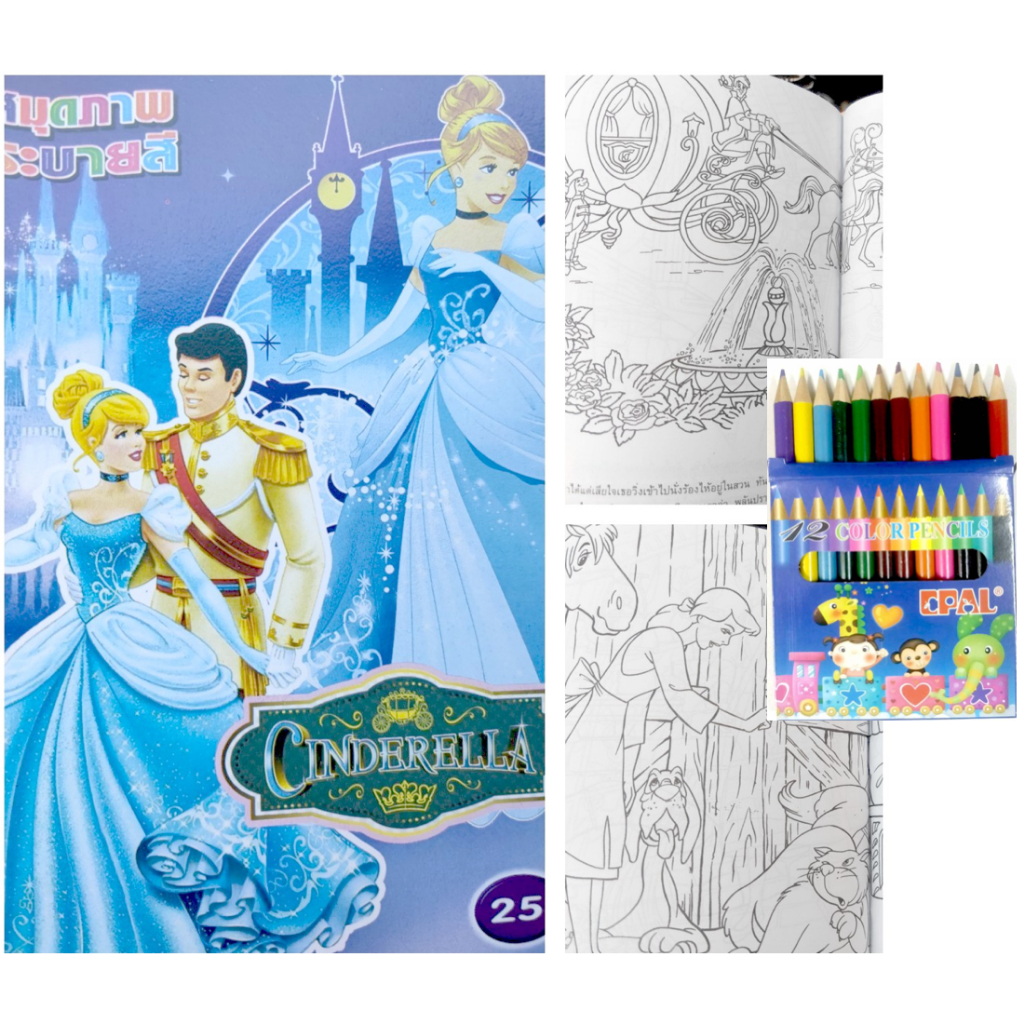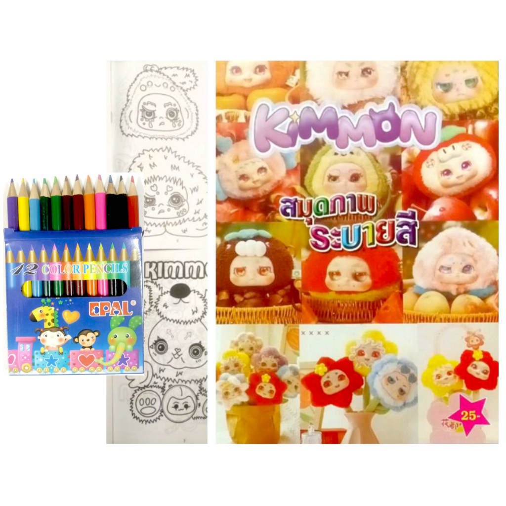 สมุดระบายสีการ์ตูน พร้อมสีไม้สั้น 12 สี มี 70 แบบ 📌20 แถม 1