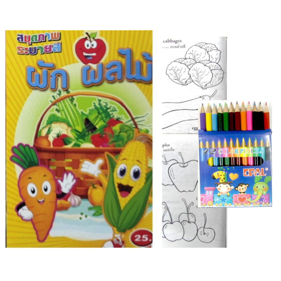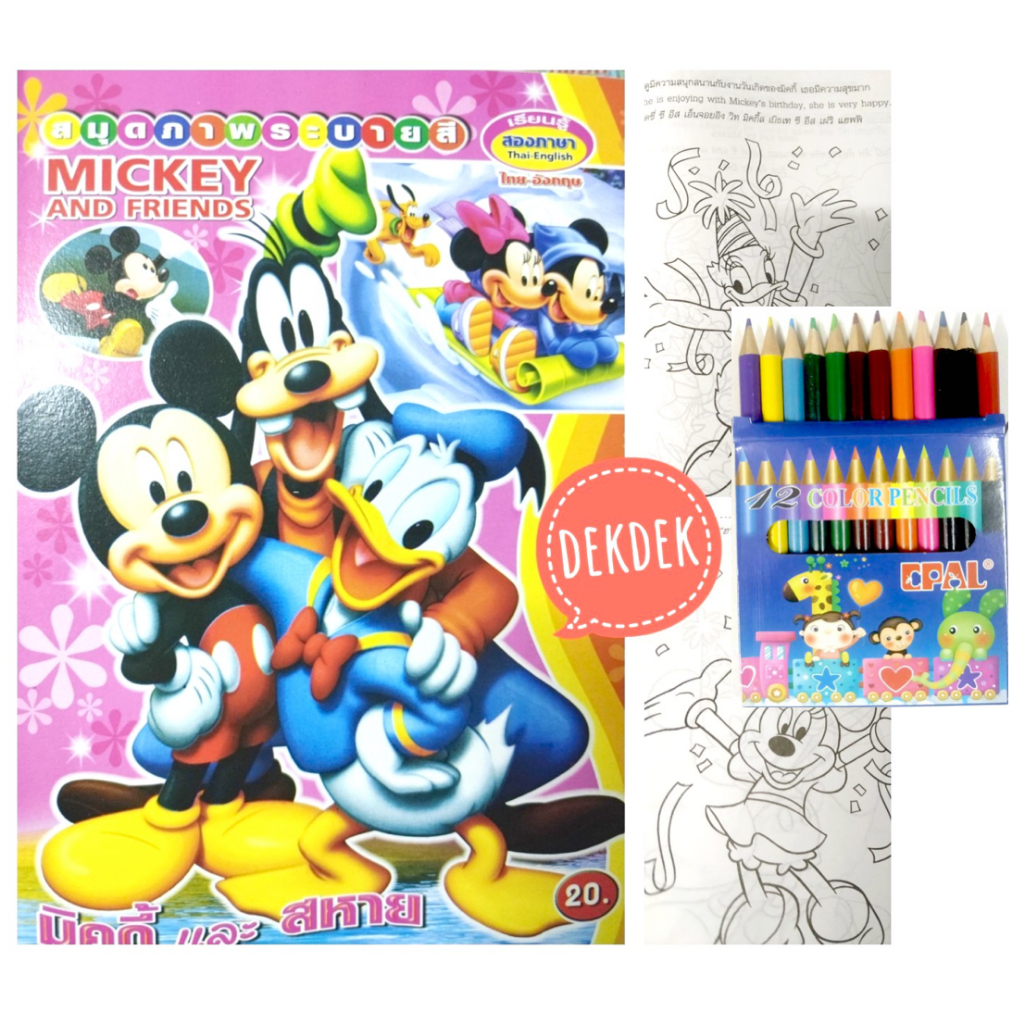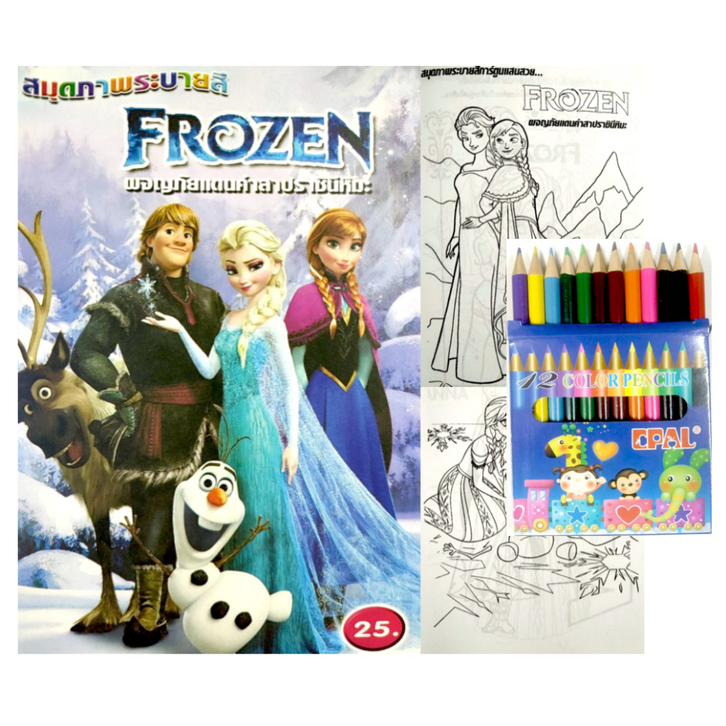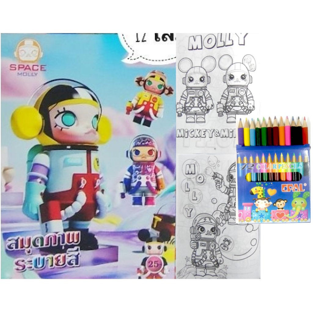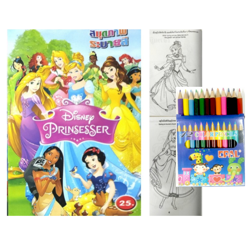 สมุดระบายสีการ์ตูน พร้อมสีไม้สั้น 12 สี มี 70 แบบ 📌20 แถม 1