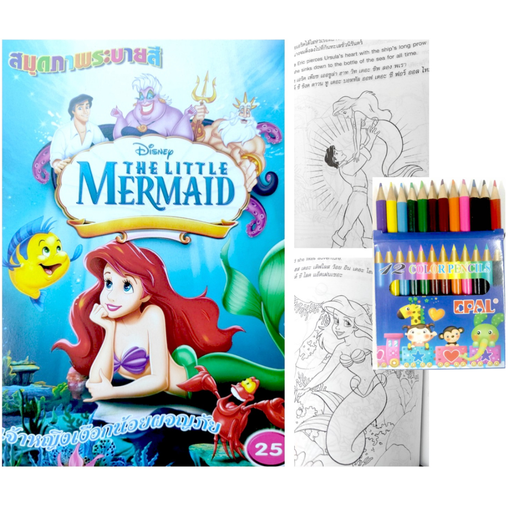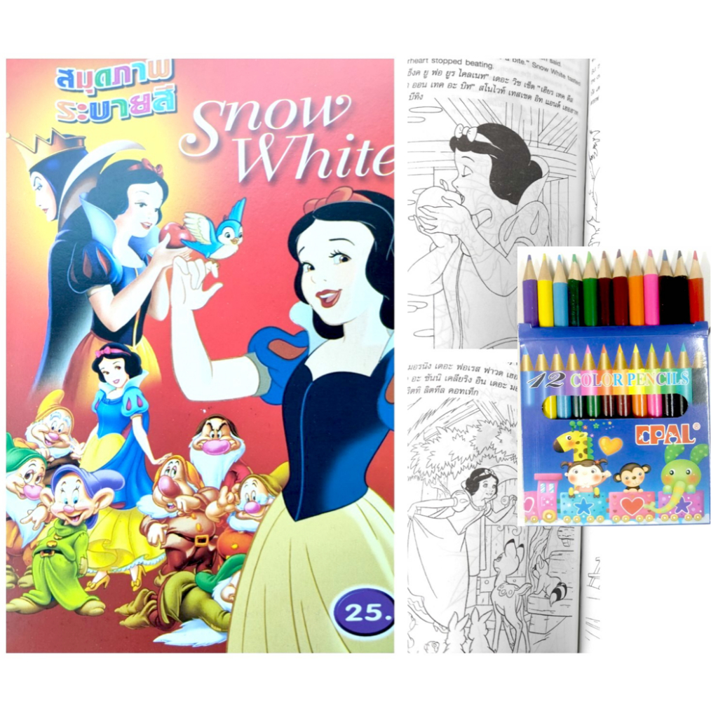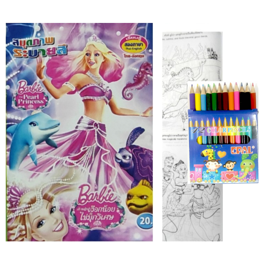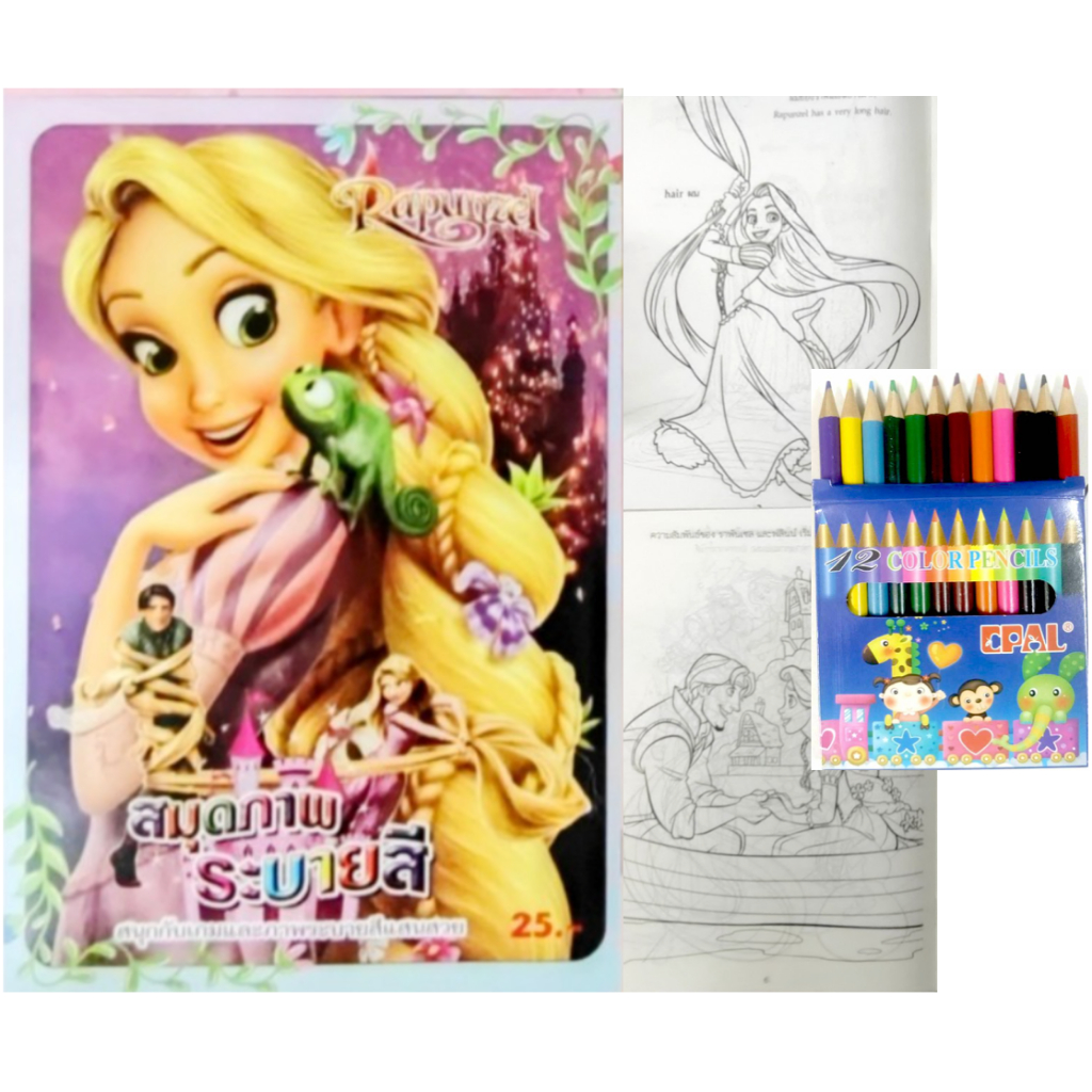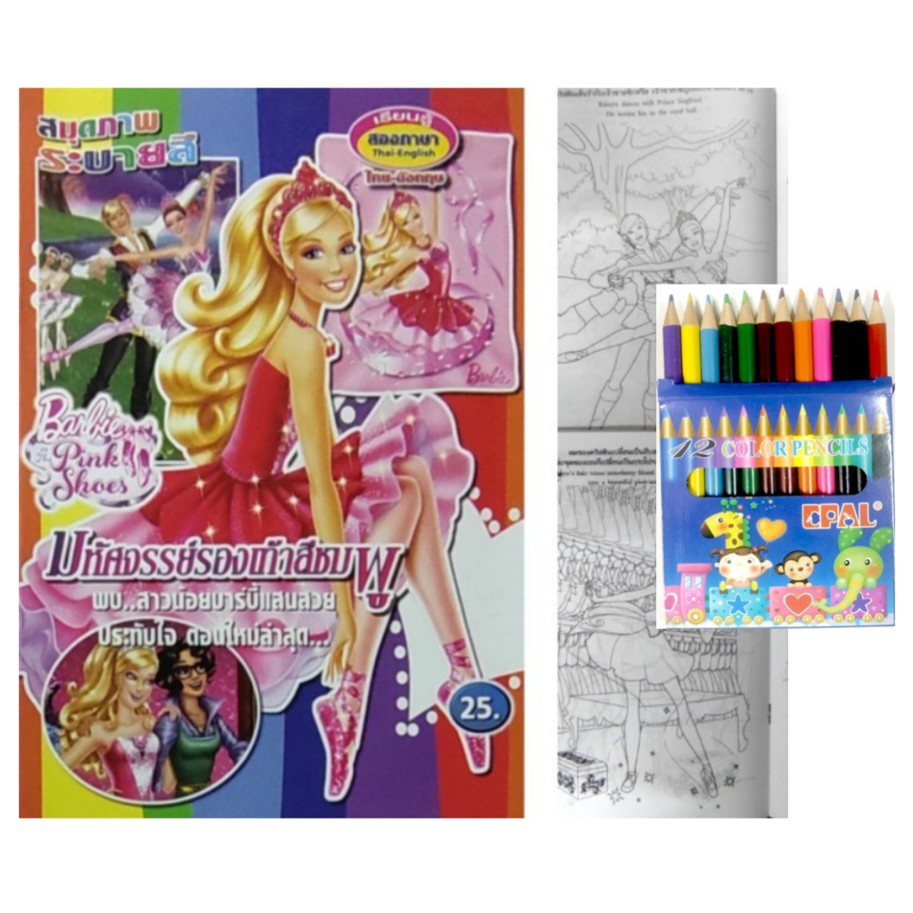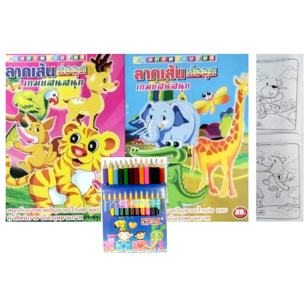 สมุดระบายสีการ์ตูน พร้อมสีไม้สั้น 12 สี มี 70 แบบ 📌20 แถม 1