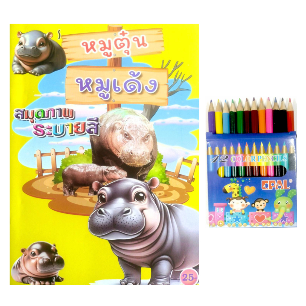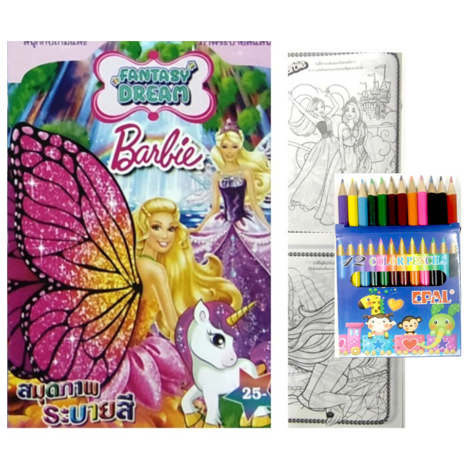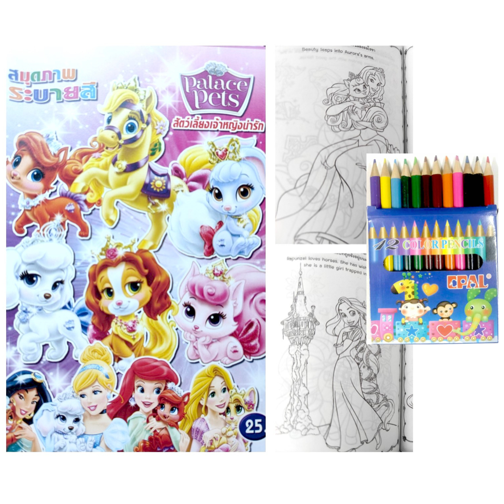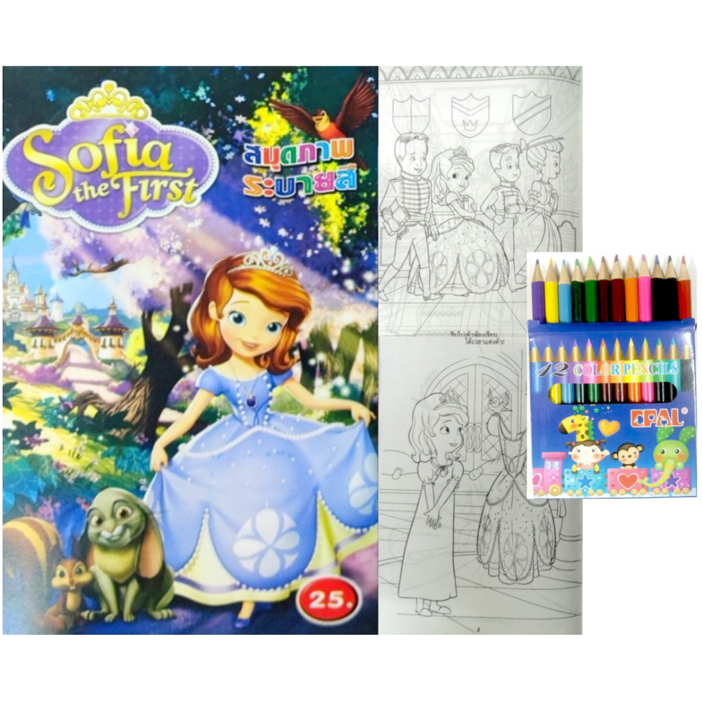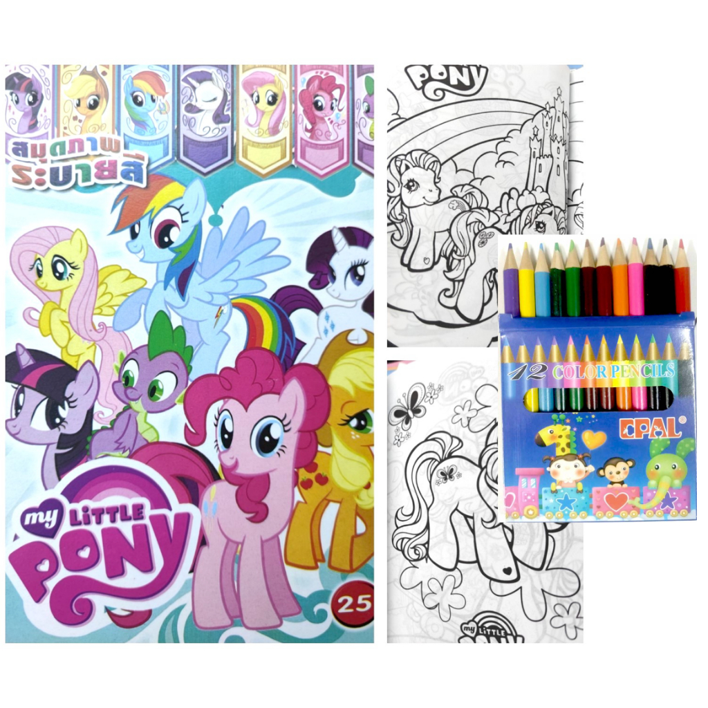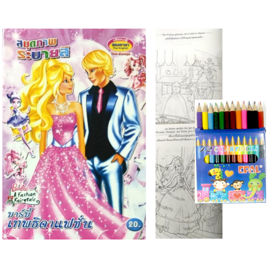 สมุดระบายสีการ์ตูน พร้อมสีไม้สั้น 12 สี มี 70 แบบ 📌20 แถม 1