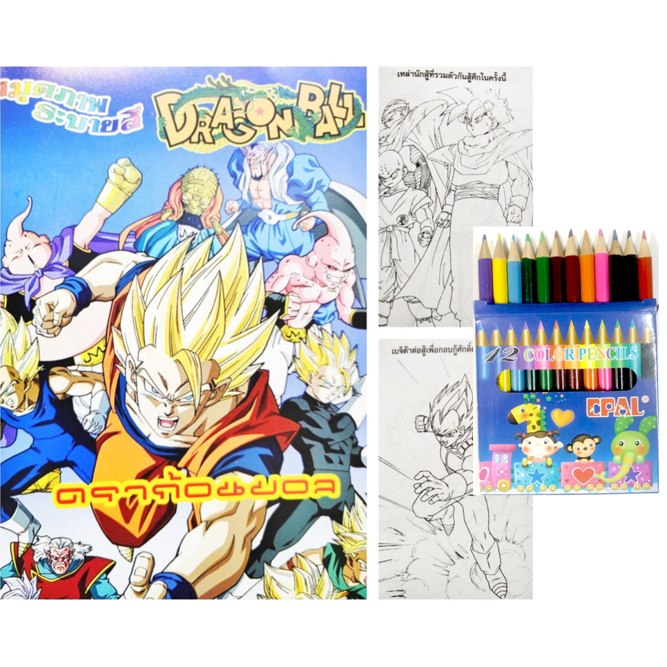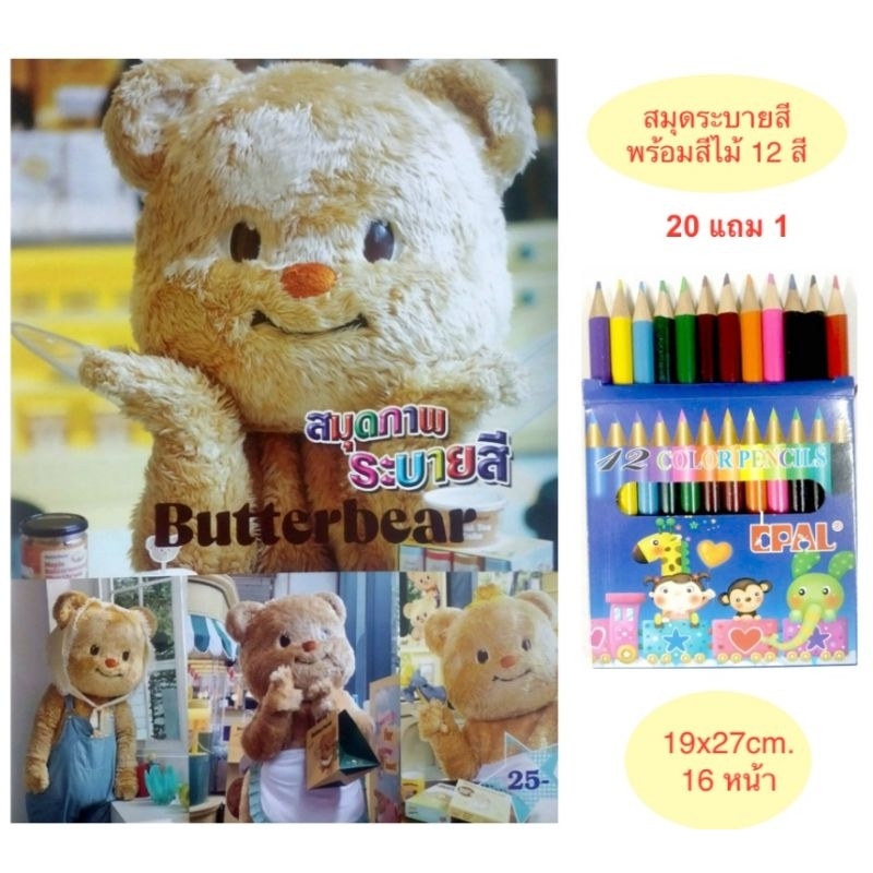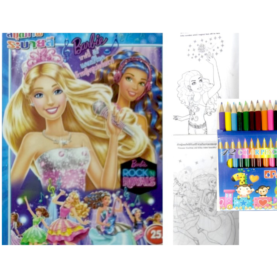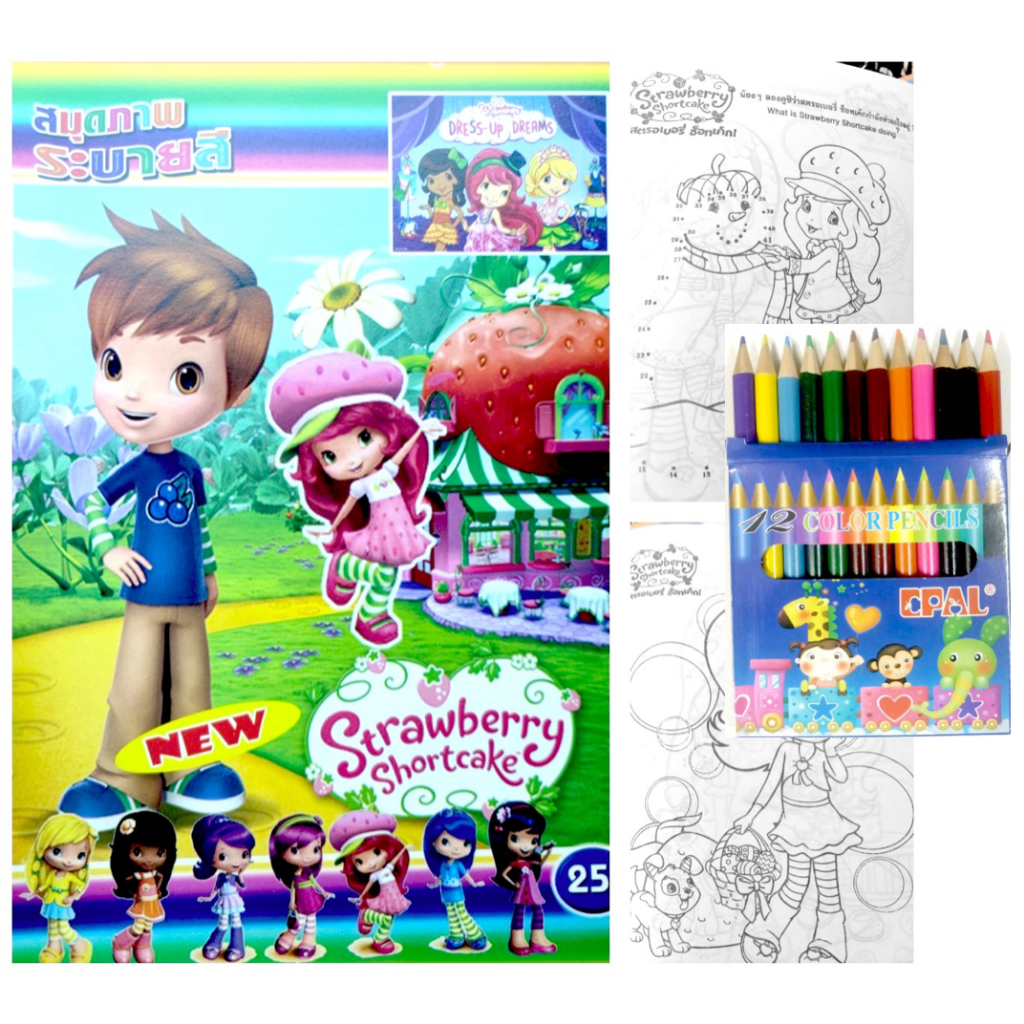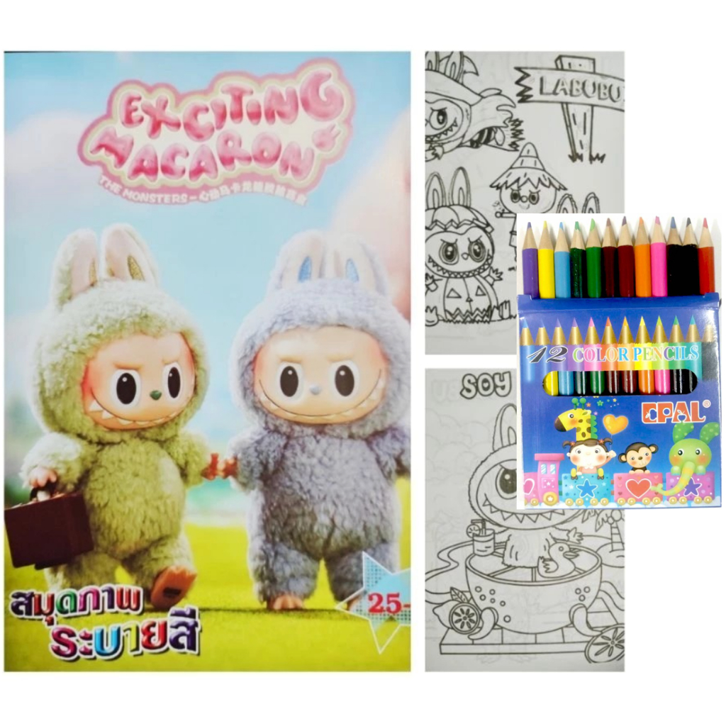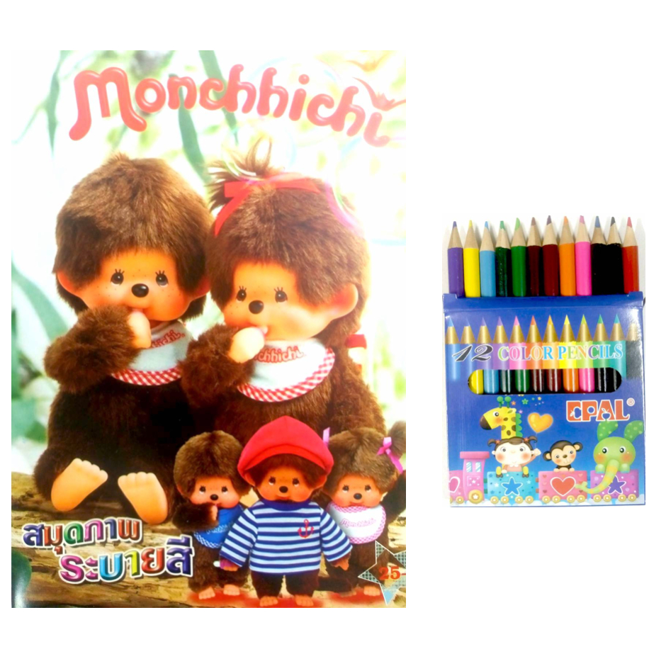 สมุดระบายสีการ์ตูน พร้อมสีไม้สั้น 12 สี มี 70 แบบ 📌20 แถม 1