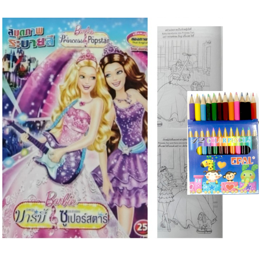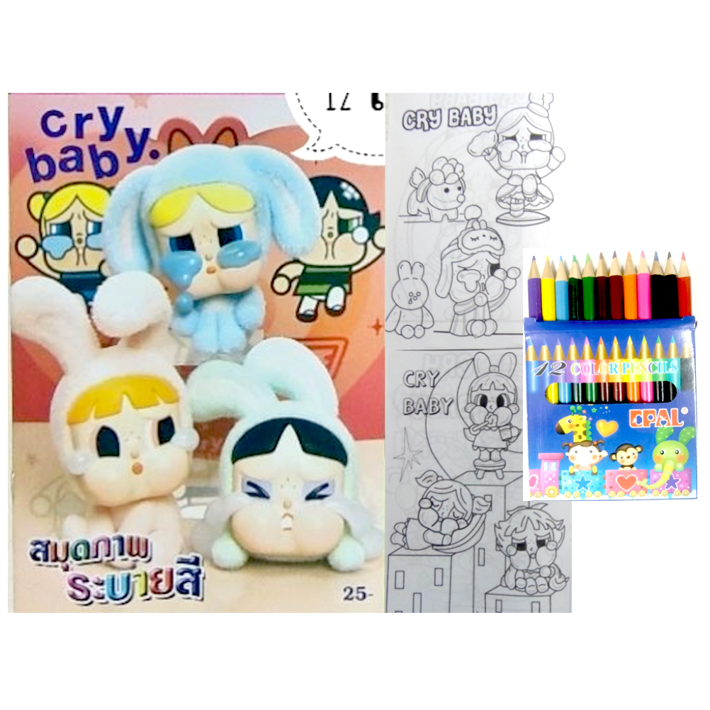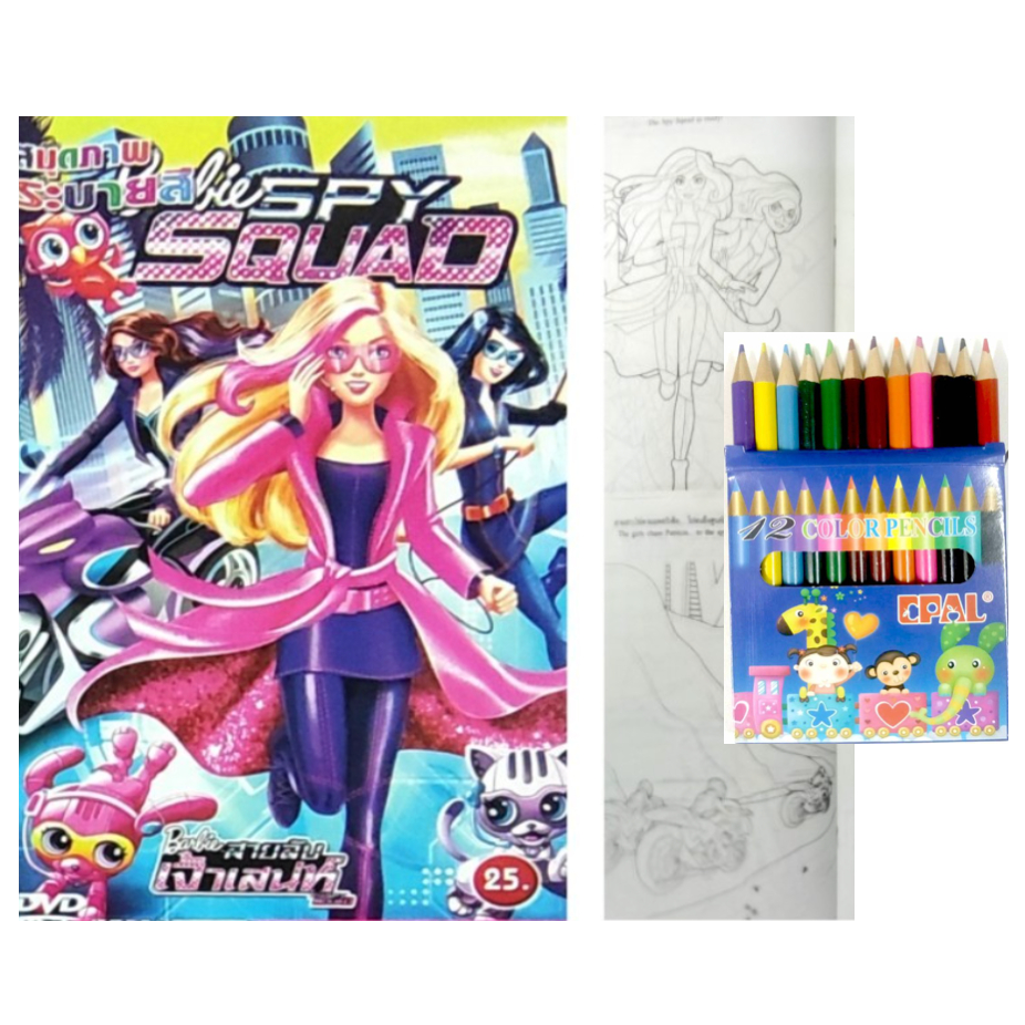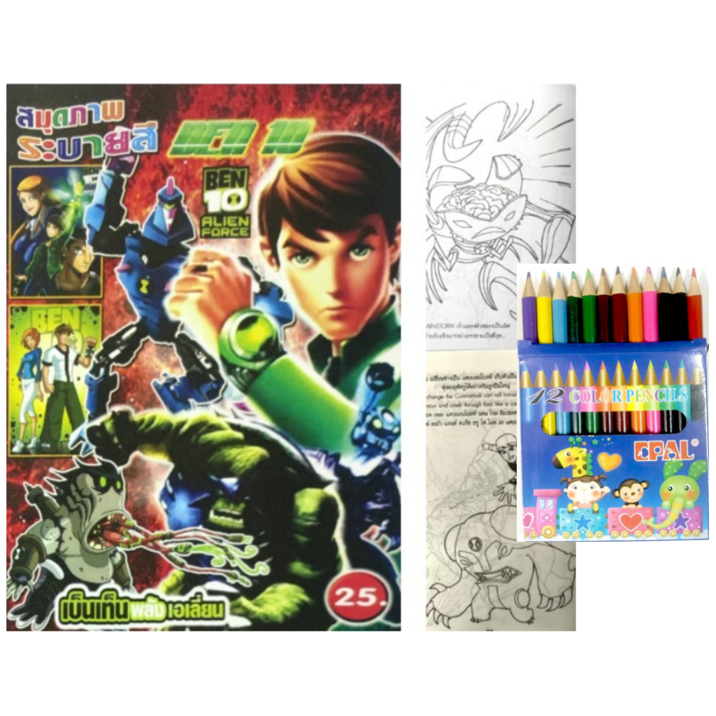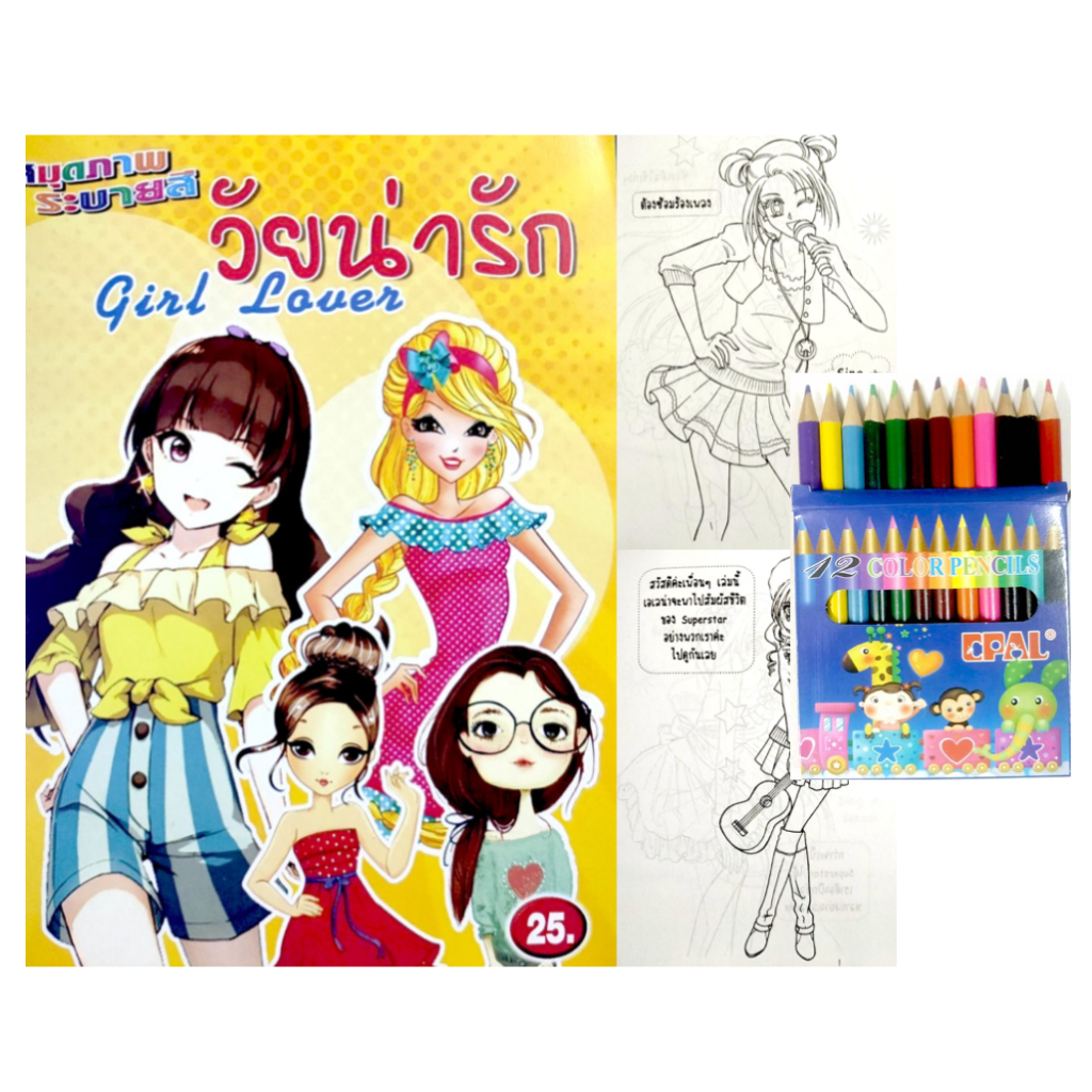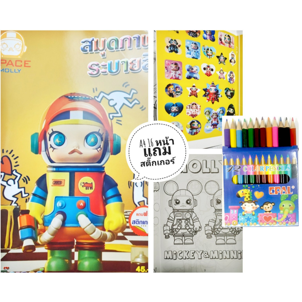 สมุดระบายสีการ์ตูน พร้อมสีไม้สั้น 12 สี มี 70 แบบ 📌20 แถม 1