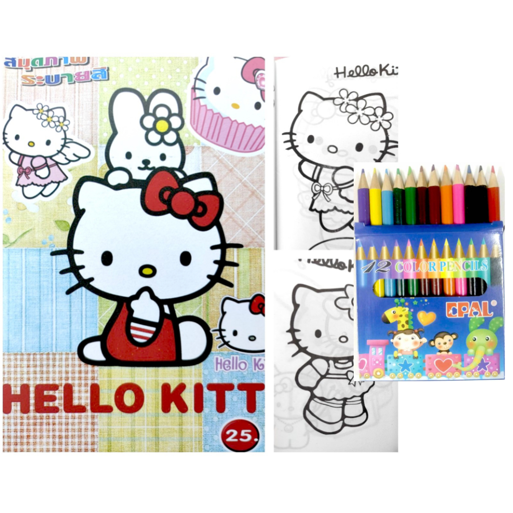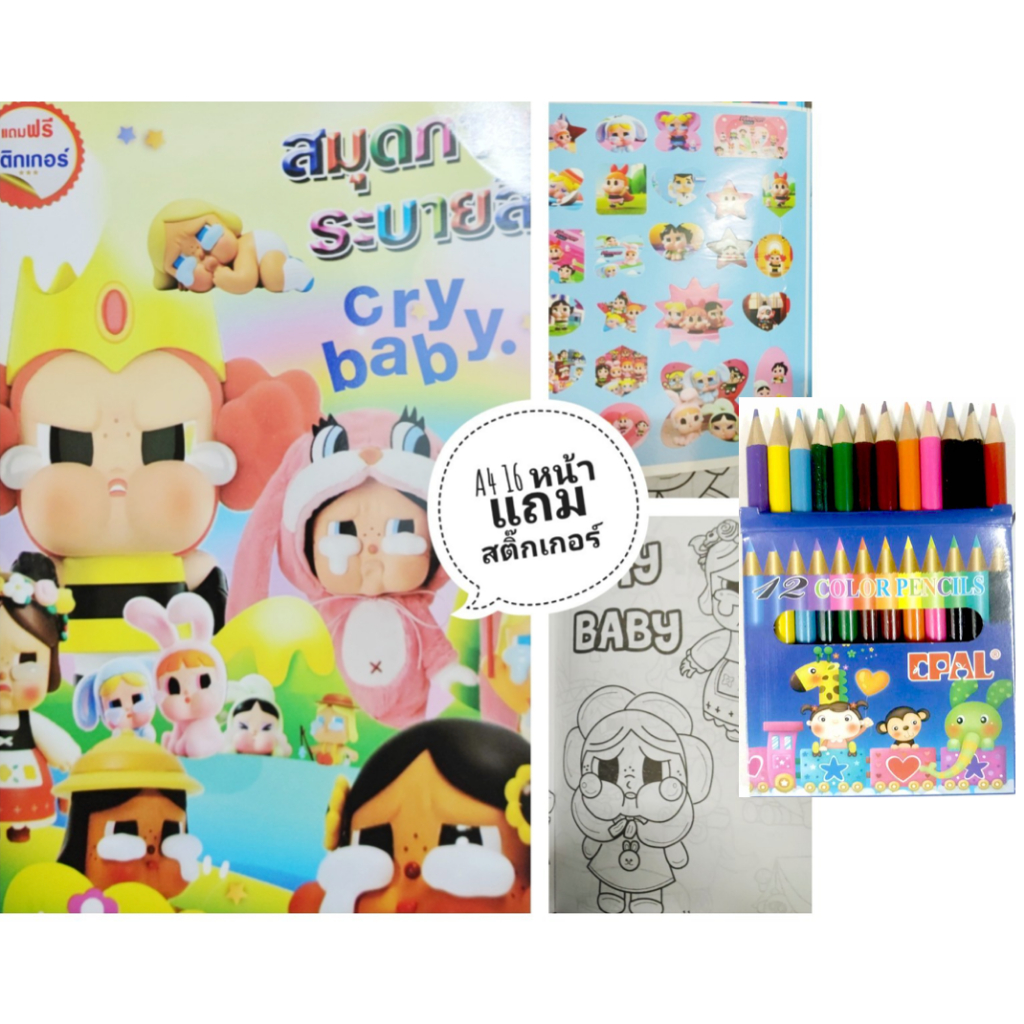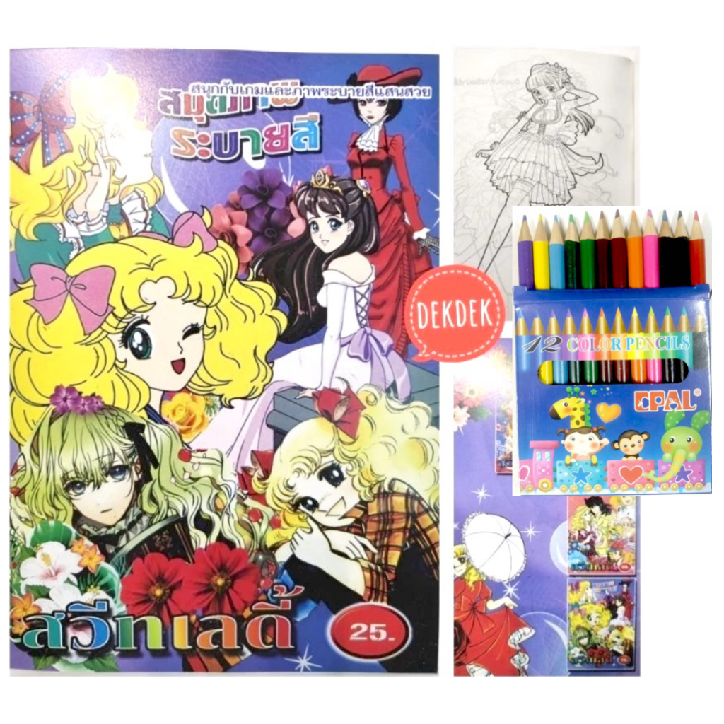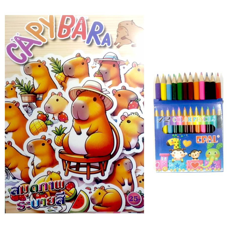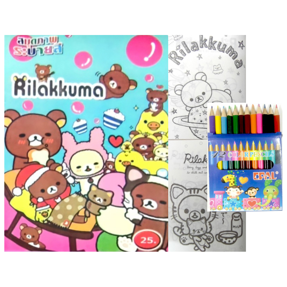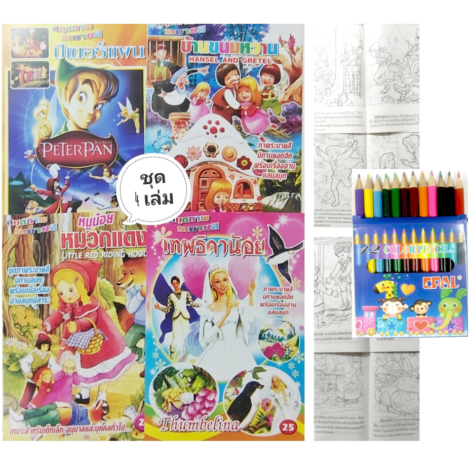 สมุดระบายสีการ์ตูน พร้อมสีไม้สั้น 12 สี มี 70 แบบ 📌20 แถม 1