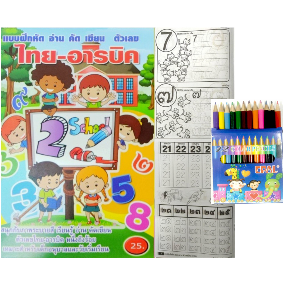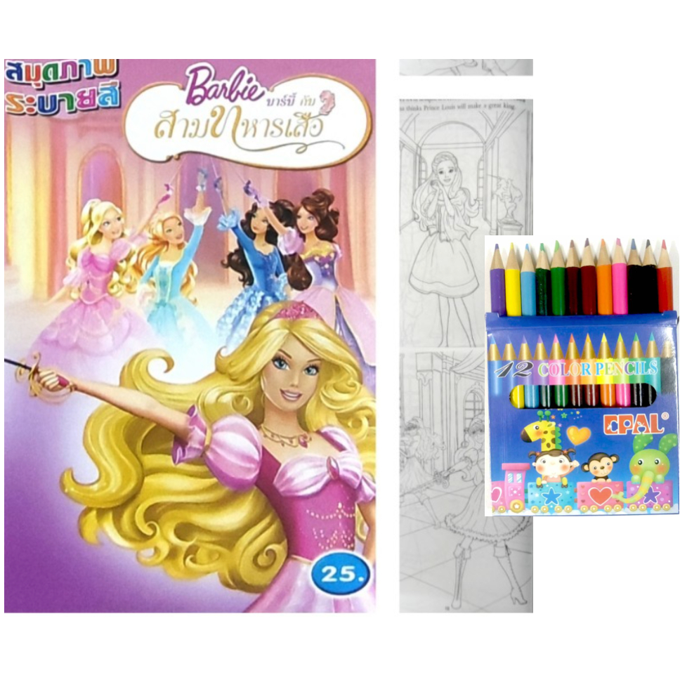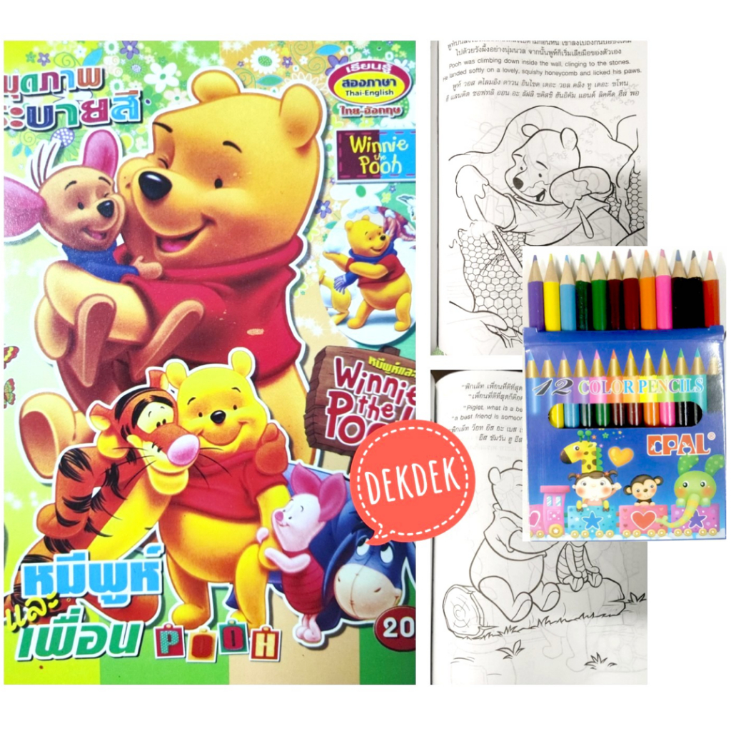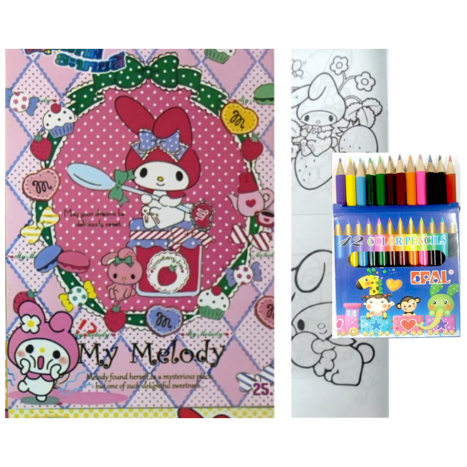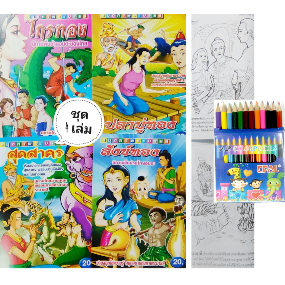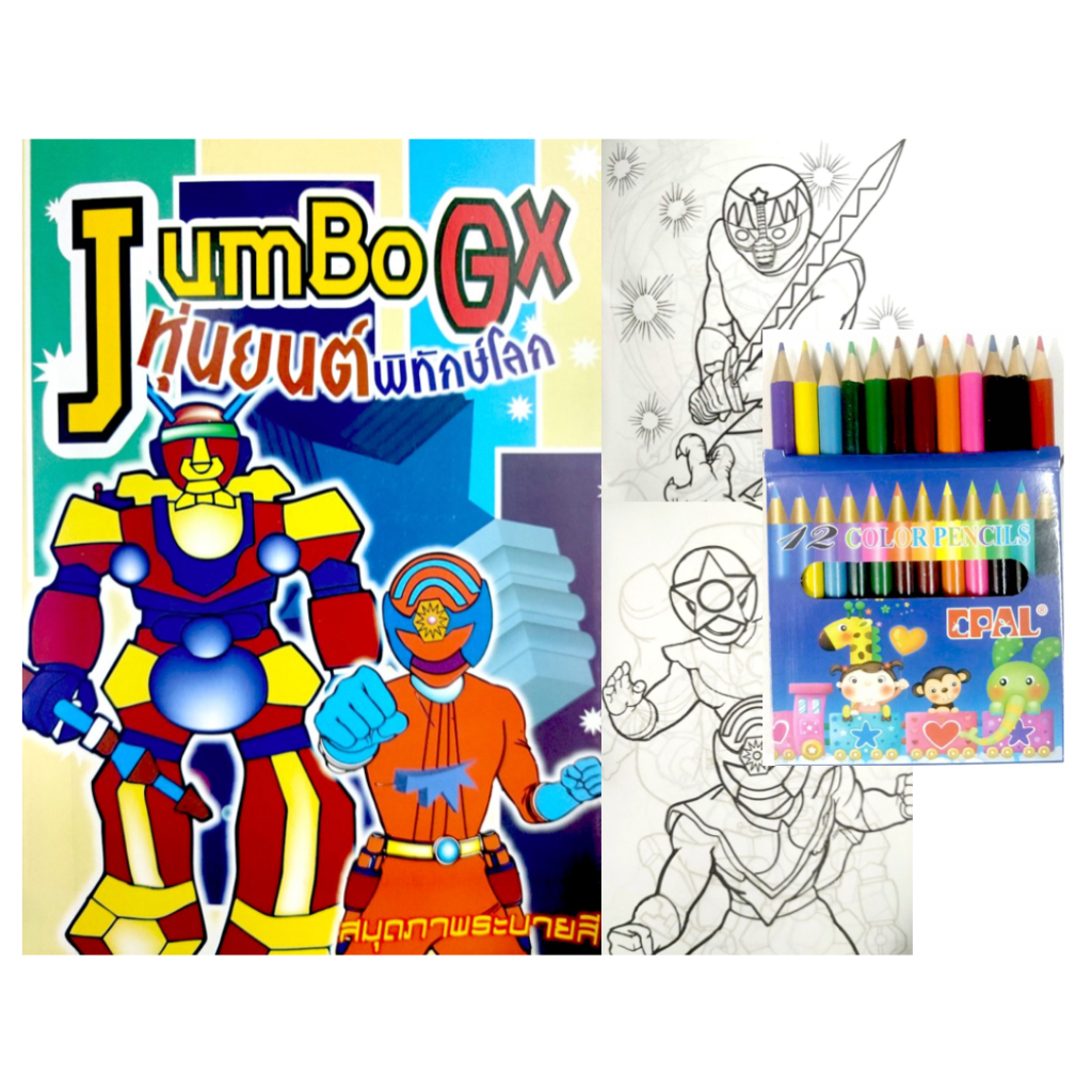 สมุดระบายสีการ์ตูน พร้อมสีไม้สั้น 12 สี มี 70 แบบ 📌20 แถม 1