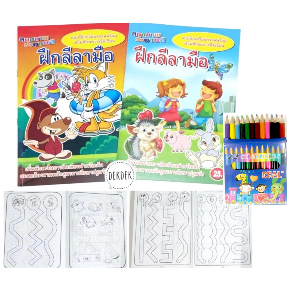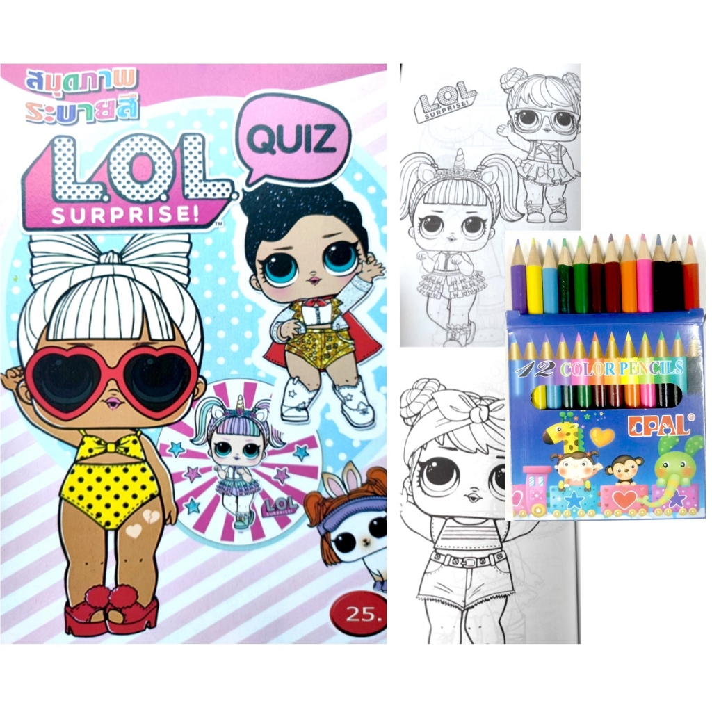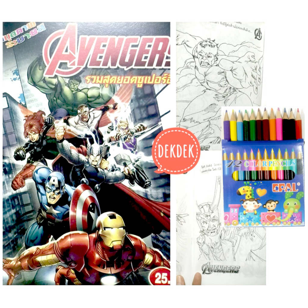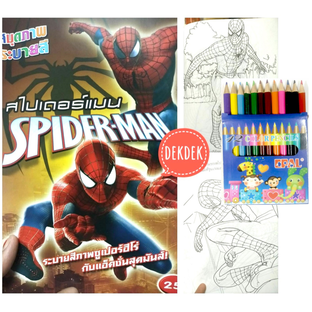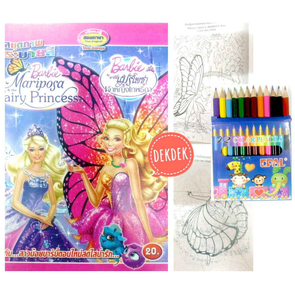 สมุดระบายสีการ์ตูน พร้อมสีไม้สั้น 12 สี มี 70 แบบ 📌20 แถม 1