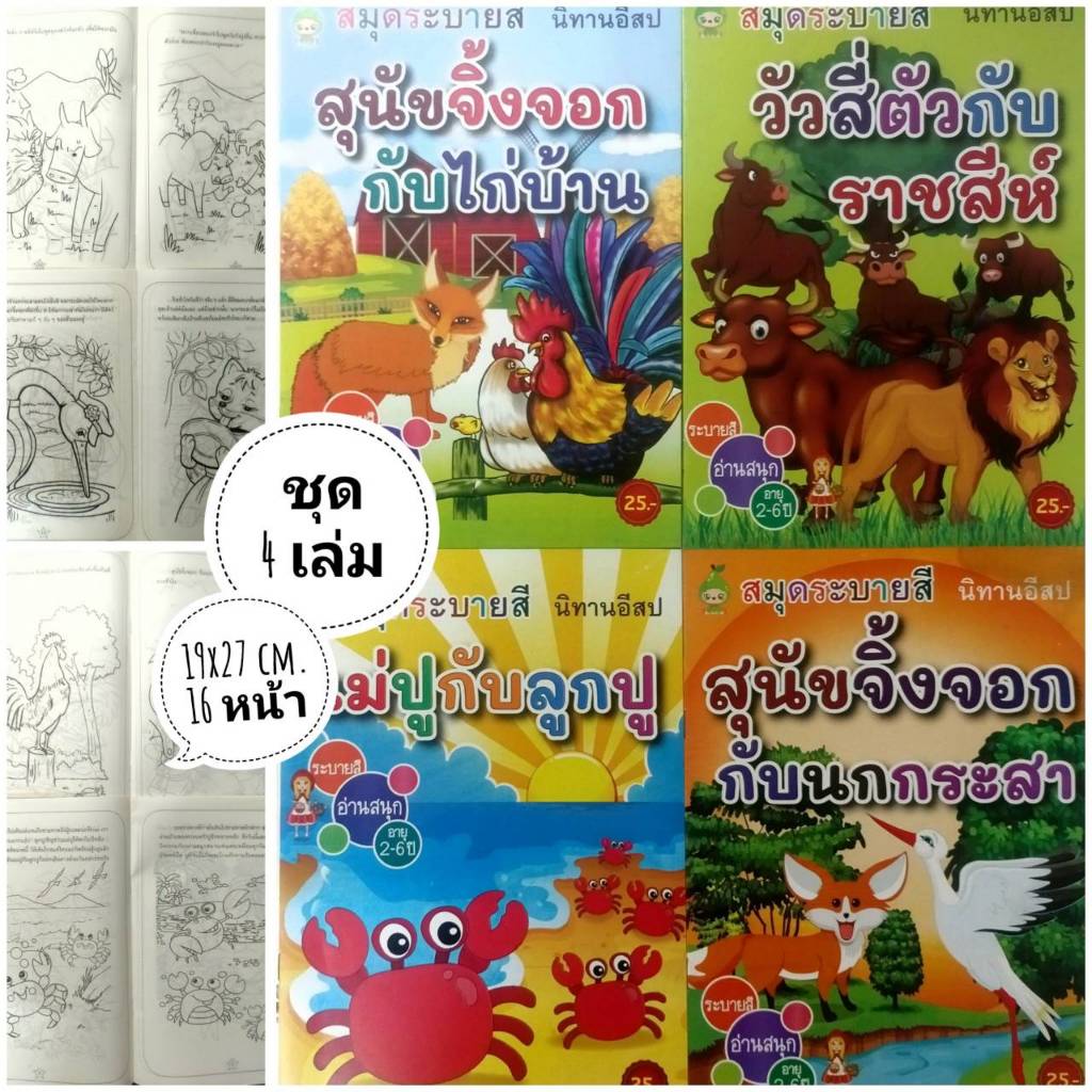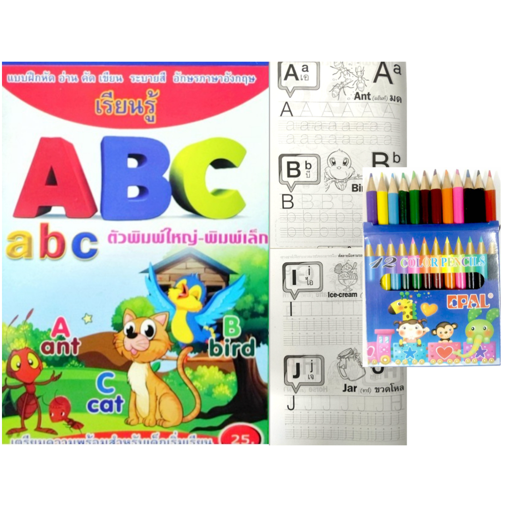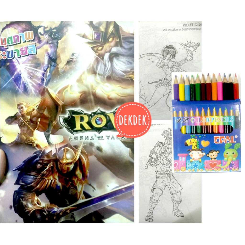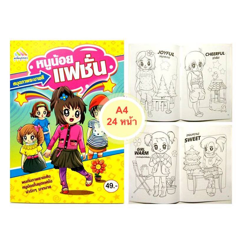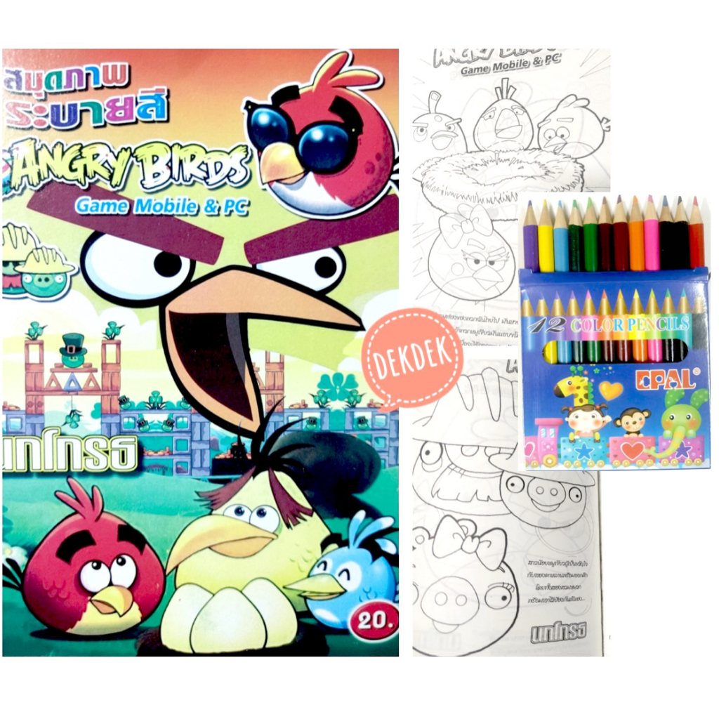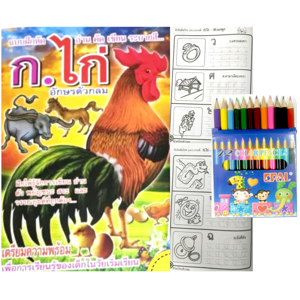 สมุดระบายสีการ์ตูน พร้อมสีไม้สั้น 12 สี มี 70 แบบ 📌20 แถม 1