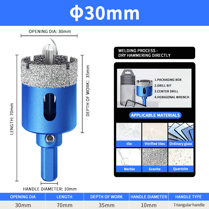 16-50MM ติดเหล็กคาร์ไบร์ท สีฟ้า โฮลซอหัวเพชร ดอกโฮลซอหัวเพชร เจาะเปิดรู ดอกสว่านเจาะรู เจาะกระเบื้อง เจาะกระจก เจาะหินอ่อน หินแกรนิต ดอกเจาะกระจก