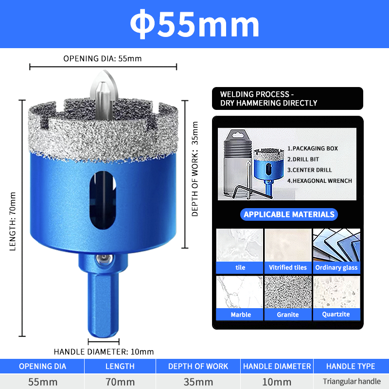 55-120 มม.เพชรเคลือบเจาะ Bits ชุดเซรามิคแก้ว Hole Saw พร้อมตําแหน่งเจาะสําหรับแก้วหินอ่อนหินแกรนิตหิน Porcelain