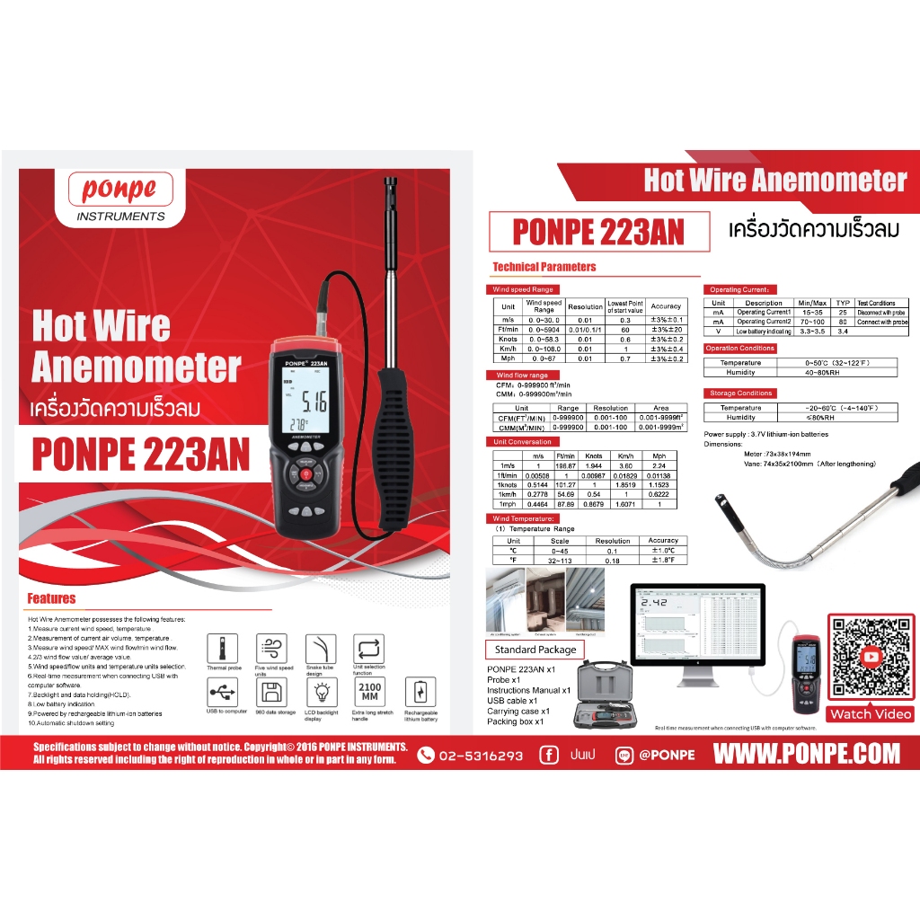 PONPE 223AN เครื่องวัดความเร็วลมแบบ Hot Wire Anemometer