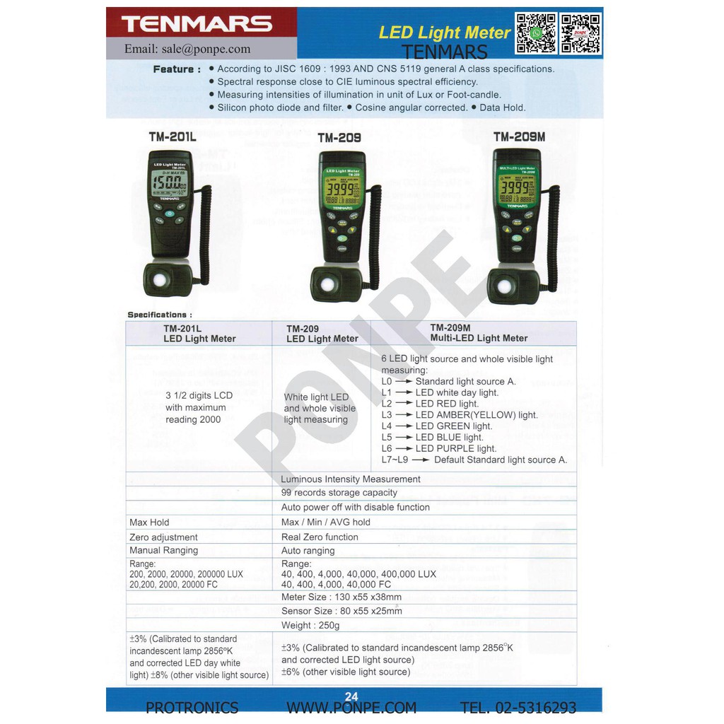 TM-201L TENMARS เครื่องวัดแสง LED LIGHT (LUX/FC) METER[ของแท้ จำหน่ายโดยตัวแทนแต่งตั้ง]