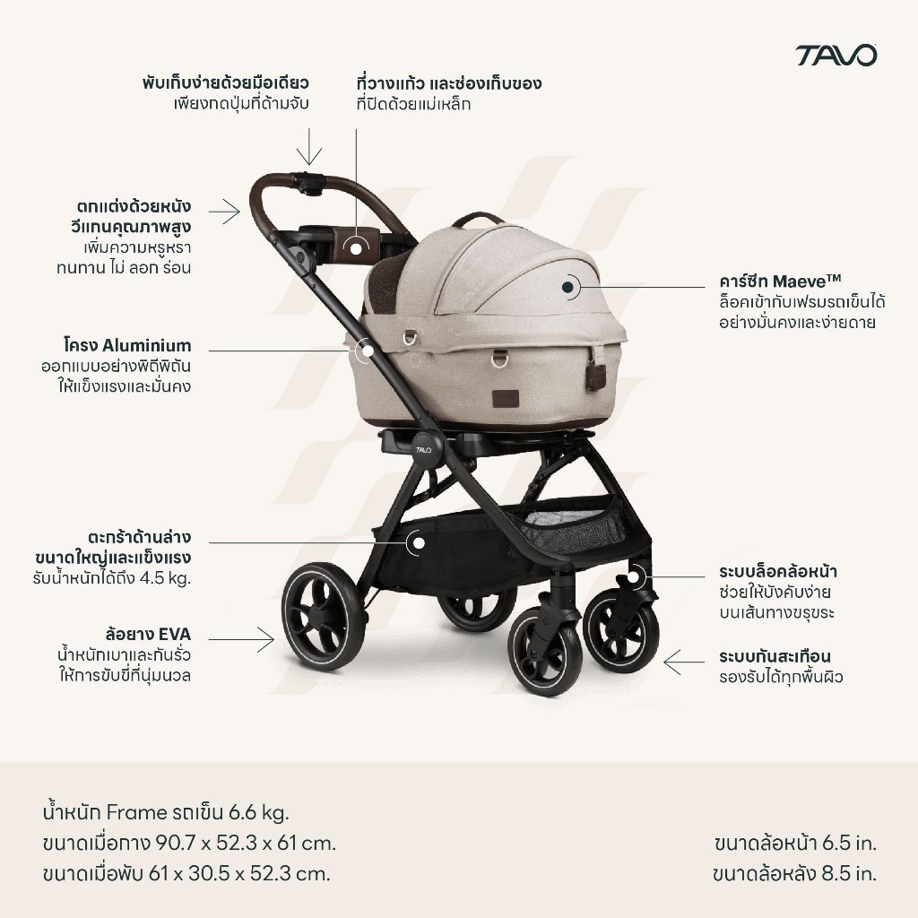 TAVO ตระกร้าคาร์ซีท+รถเข็นน้องหมา รถเข็นสุนัขสัตว์เลี้ยงแสนรัก นำเข้าจากประเทศเนเธอร์แลนด์ แบร์นดเดียวกับ NUNAมาแล้วจ้า