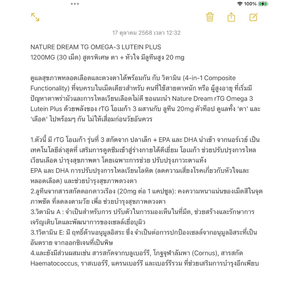 (🌼แท้ / พร้อมส่ง🌼) NATURE DREAM TG OMEGA-3 LUTEIN PLUS