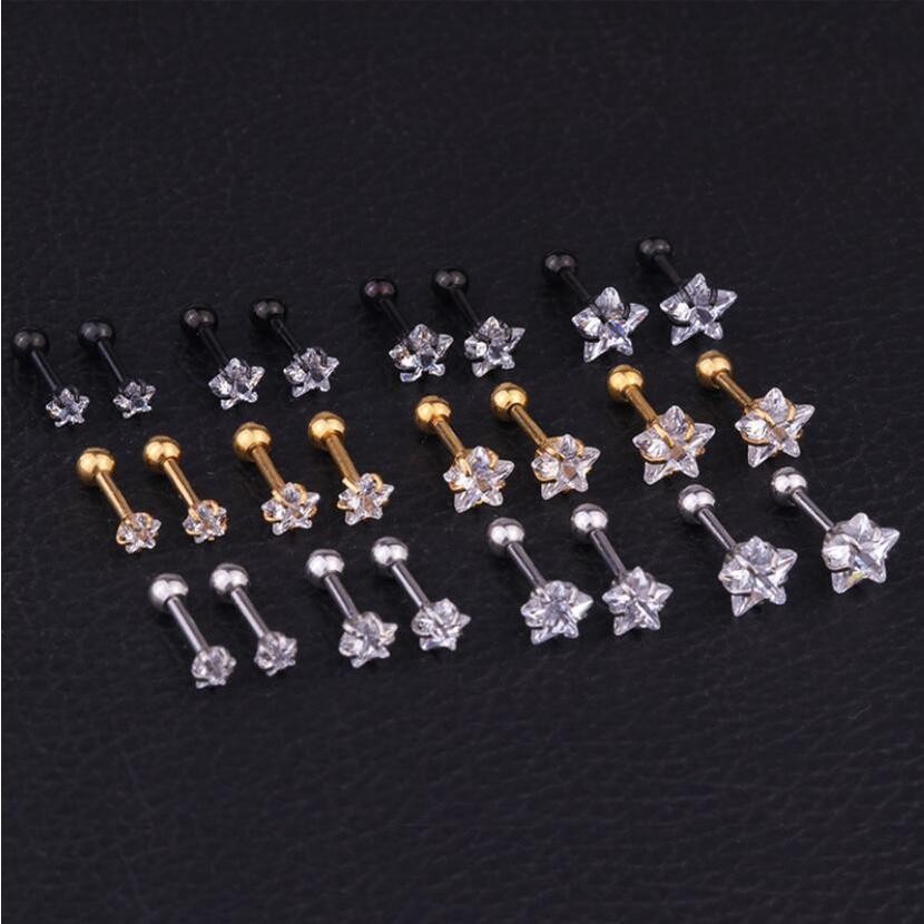 ต่างหูแฟชั่นไทเทเนียมเพทายต่างหูรูปดาวห้าแฉก