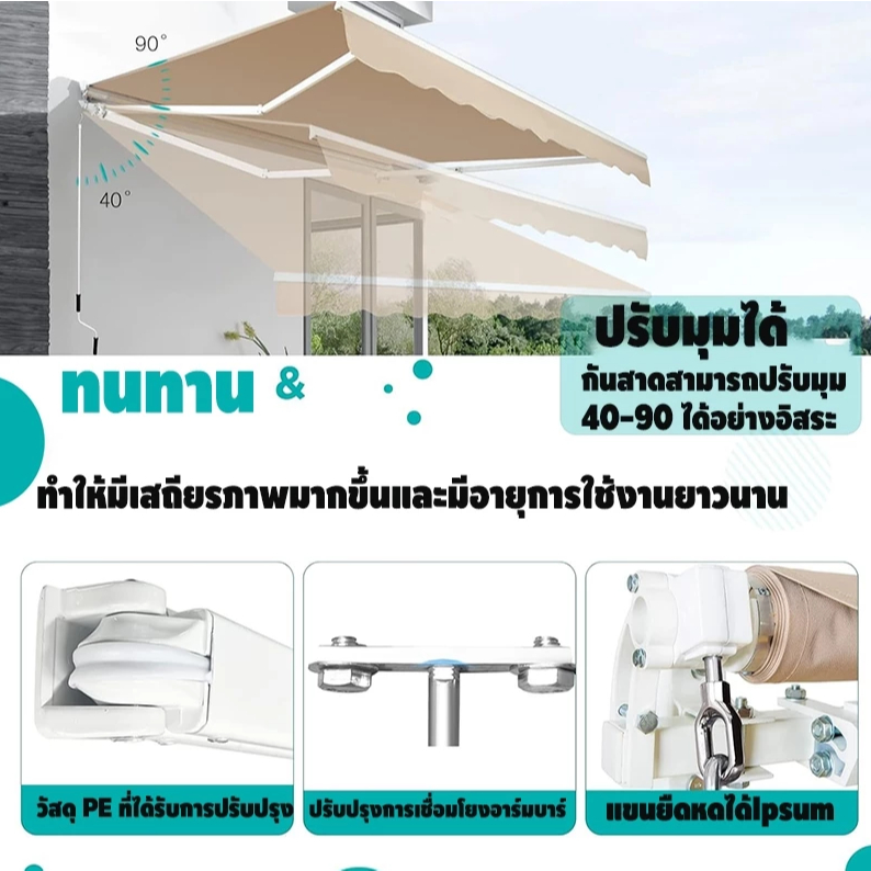 พร้อมส่งกันสาดปรับนได้ ด้นสาดพับเก็บได้ กันสาดพับเก็บได้ราคาถูก กันน้ำ กัน UV ต้านทานลมระดับ 10 (สีไม่จางหาย)