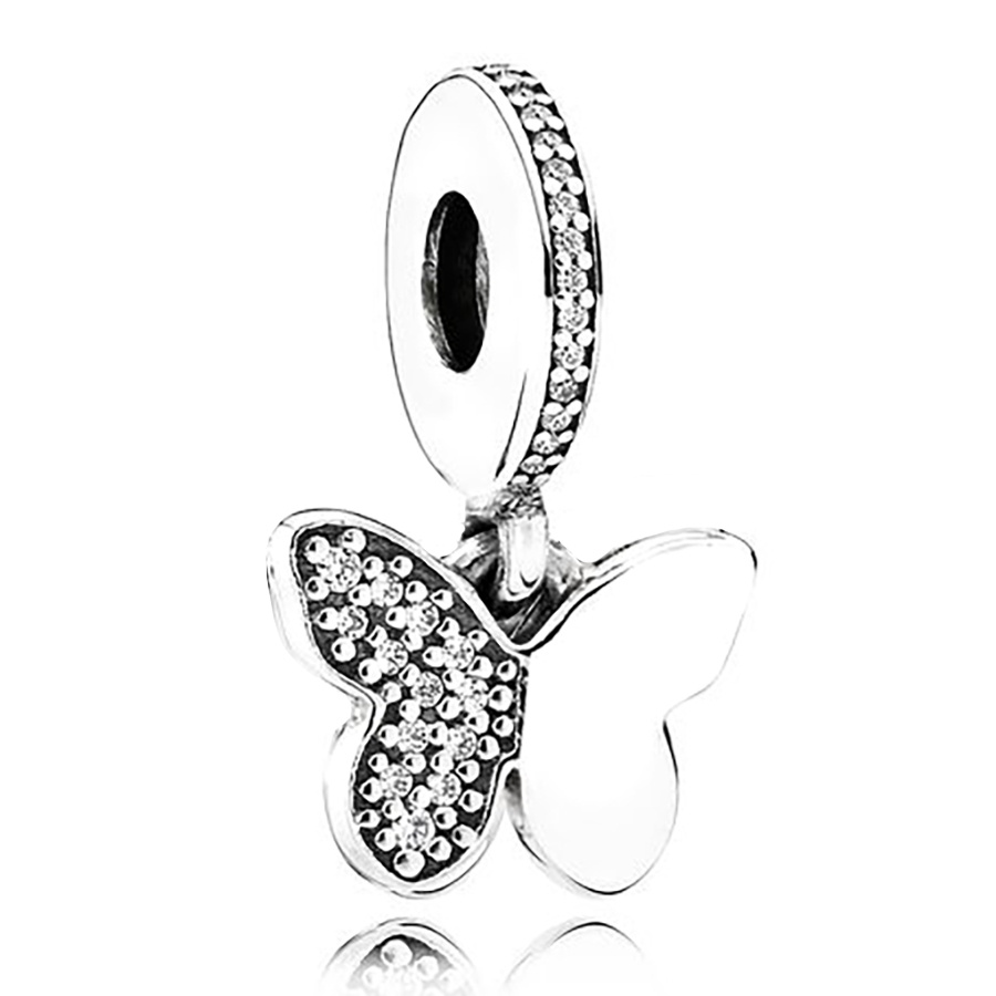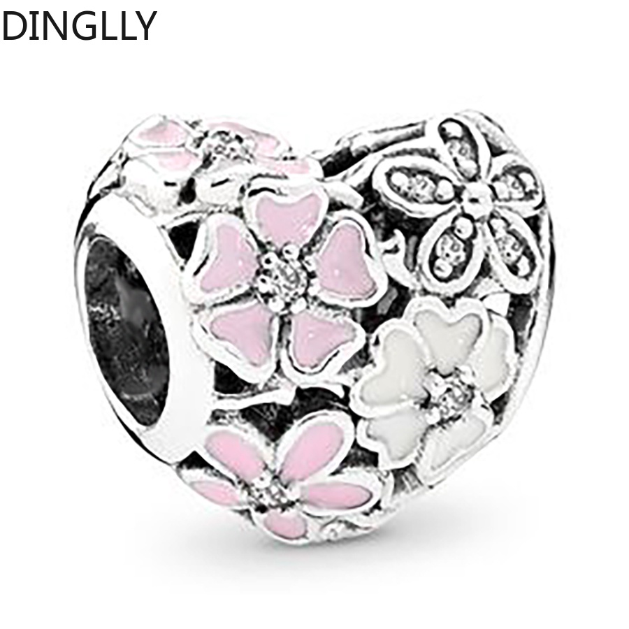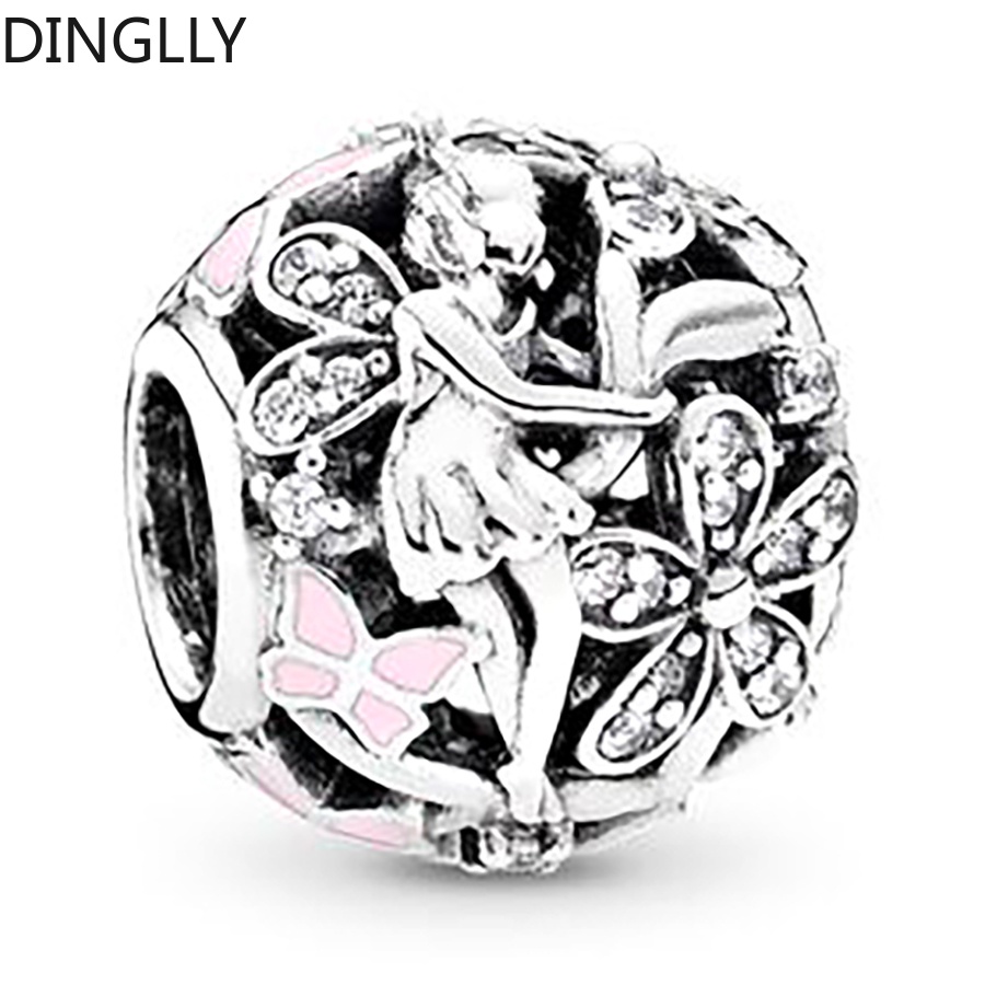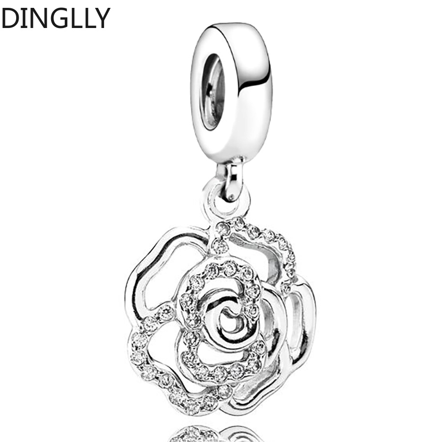 Dinglly ใหม่ ลูกปัดดอกไม้ ดอกกุหลาบ และผีเสื้อ สีเงิน สําหรับทําเครื่องประดับ สร้อยข้อมือ DIY