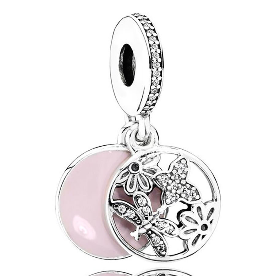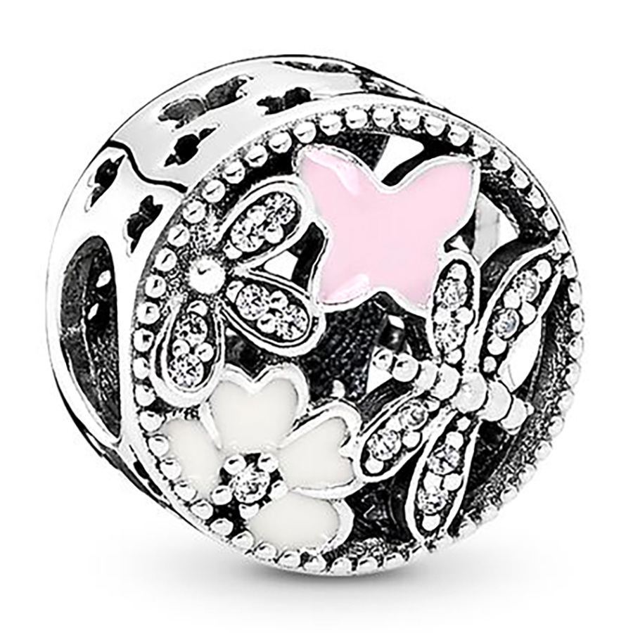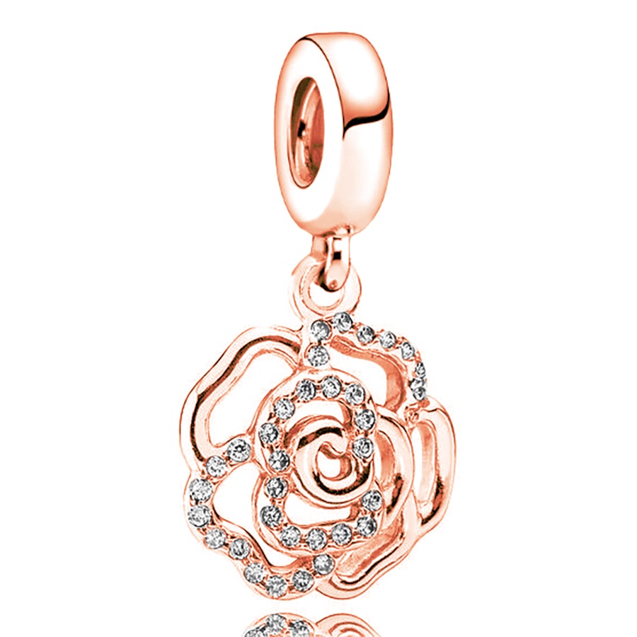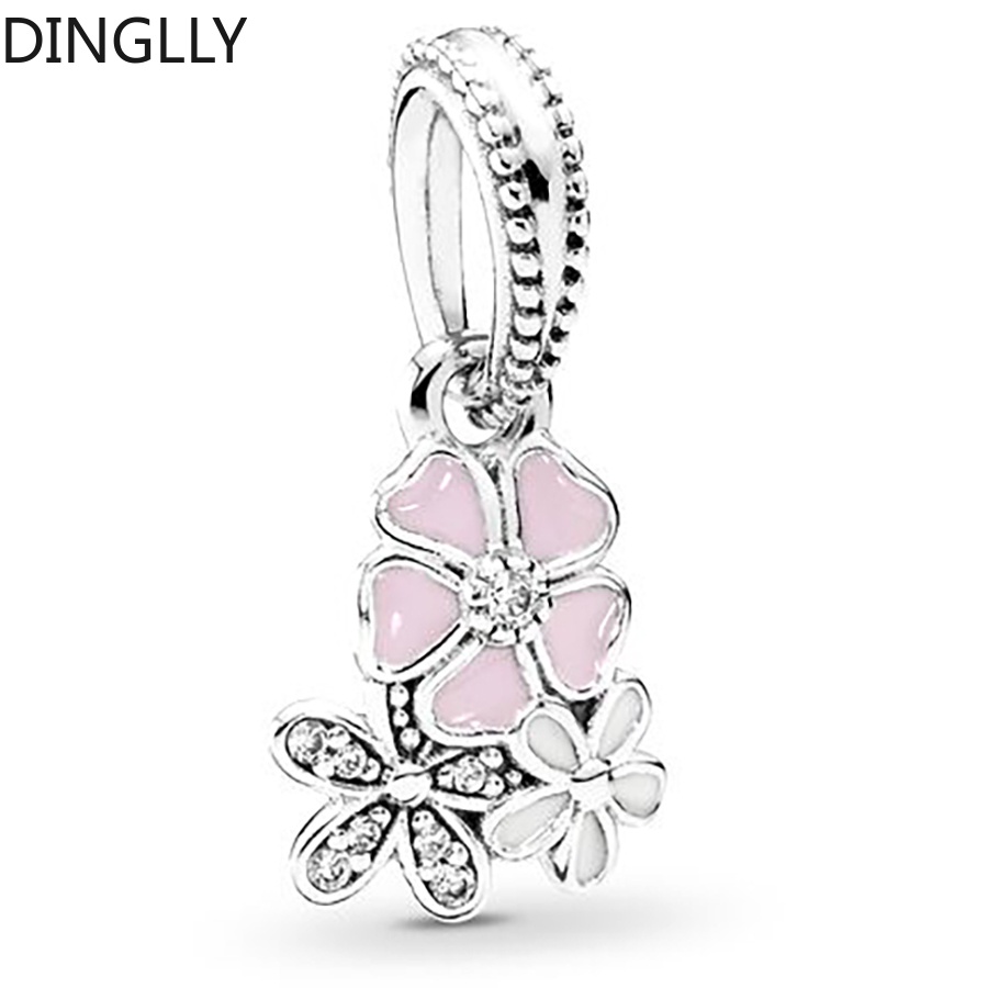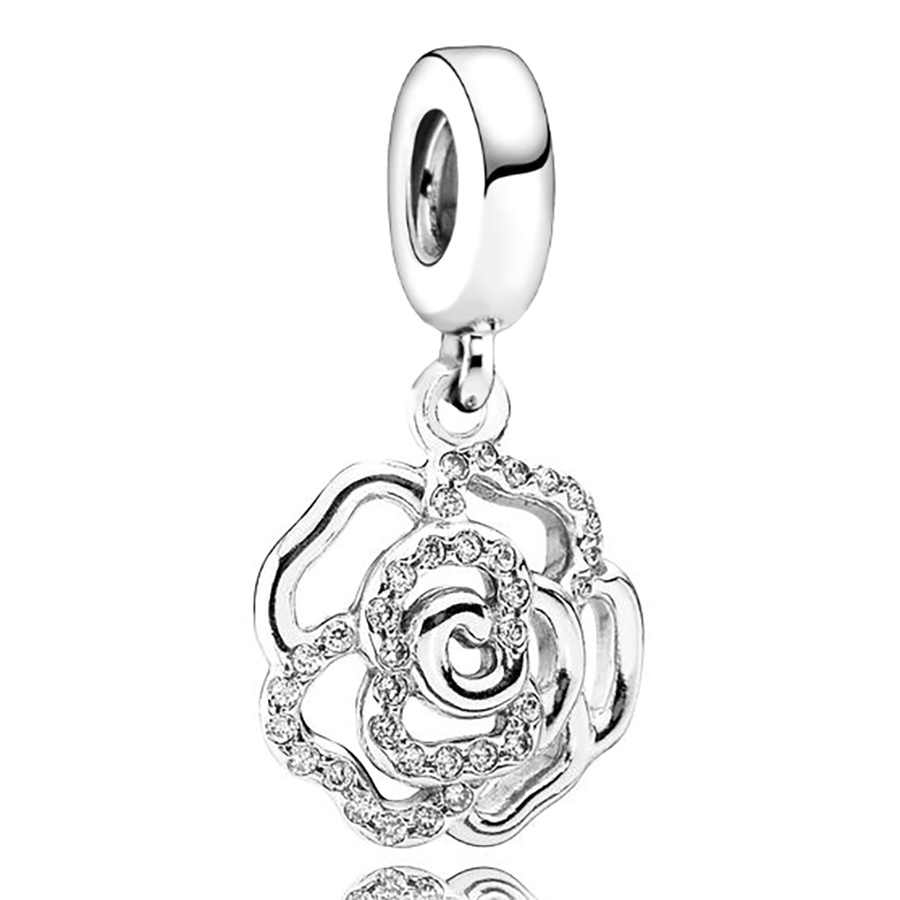 Dinglly ใหม่ ลูกปัดดอกไม้ ดอกกุหลาบ และผีเสื้อ สีเงิน สําหรับทําเครื่องประดับ สร้อยข้อมือ DIY