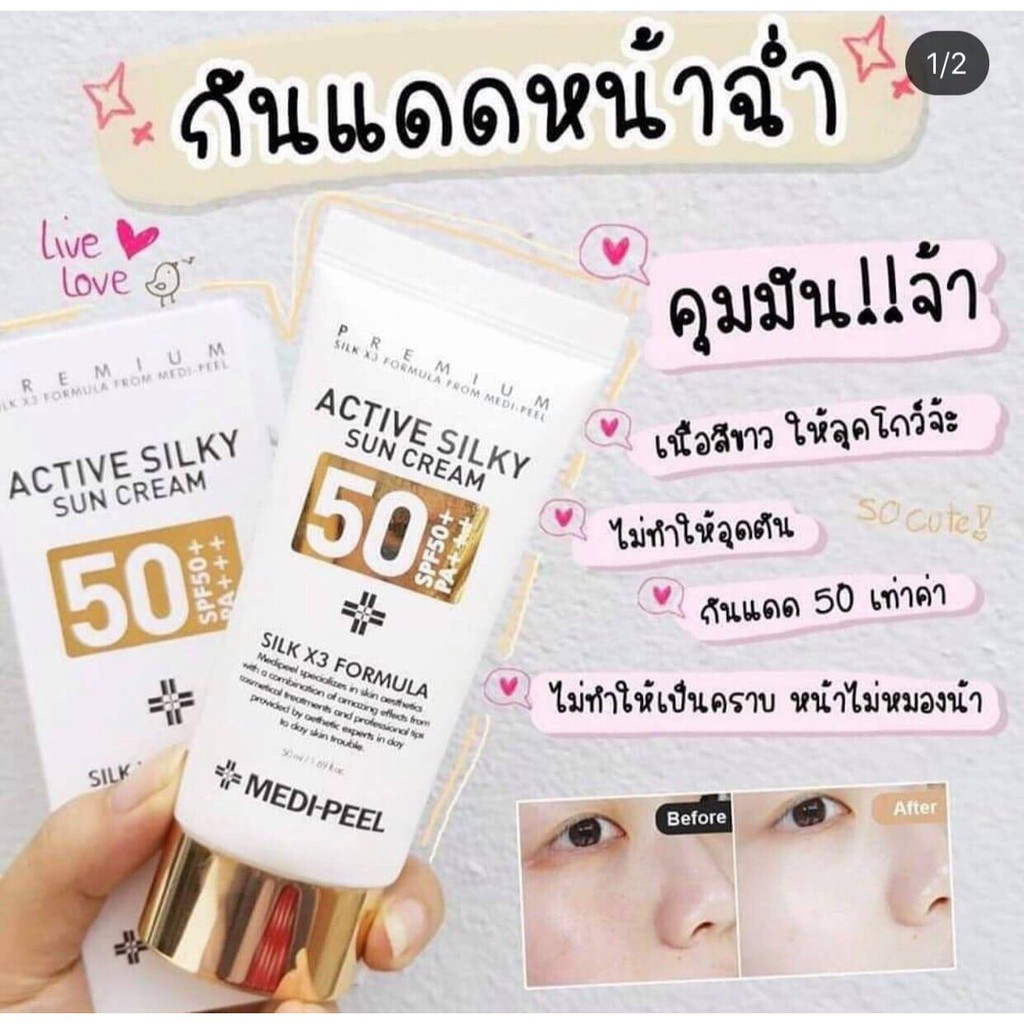 Medi Peel Active Silky Sun Cream SPF 50+ PA+++ 50 ml. ☀️ครีมกันแดด