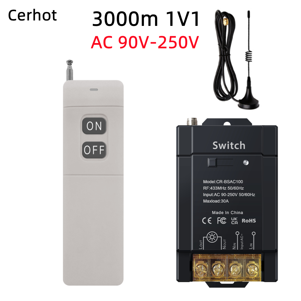 Cerhot รีโมตคอนโทรลไร้สาย 30A AC 100V-250V RF สําหรับสวิตช์ไฟเพดาน 110V 120V 220V 230V