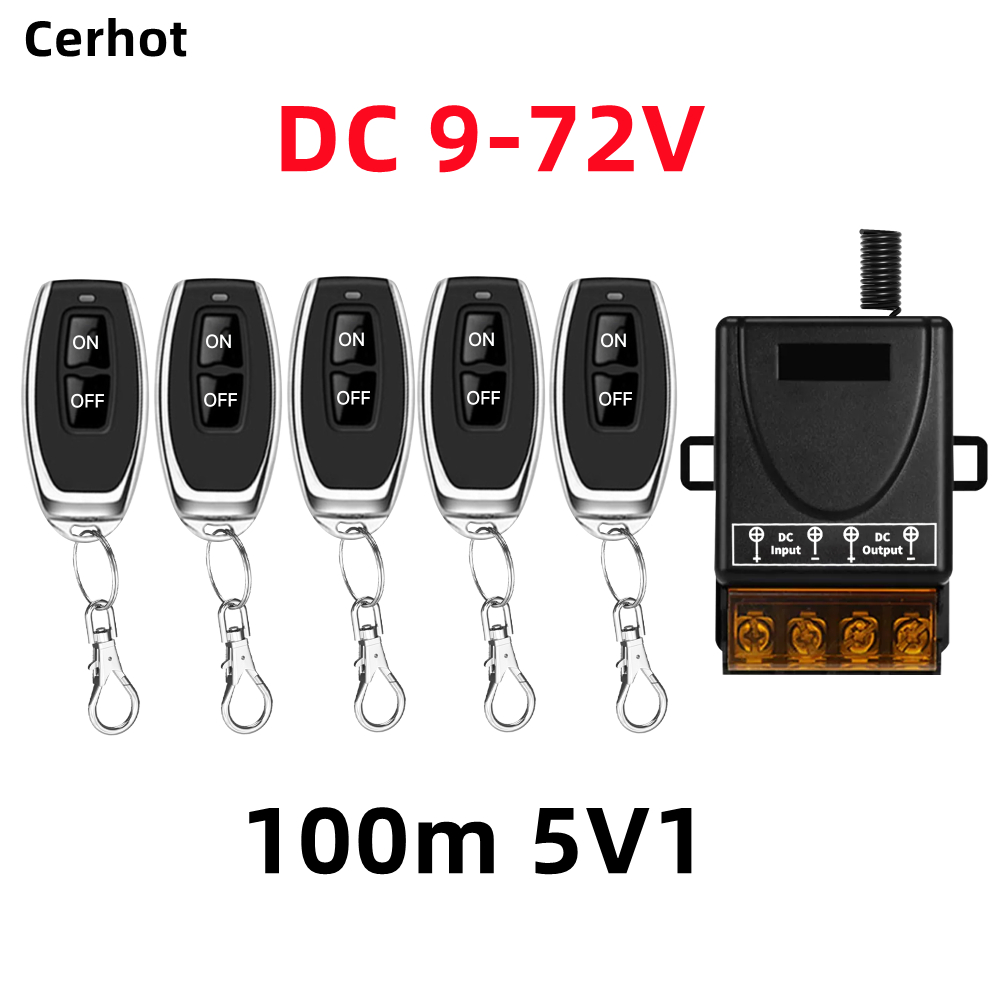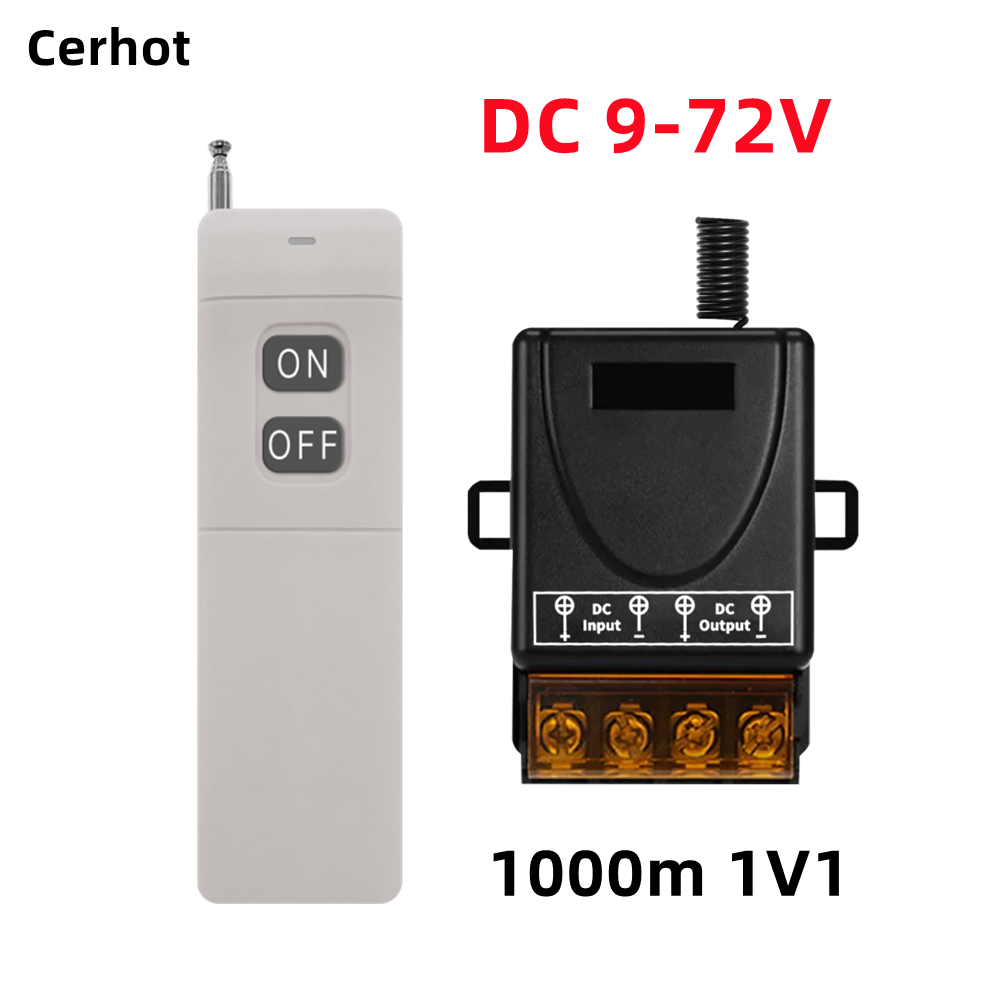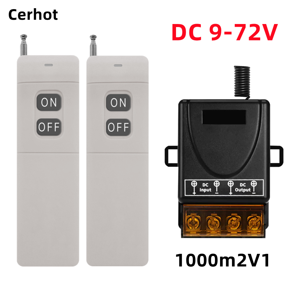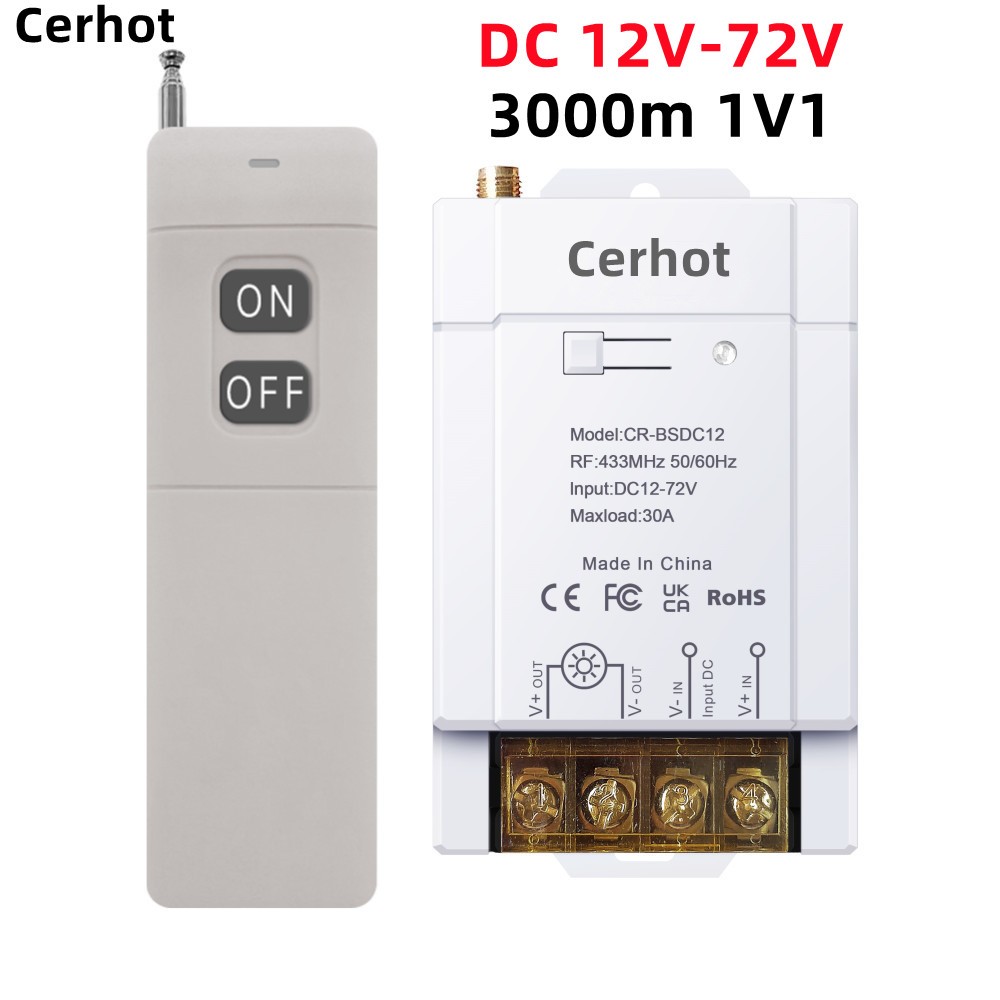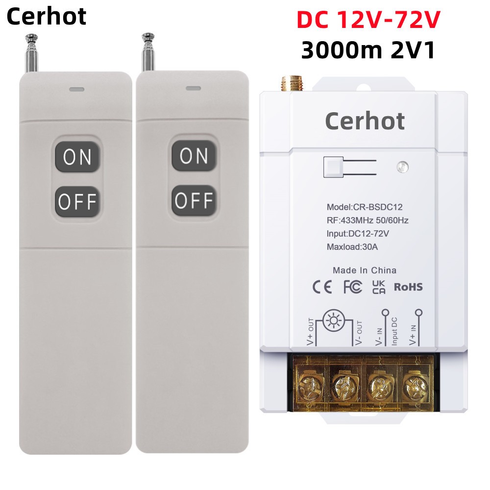 Cerhot สวิตช์ระยะไกลไร้สาย, DC 12V 24V 48V 72V,30A 5000W รีเลย์สวิตช์ RF ไร้สายสําหรับเครื่องใช้ในครัวเรือน, ปั๊ม, ไฟเพดานและอุปกรณ์ไฟฟ้าพร้อมระยะไกล 3000M