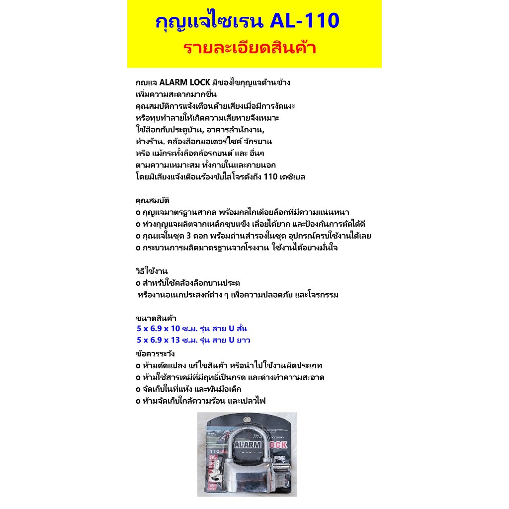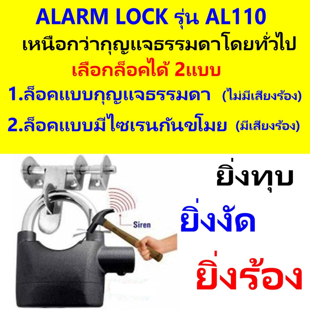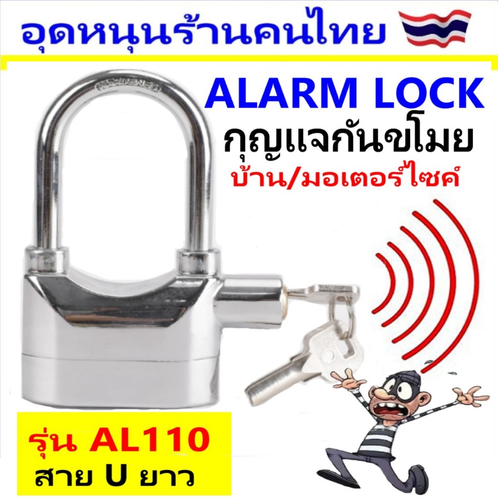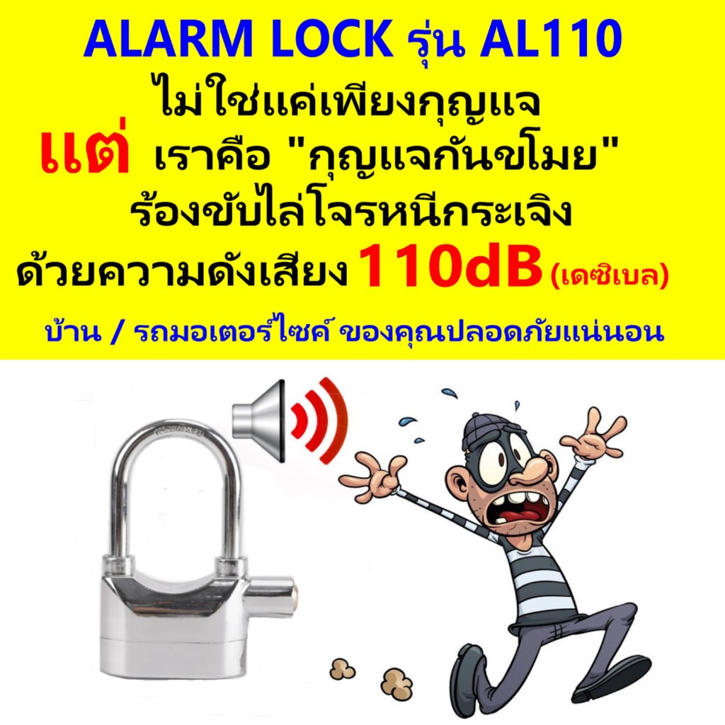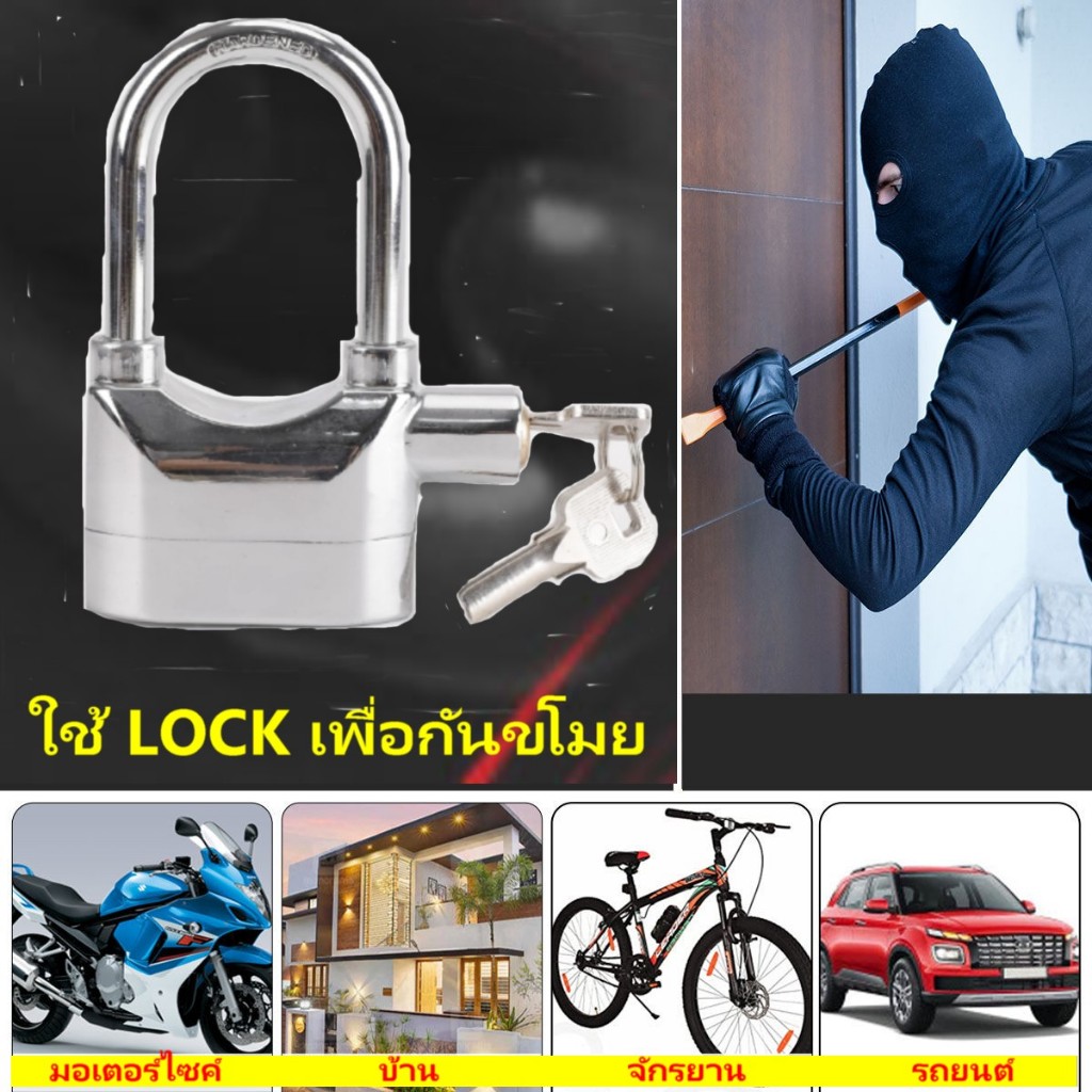 กุญแจกันขโมย ยิ่งงัด ยิ่งร้อง ความดังเสียง 110dB.ใช้ล็อค บ้าน / มอเตอร์ไซค์ / จักรยาน /ประตูรั้ว