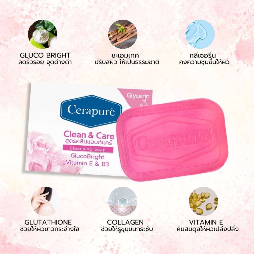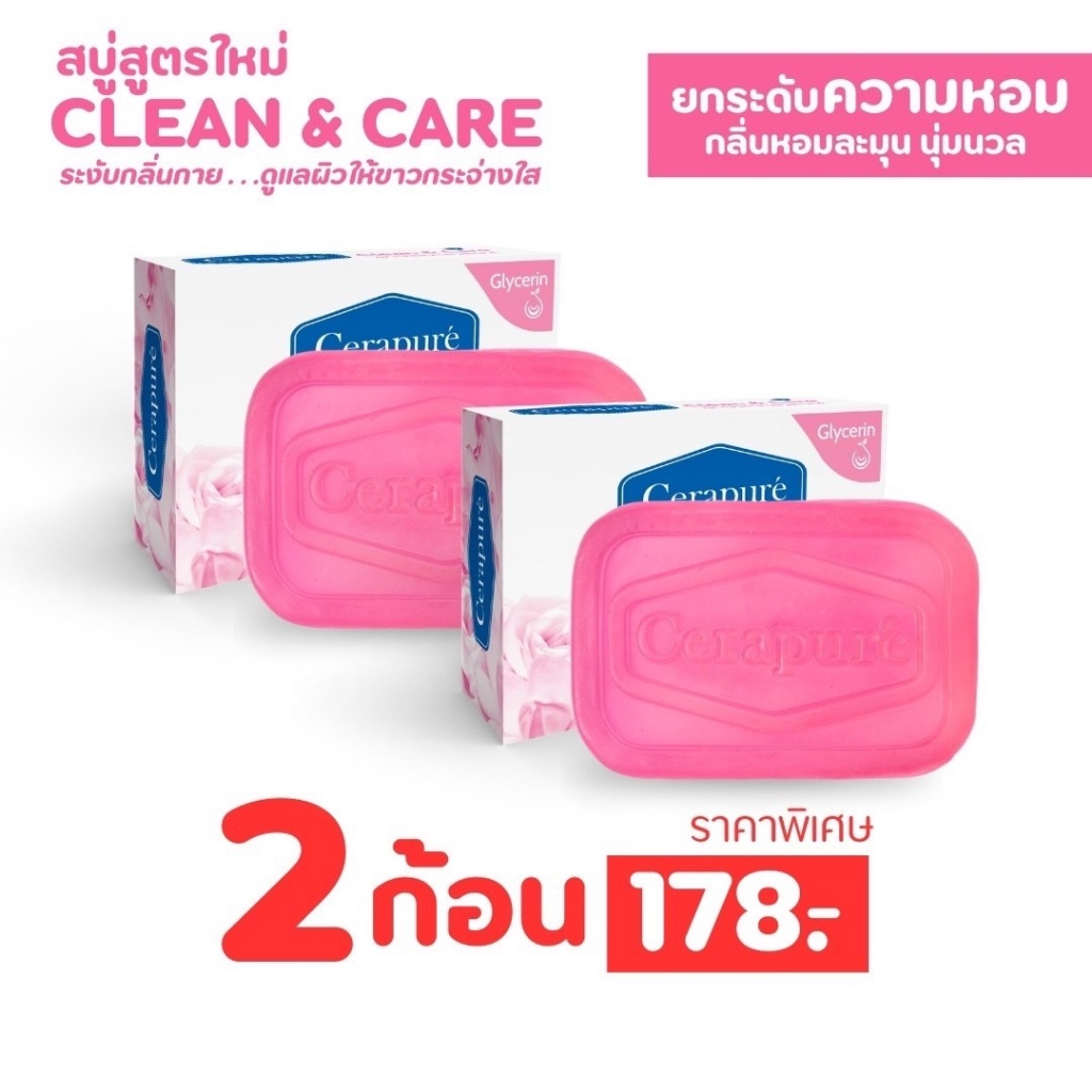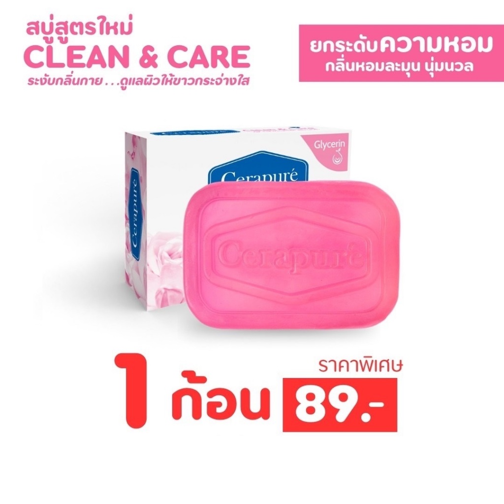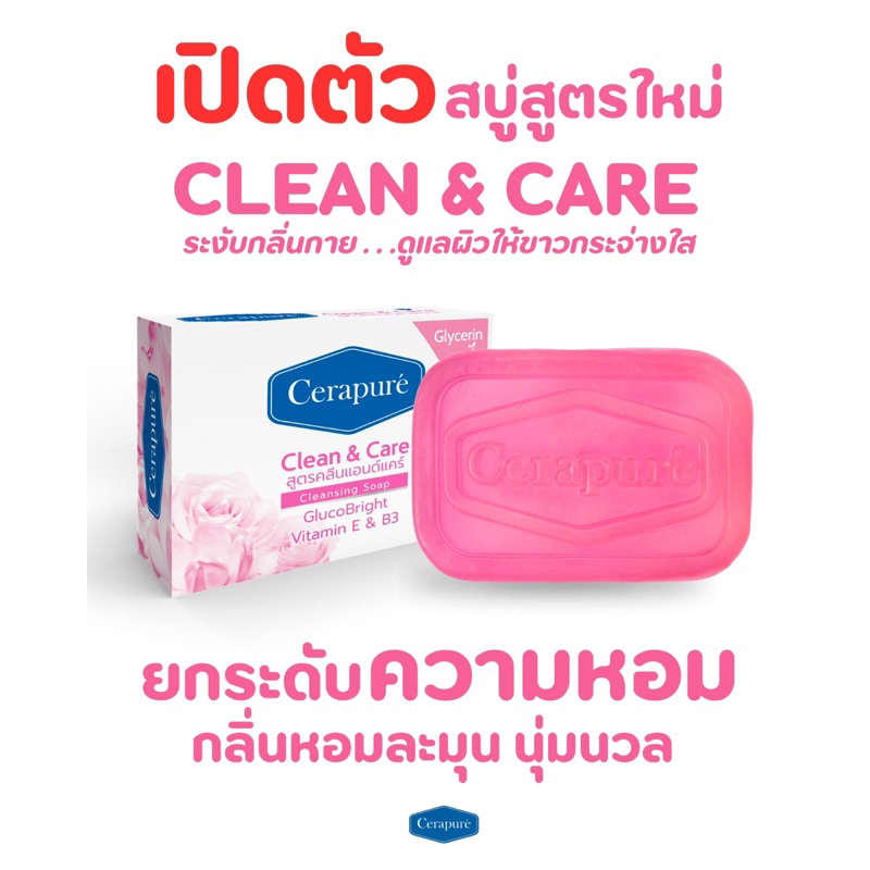 พร้อมส่งฟรี Cerapure Clean & Care Soap Bar สบู่เซราเพียวเร่ เนื้อชมพู ขนาด 85g.