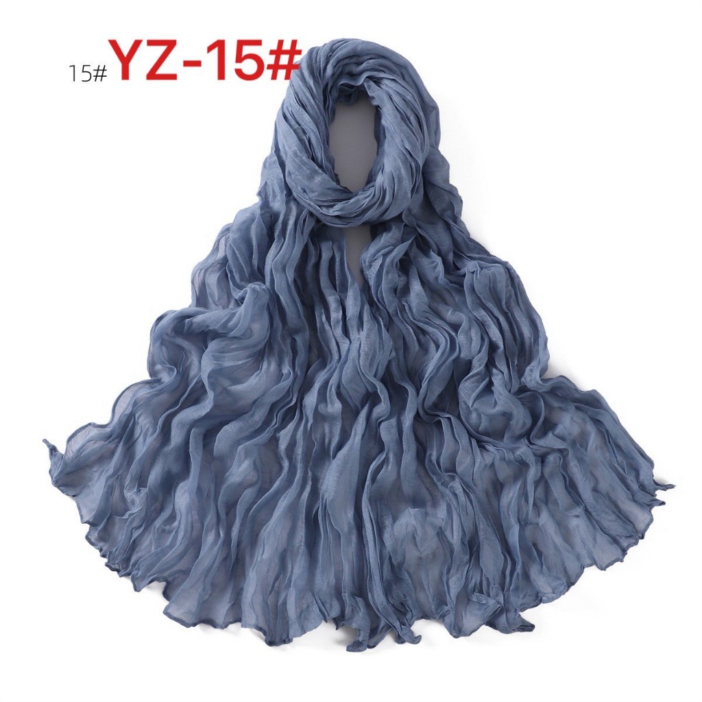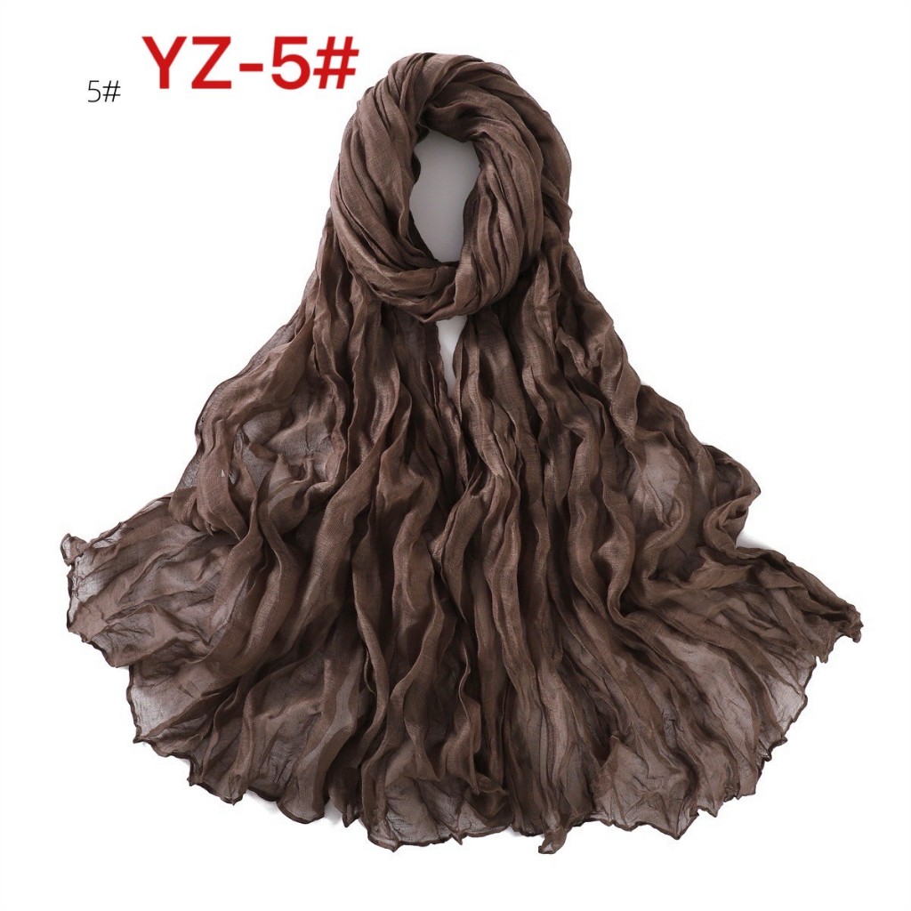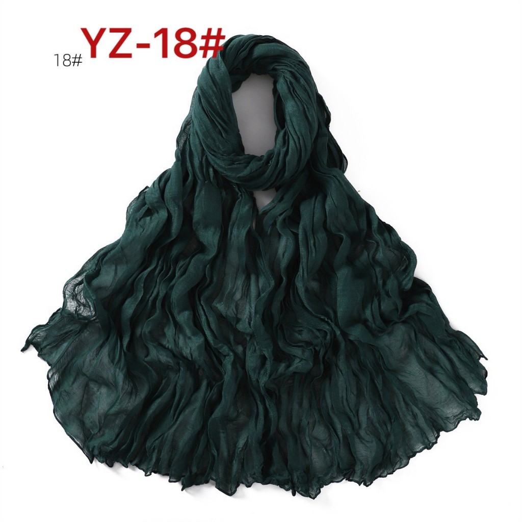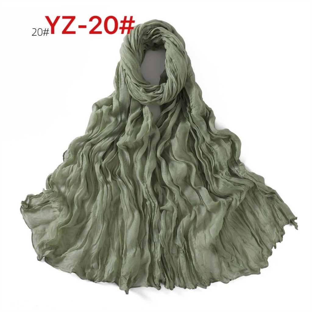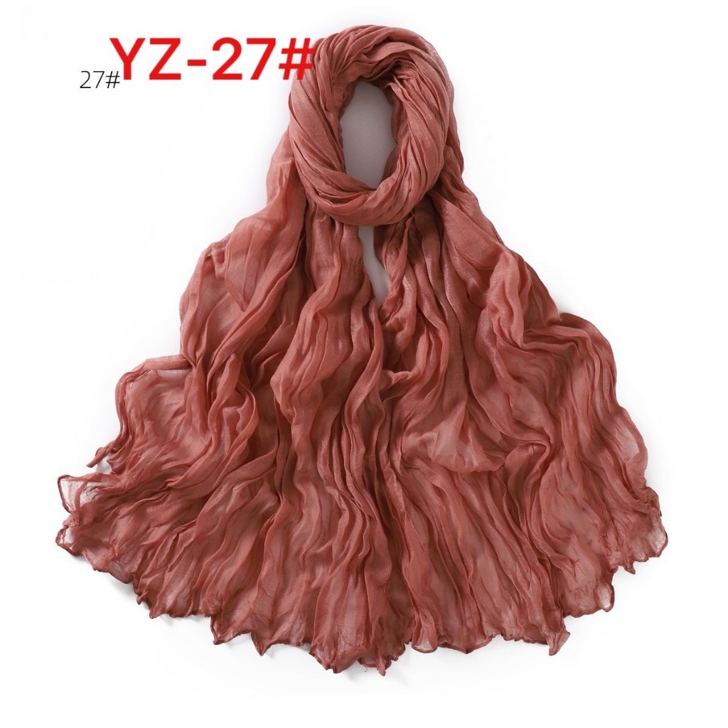 YZ-173 ผ้าพันคอ ผ้าฝ้ายลินินย่นสีพื้นสำหรับผู้หญิง ผ้าพันคอกันลมกันหนาว ผ้าคลุมไหล่กันแดด สีสวย ผ้านิ่ม