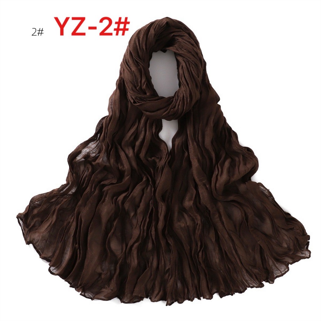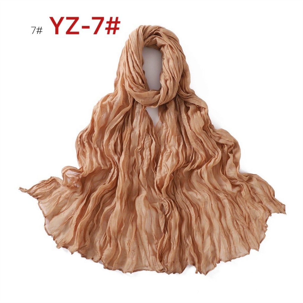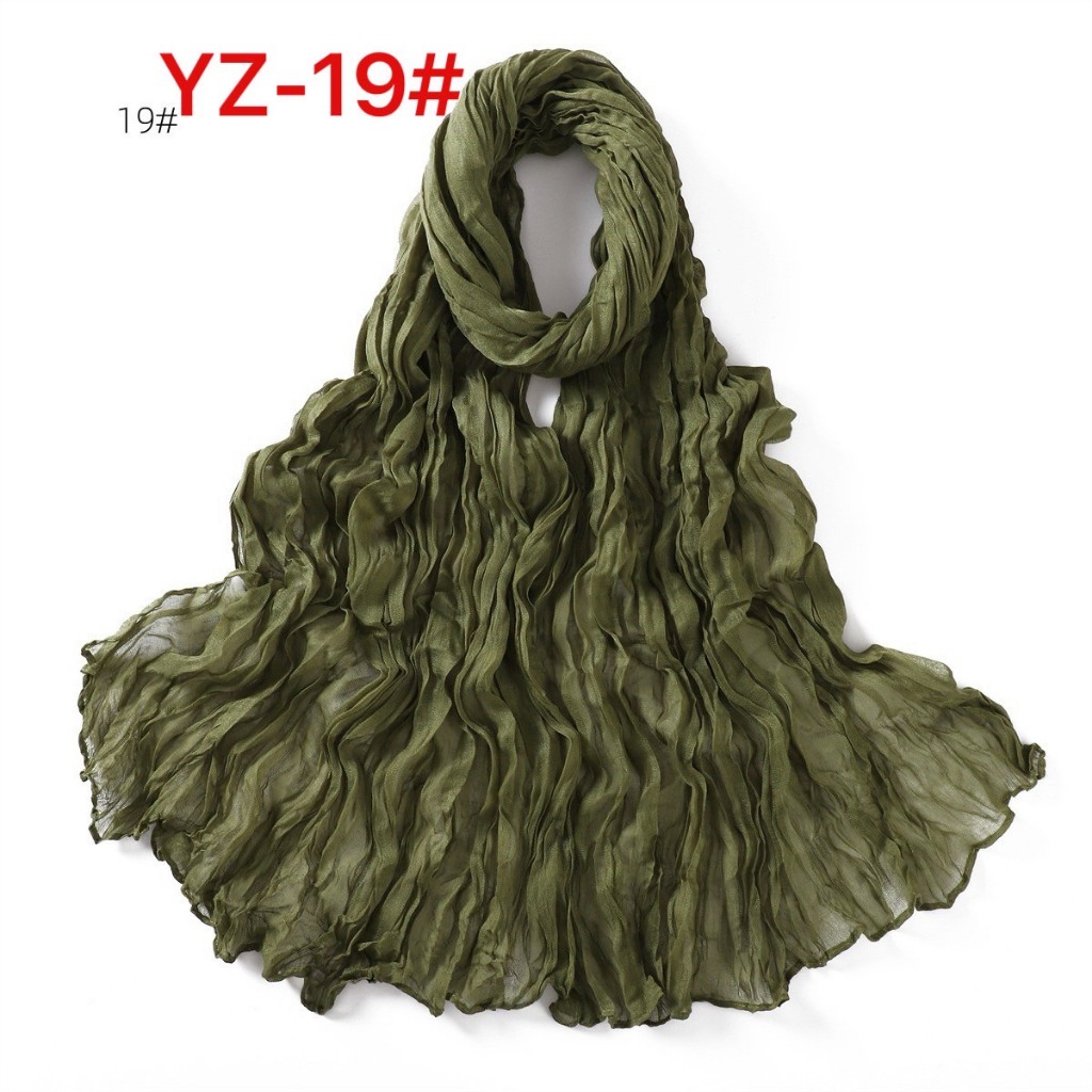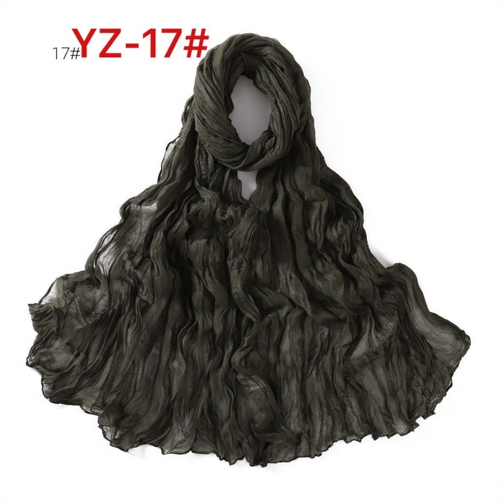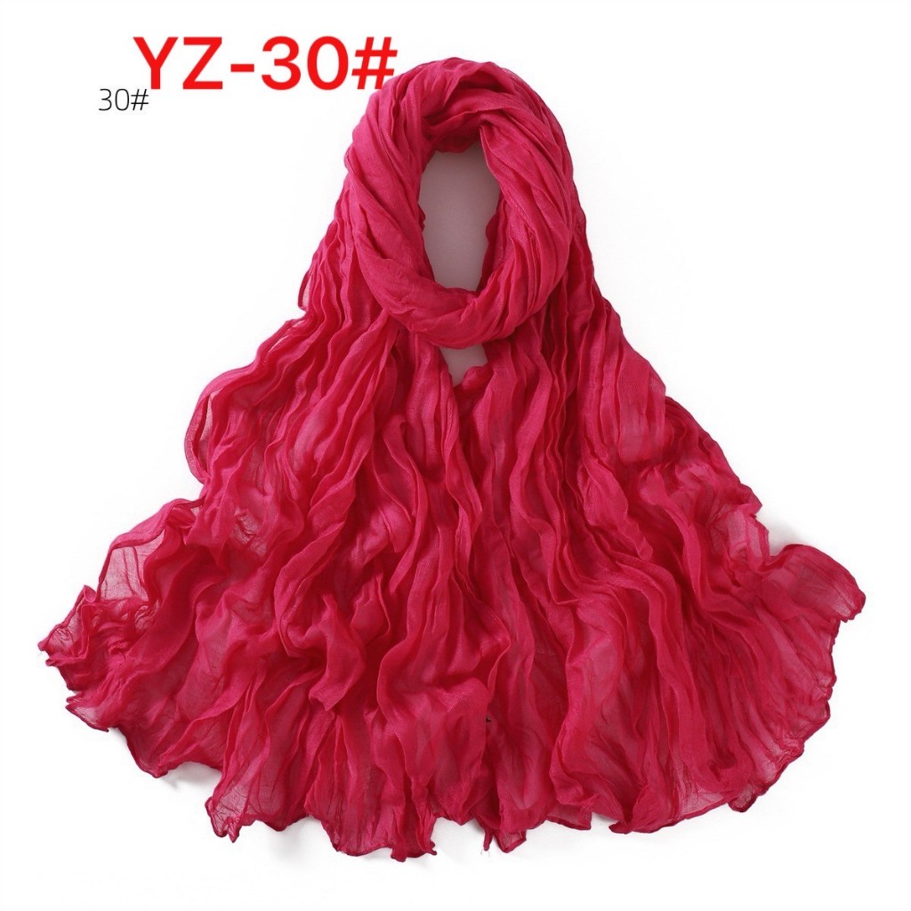YZ-173 ผ้าพันคอ ผ้าฝ้ายลินินย่นสีพื้นสำหรับผู้หญิง ผ้าพันคอกันลมกันหนาว ผ้าคลุมไหล่กันแดด สีสวย ผ้านิ่ม