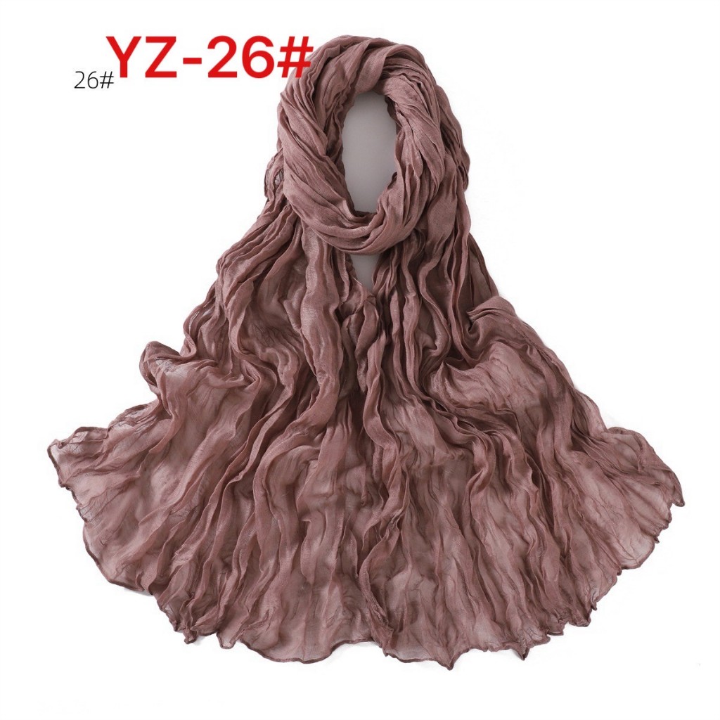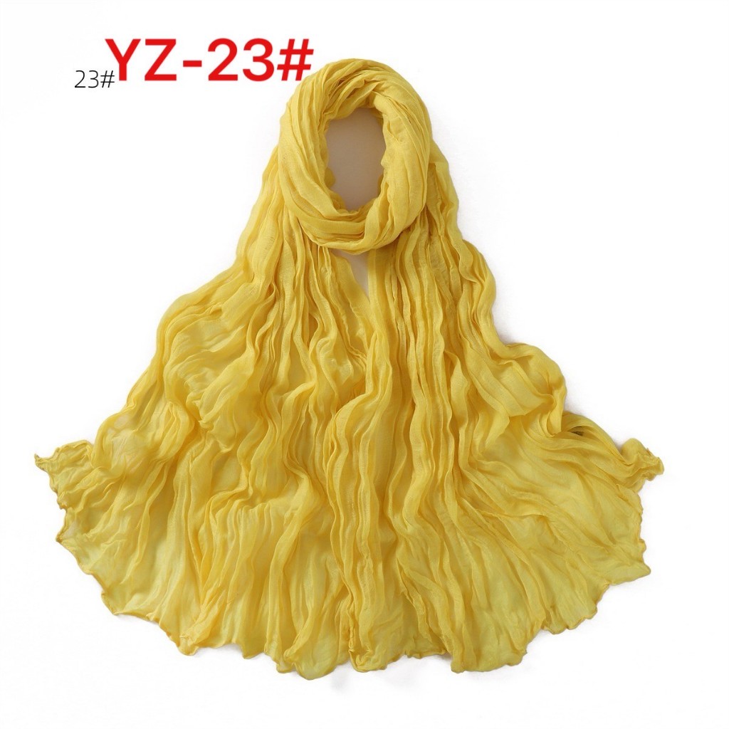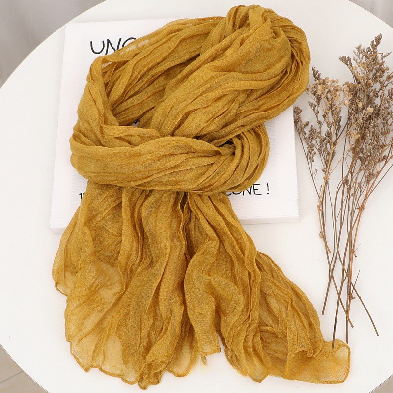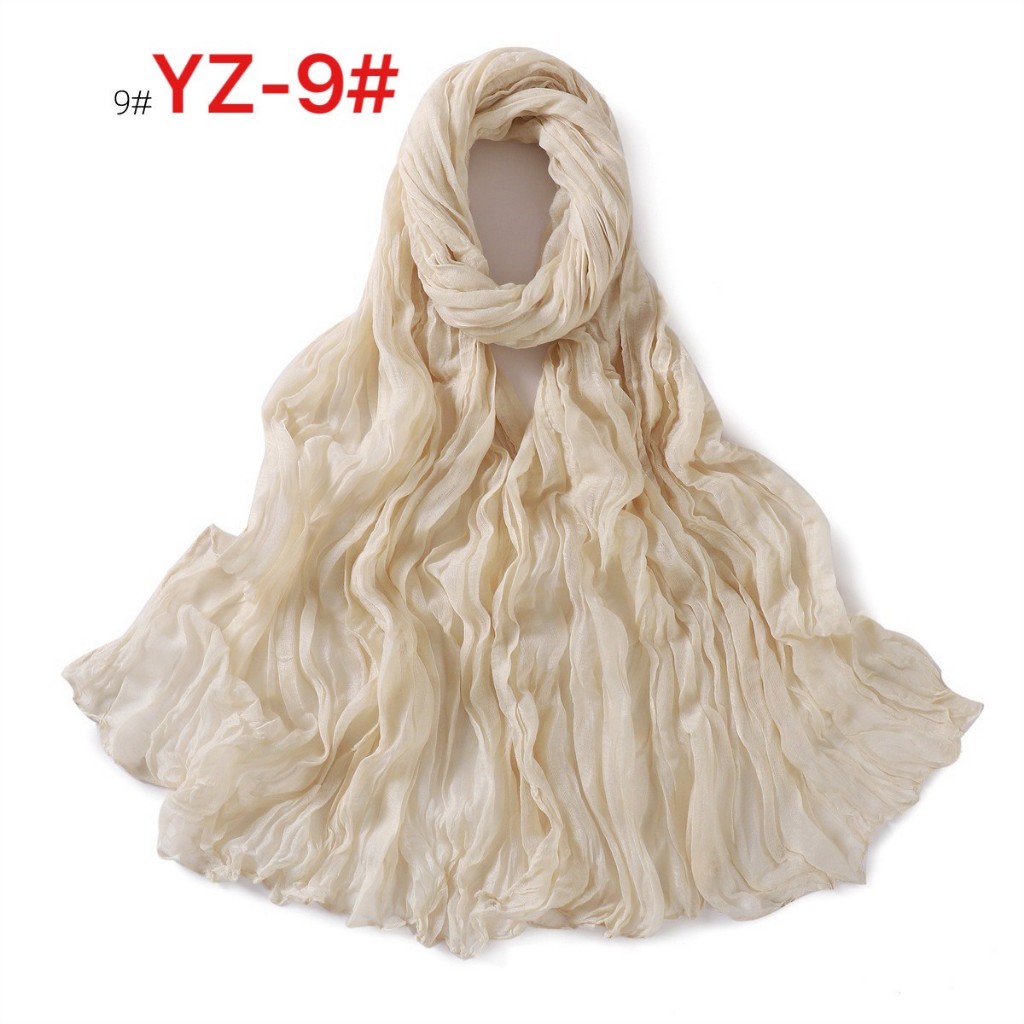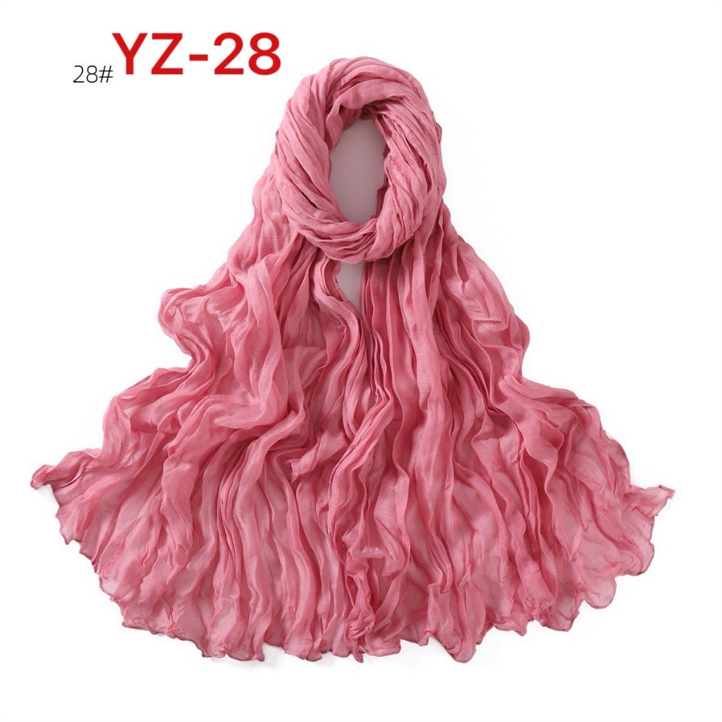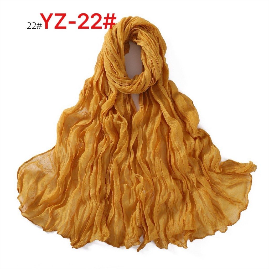 YZ-173 ผ้าพันคอ ผ้าฝ้ายลินินย่นสีพื้นสำหรับผู้หญิง ผ้าพันคอกันลมกันหนาว ผ้าคลุมไหล่กันแดด สีสวย ผ้านิ่ม