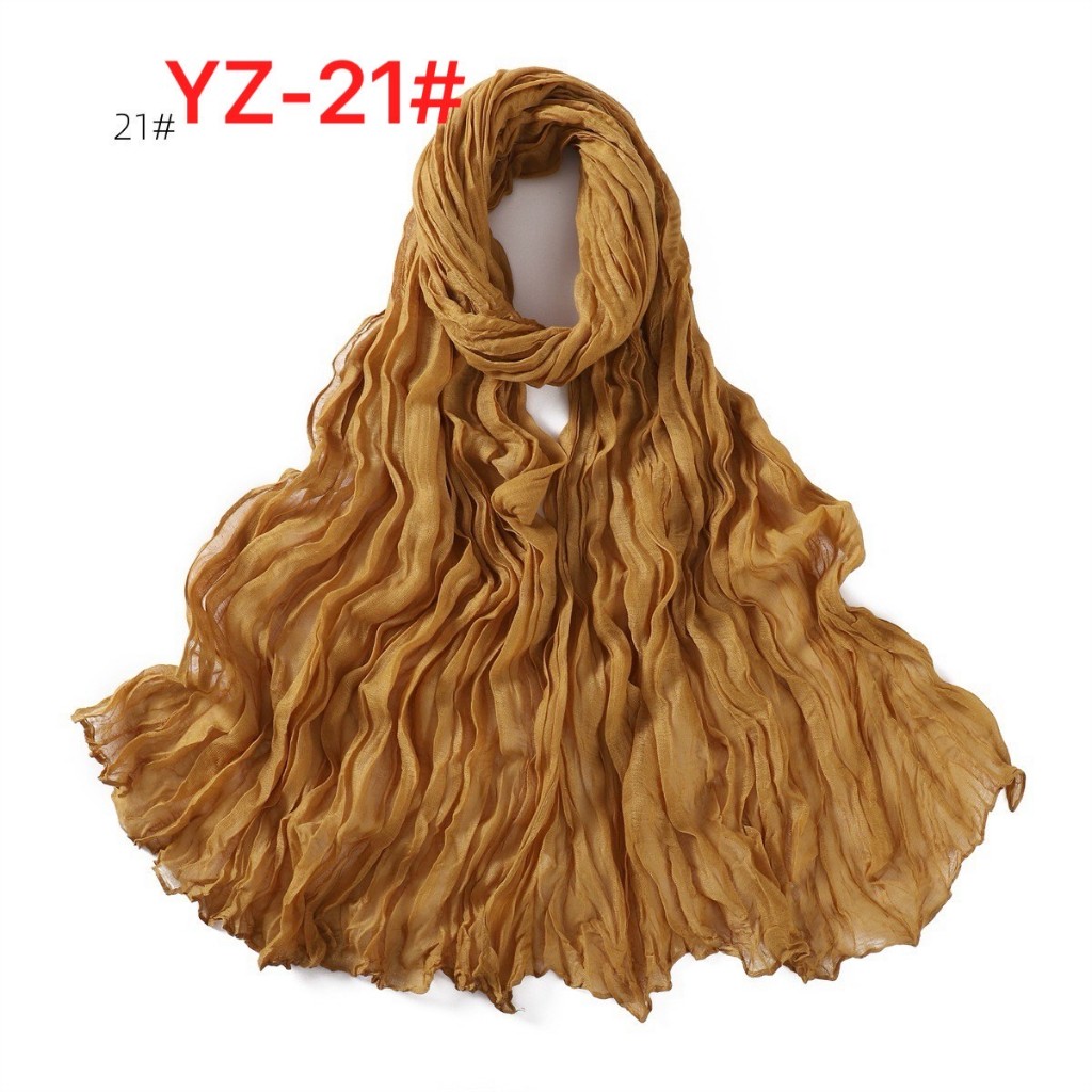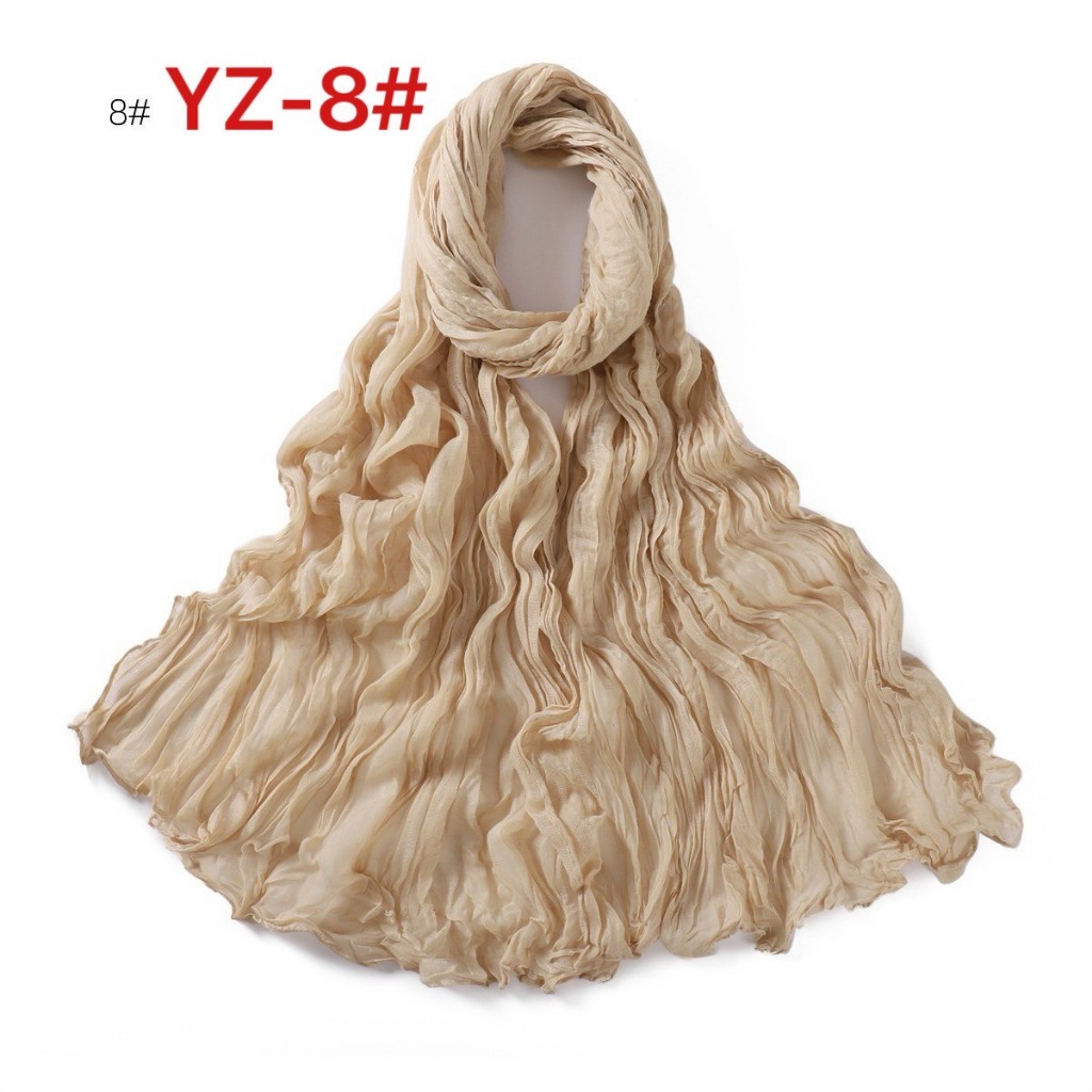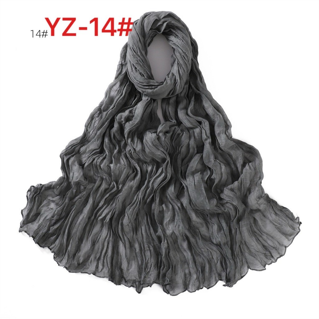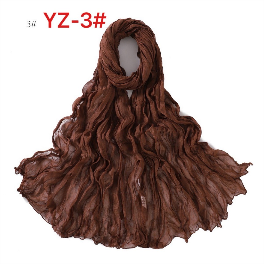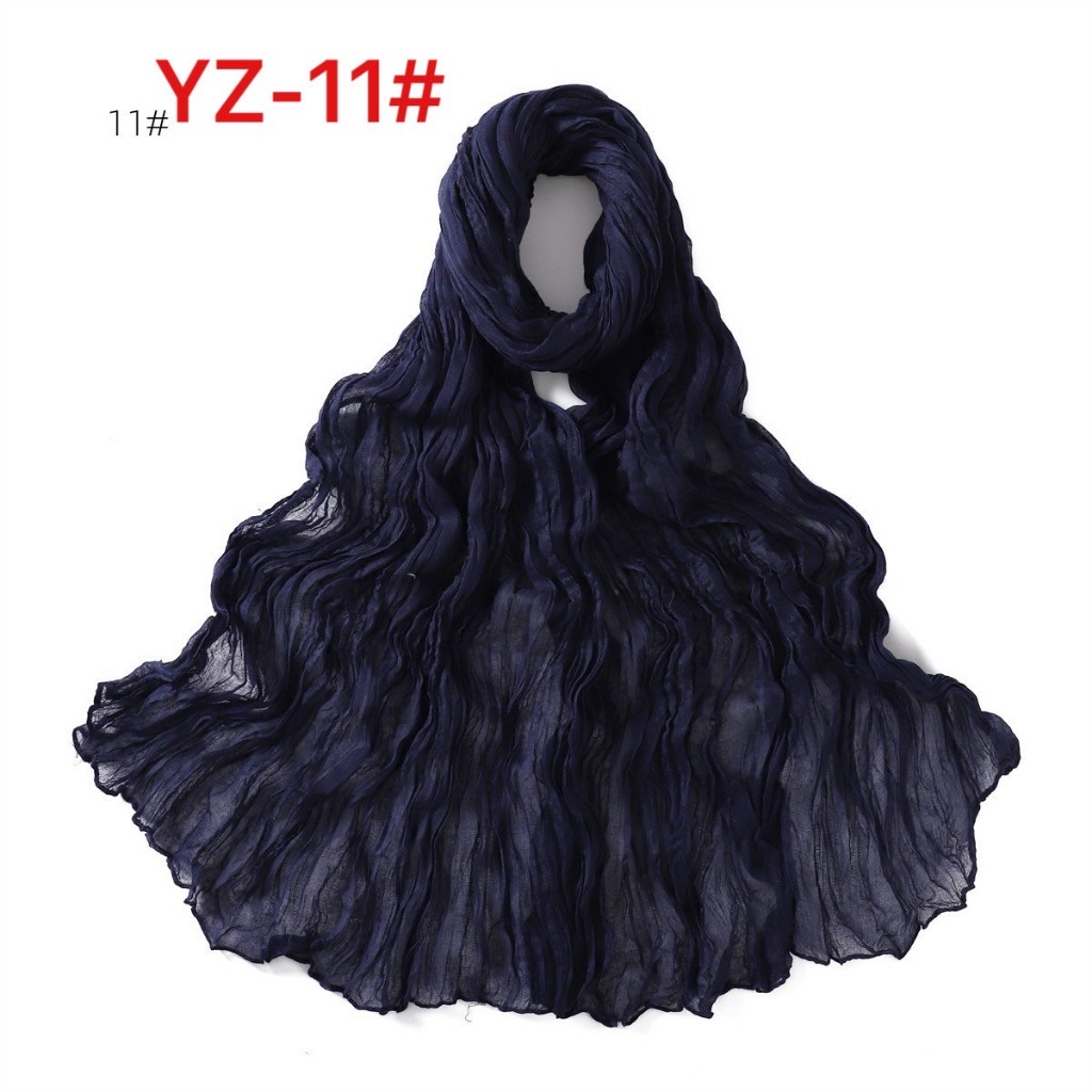 YZ-173 ผ้าพันคอ ผ้าฝ้ายลินินย่นสีพื้นสำหรับผู้หญิง ผ้าพันคอกันลมกันหนาว ผ้าคลุมไหล่กันแดด สีสวย ผ้านิ่ม