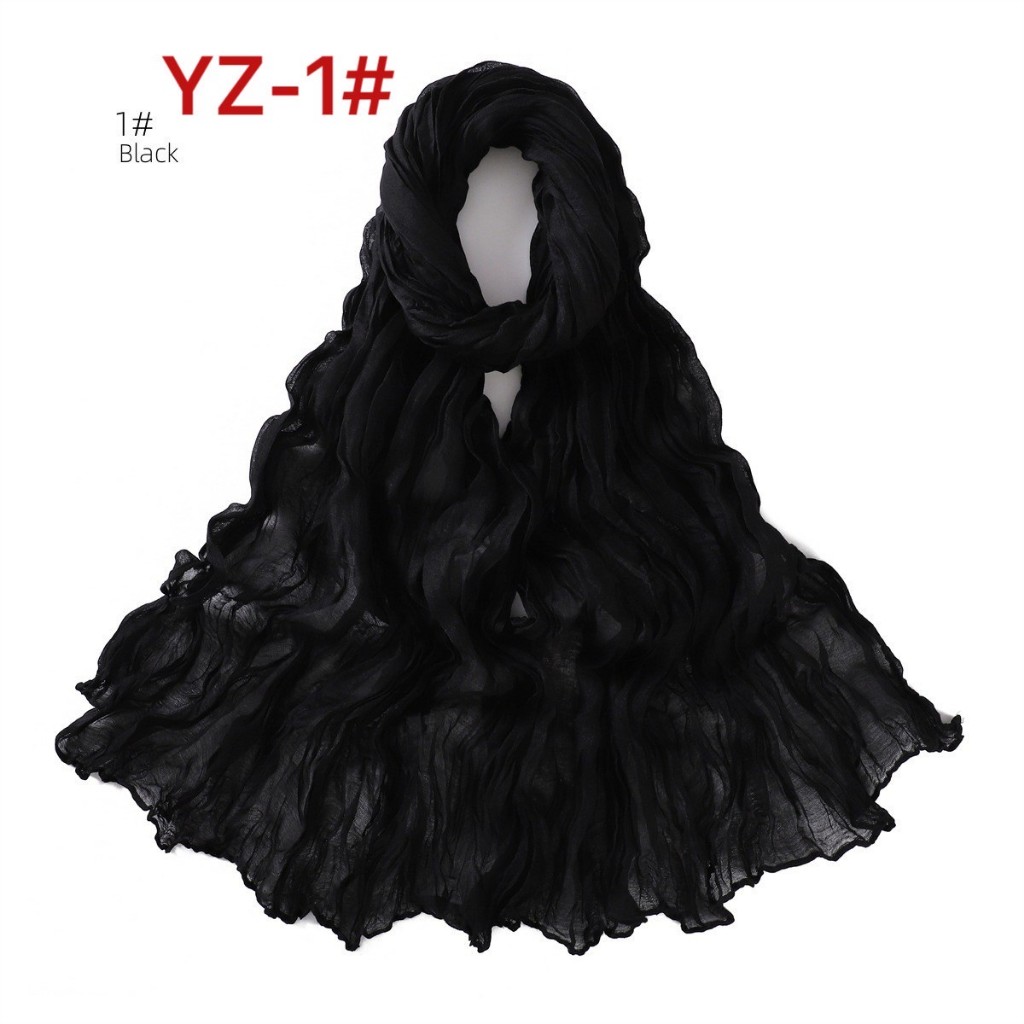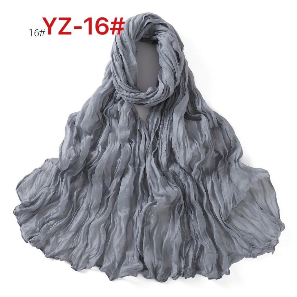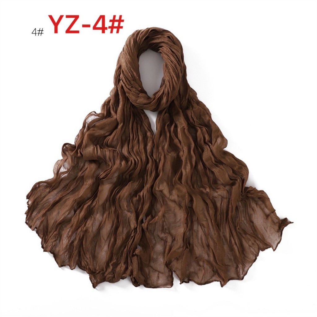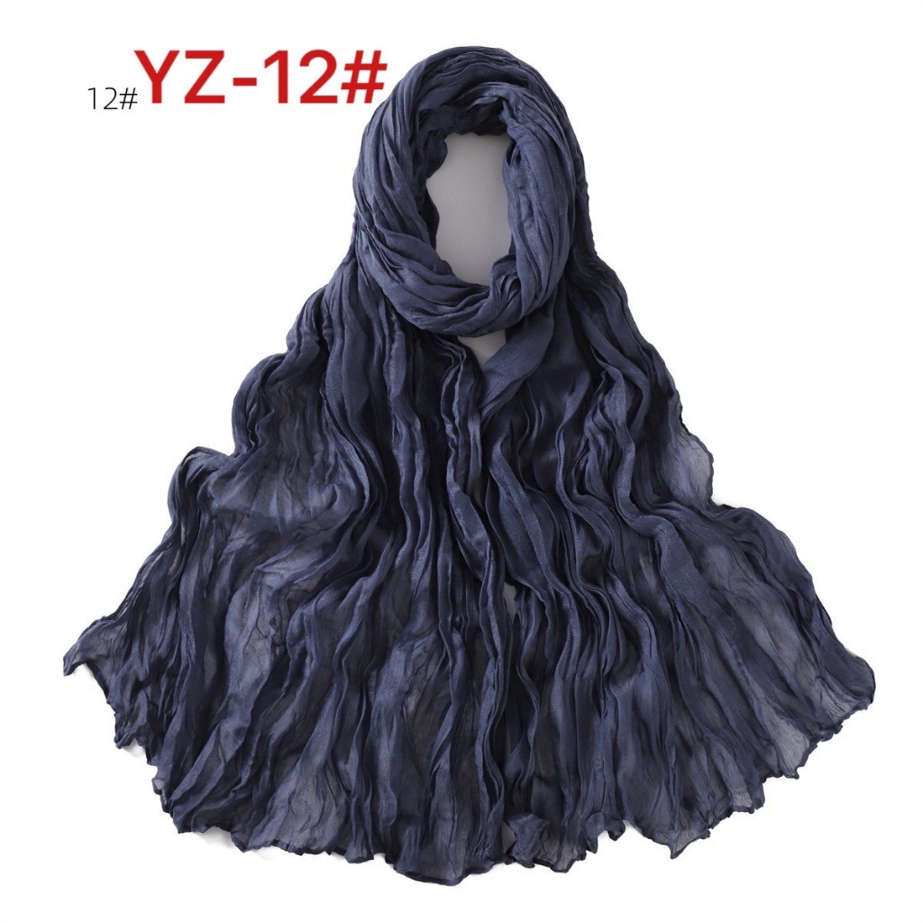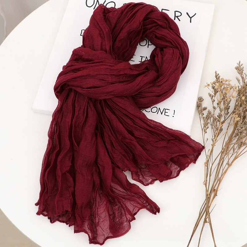 YZ-173 ผ้าพันคอ ผ้าฝ้ายลินินย่นสีพื้นสำหรับผู้หญิง ผ้าพันคอกันลมกันหนาว ผ้าคลุมไหล่กันแดด สีสวย ผ้านิ่ม
