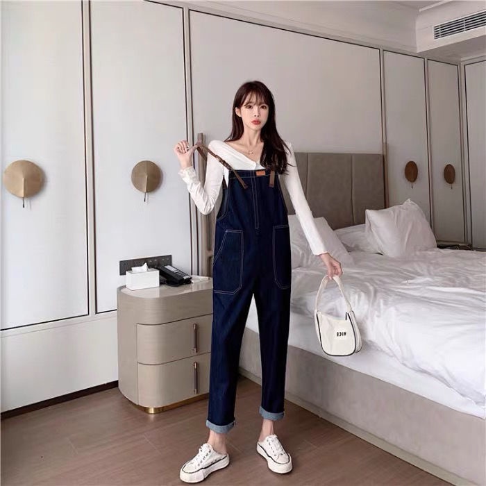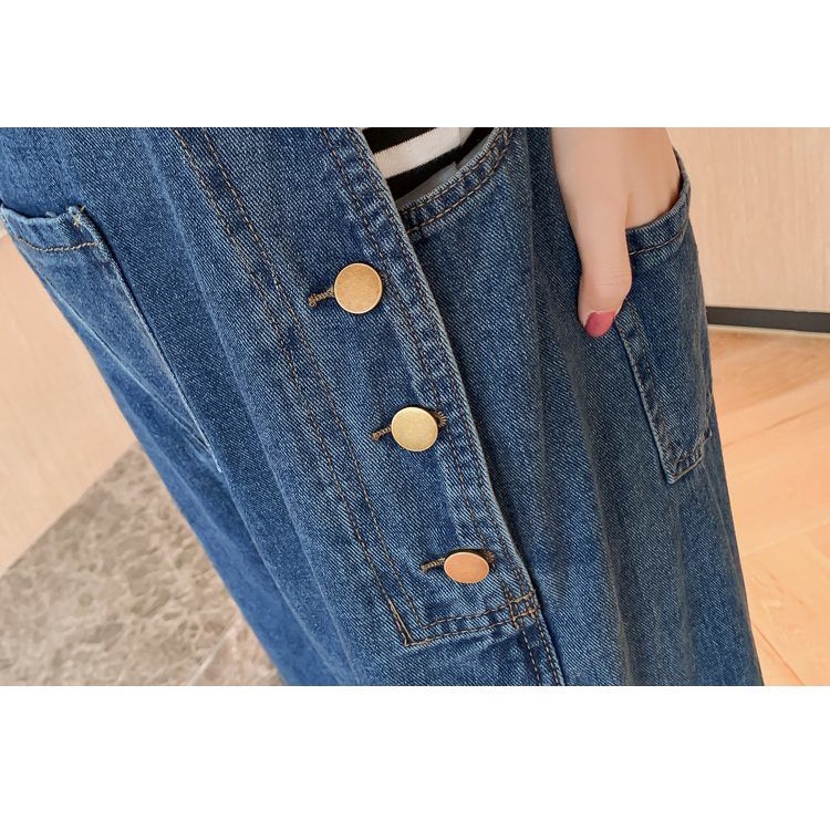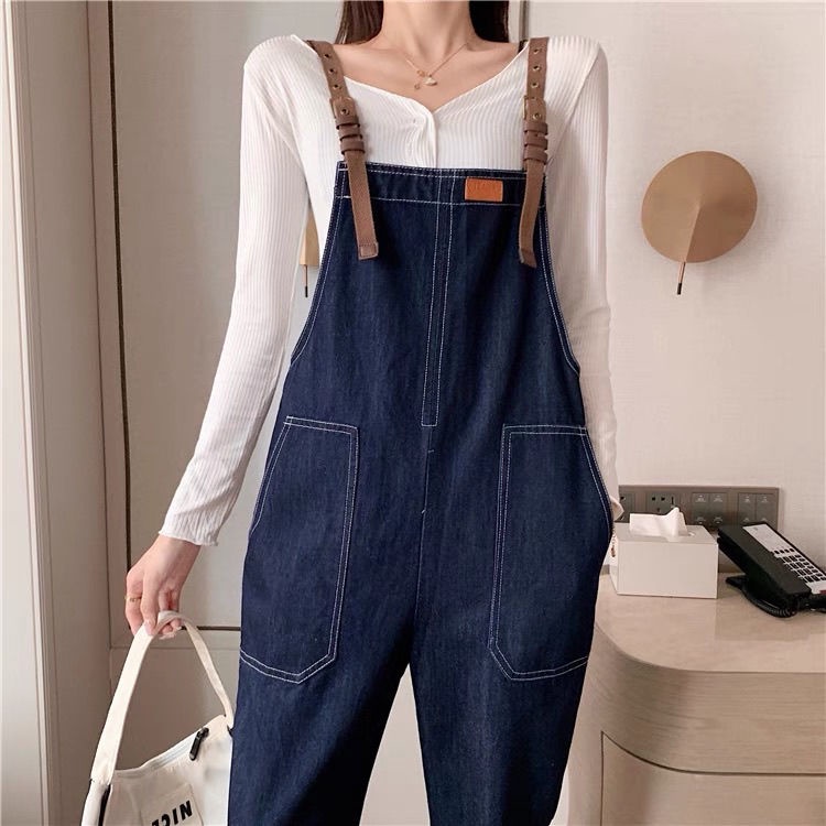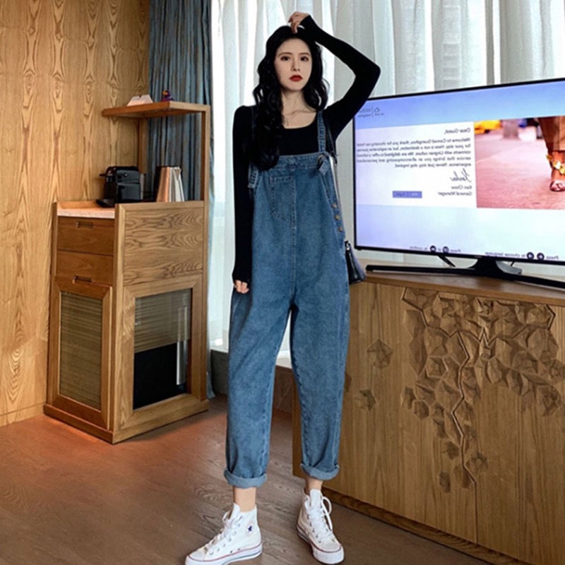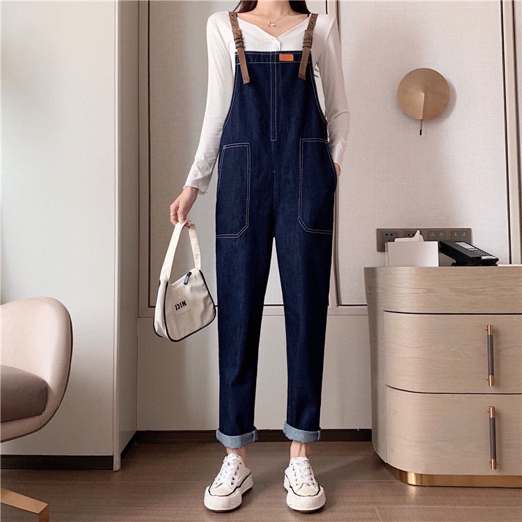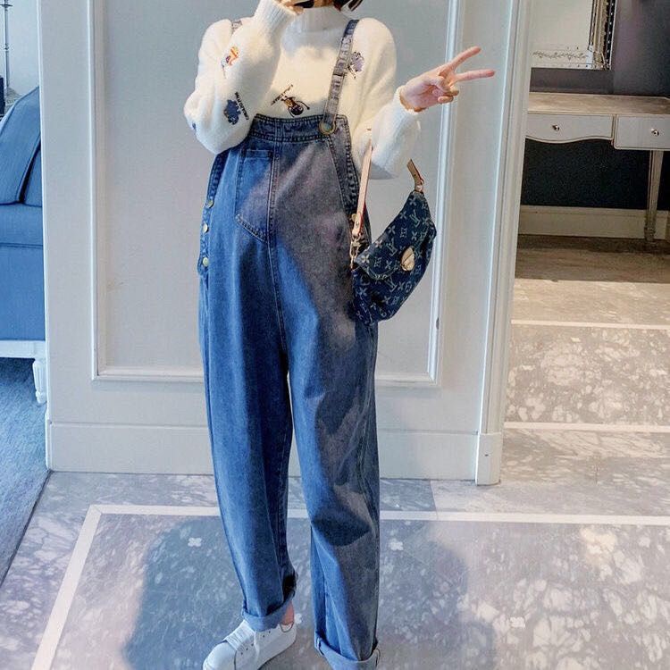 ชุดเอี๊ยมกางเกงยีนขายาว ทรงหลวม ขนาดใหญ่ สําหรับหญิงตั้งครรภ์