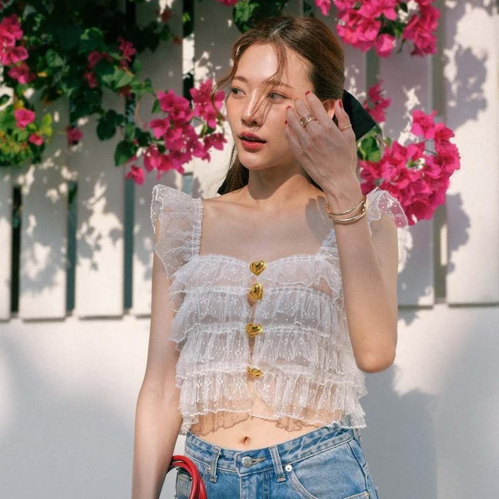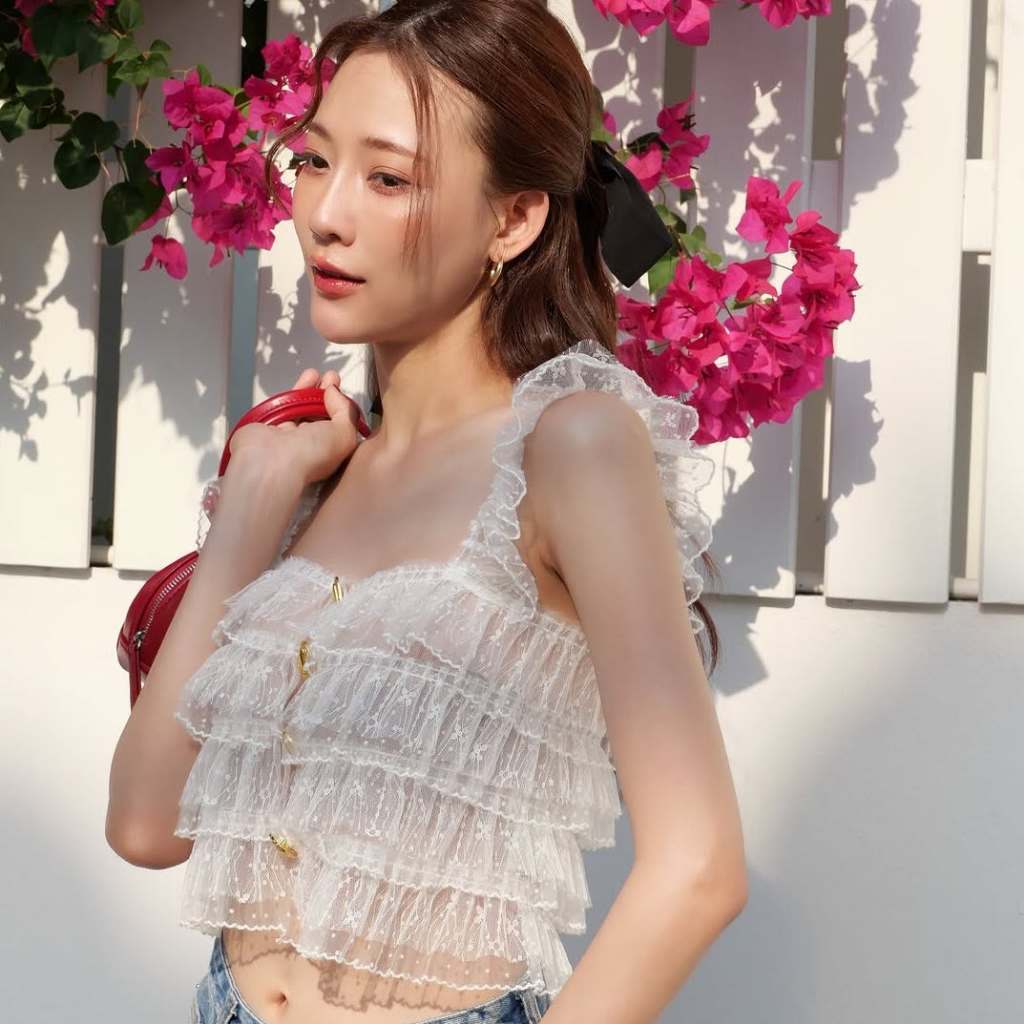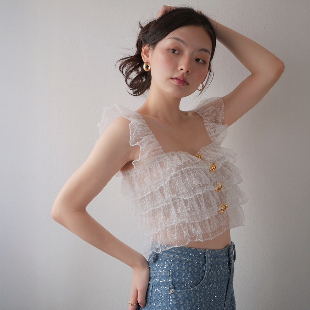 LUCA STUDIO_Maria Crop Top ไซส์ M,L (Pre-order 28 March) - เสื้อผ้าระบายลูกไม้ เปิดด้านหน้า เนื้อผ้าโปร่งบางไม่มีซับใน