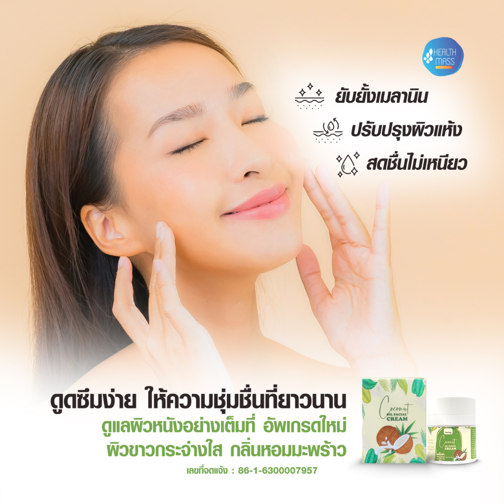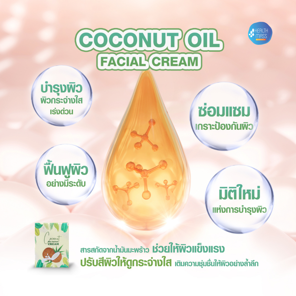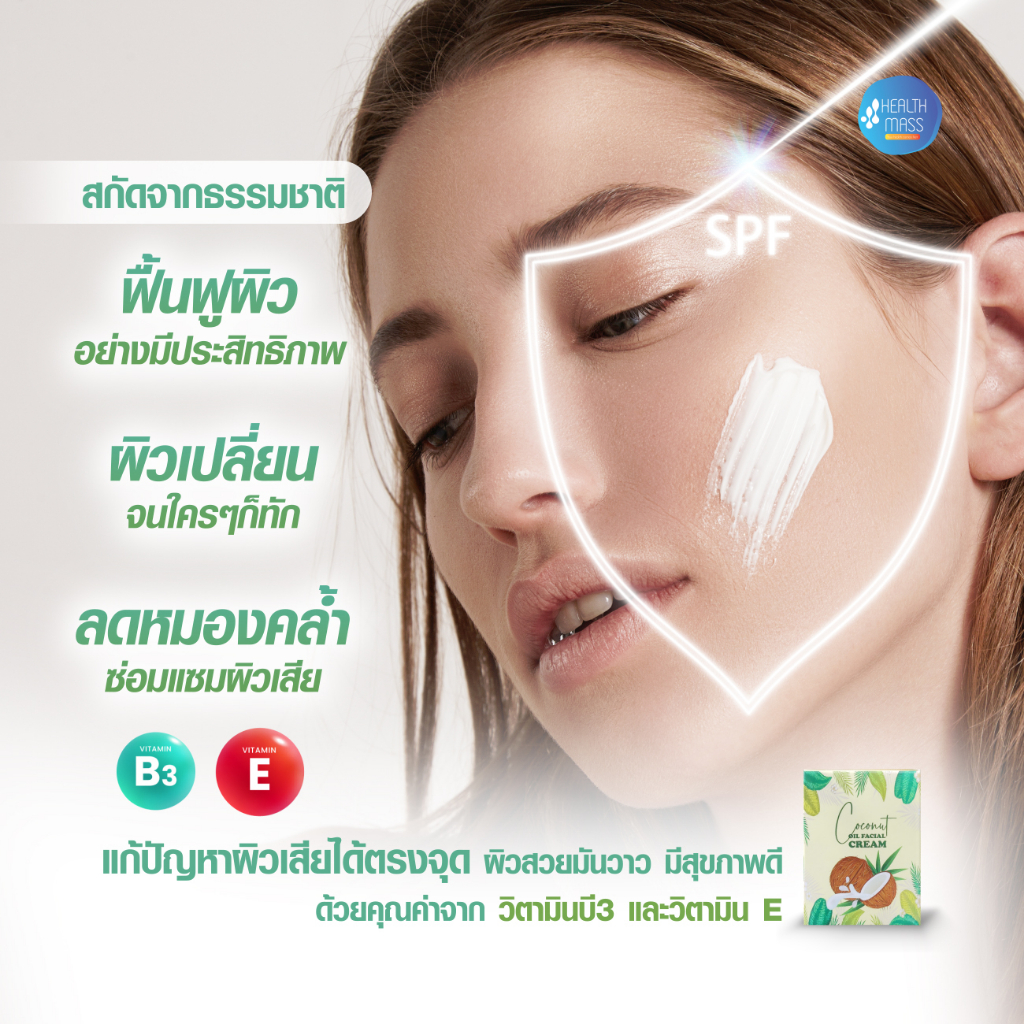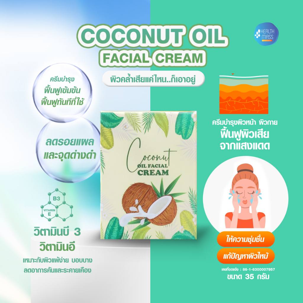 ครีมบำรุงผิว ฟื้นฟูผิวเสีย จากแสงแดด ควบคุมความมันบนใบหน้า COCONUT OIL FACIAL CREAM ขนาด 35 กรัม ฟื้นฟูผิว แห้งเสีย