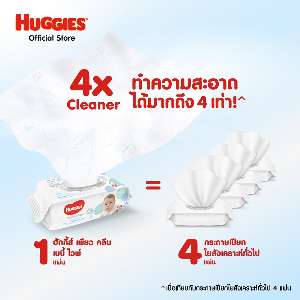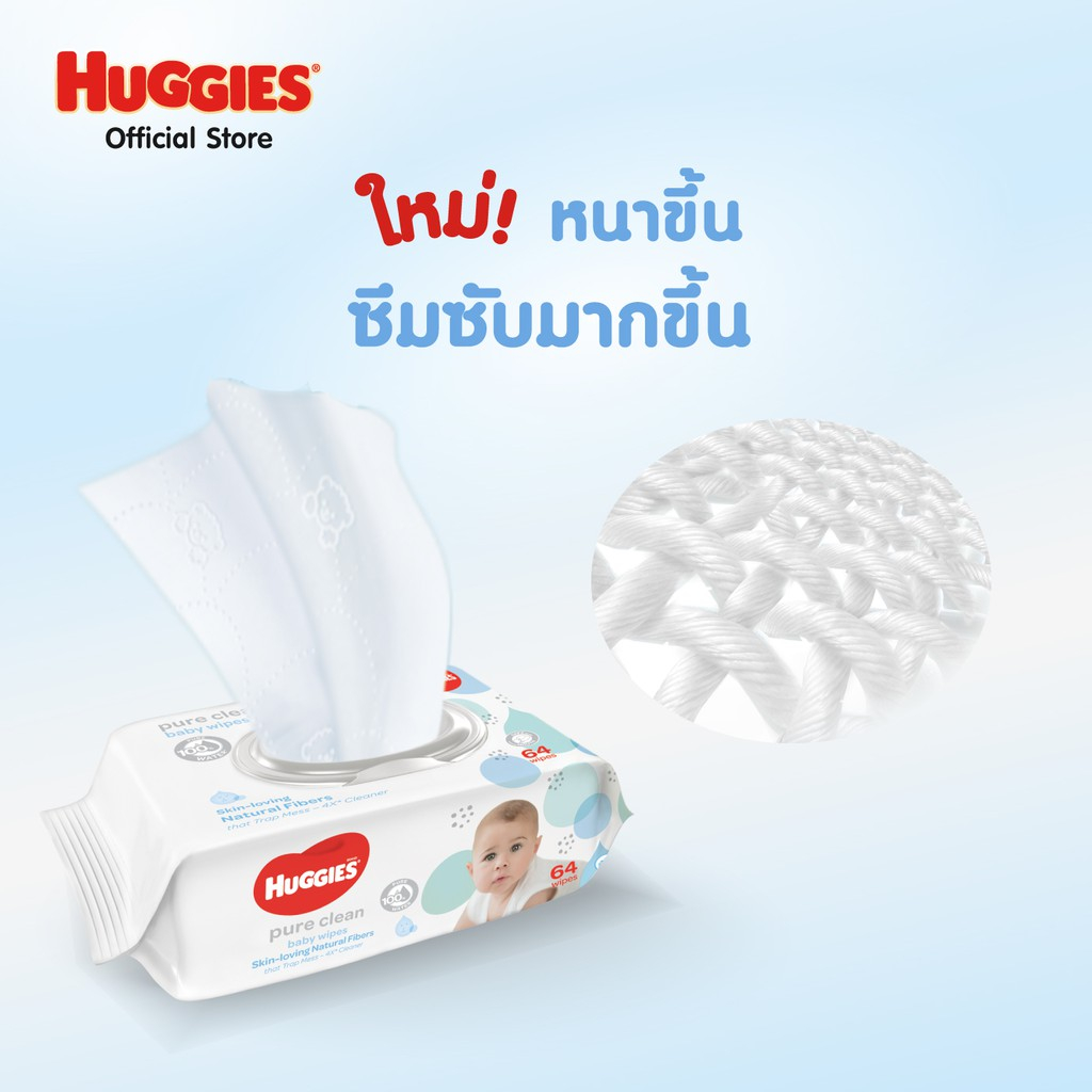 (แพ็คสุดคุ้ม 1+1) Huggies Pure Clean Baby Wipes ทิชชู่เปียก (แพ็คคู่) สำหรับเด็ก ฮักกี้ส์ เพียว คลีน 64 แผ่น 2 แพ็ค