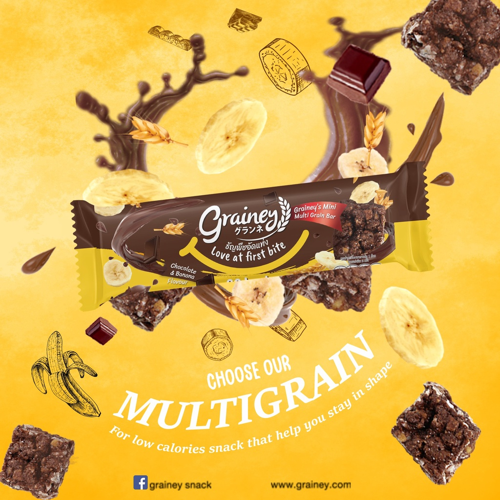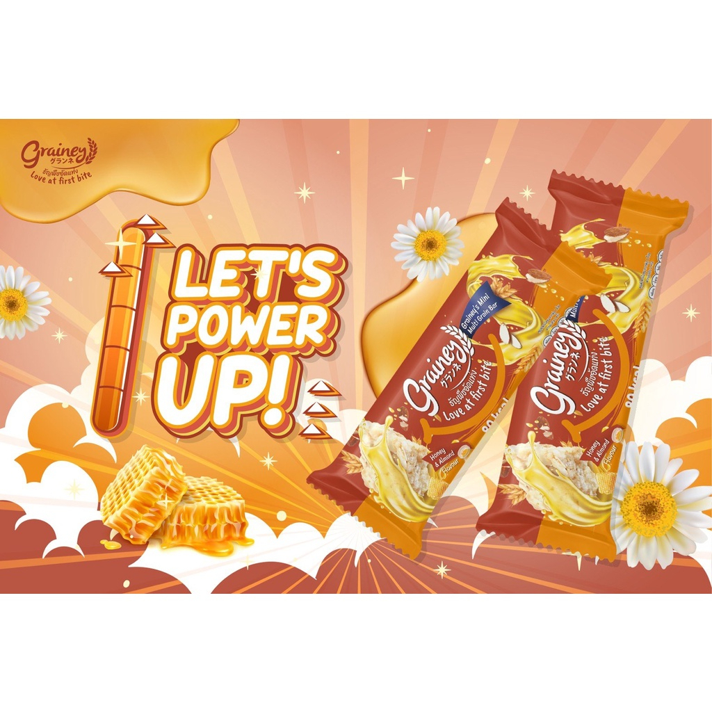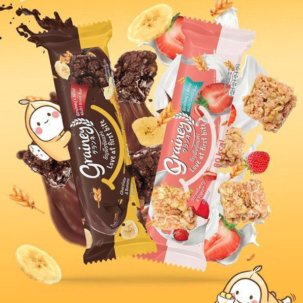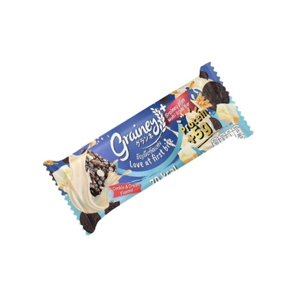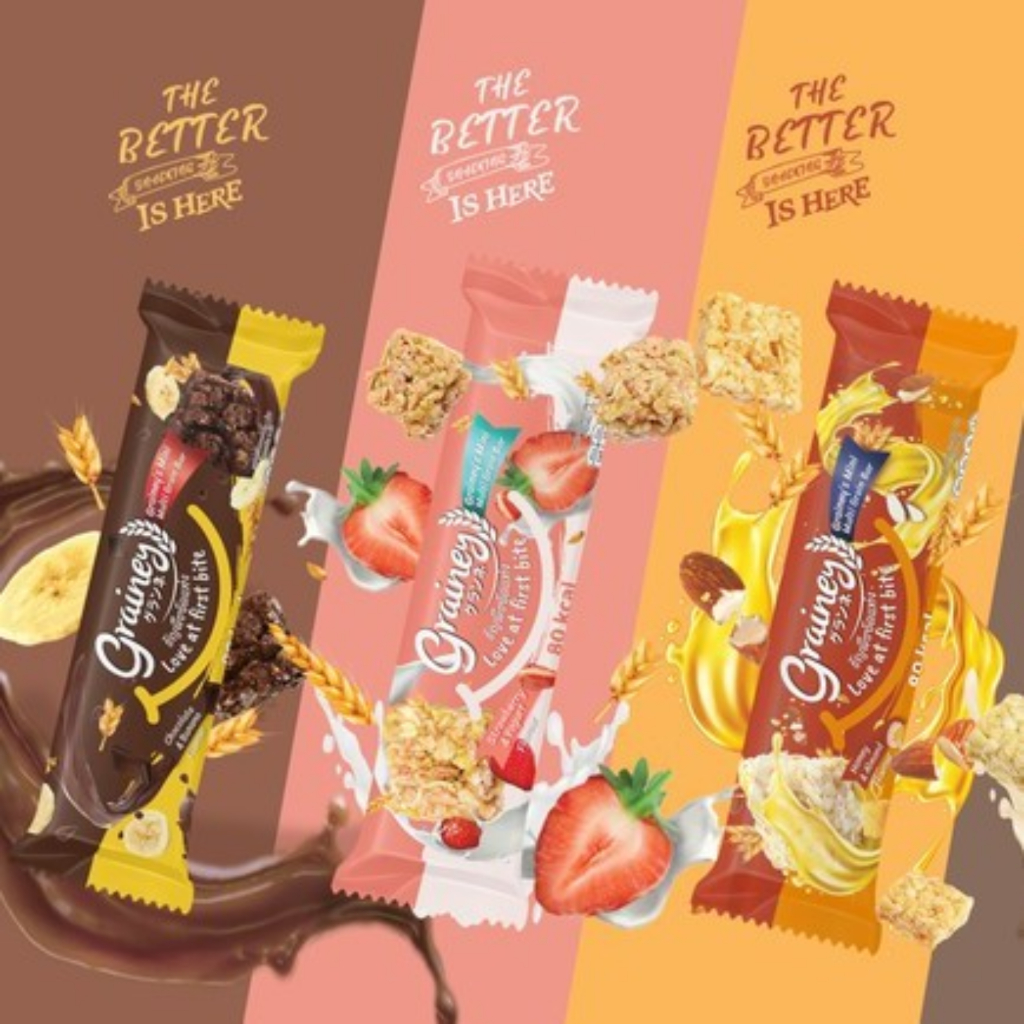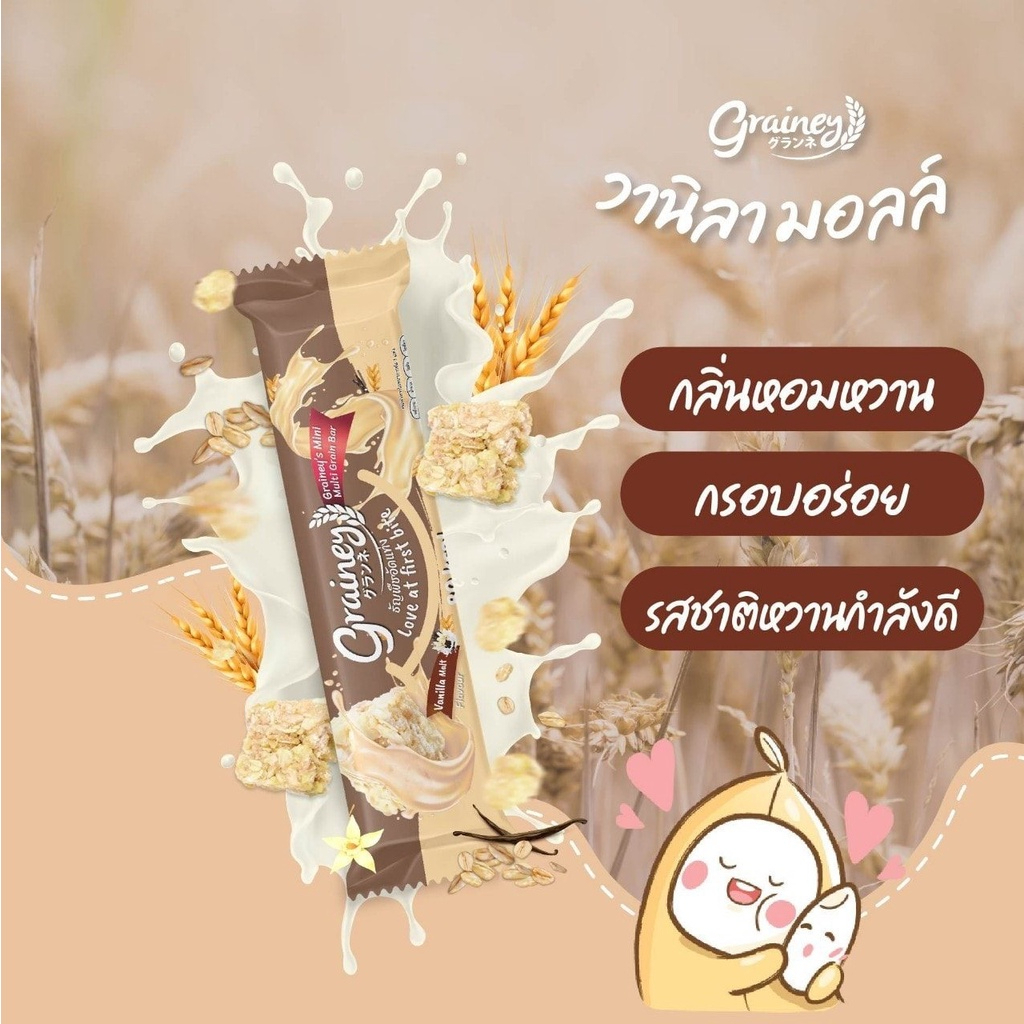 Grainey เกรนเน่ย์ ธัญพืชอัดแท่ง ขนมสุขภาพ น้ำตาลน้อย แคลอรี่ต่ำ ซีเรียล อาหารเช้า กราโนล่าและข้าวโอ๊ต ขนาด 20 กรัม
