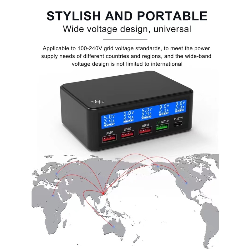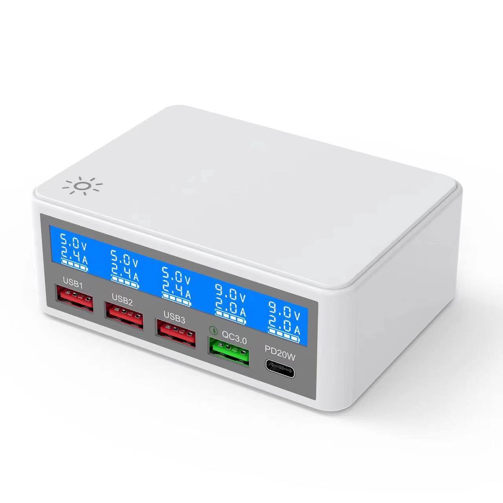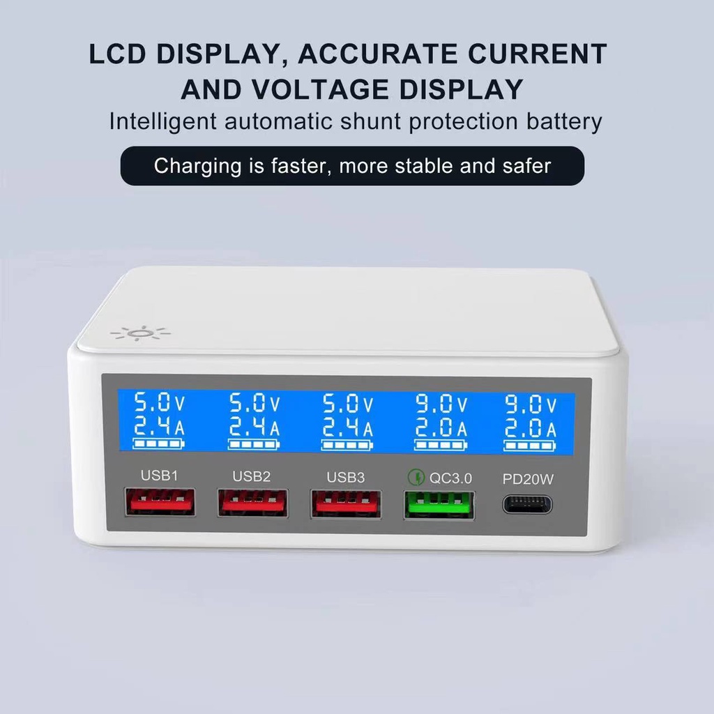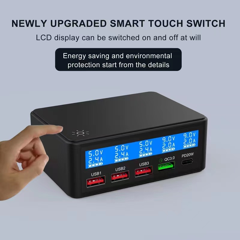 65W Quick Charge 3.0 สมาร์ท USB 4Port +PD 20WจอแสดงผลLedหน้าจอสวิตช์สัมผัส Fast Charging Station โทรศัพท์มือถือ USB cha