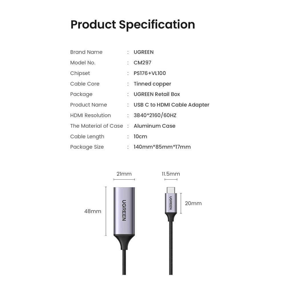 Ugreen อะแดปเตอร์ USB C HDMI 4K @ 60Hz Type C เป็น HDMI Thunderbolt 3 USB-C เป็น HDMI สําหรับ MacBook Pro 2020 MacBook A