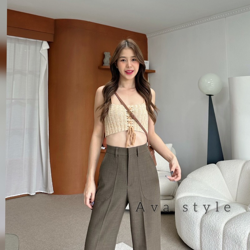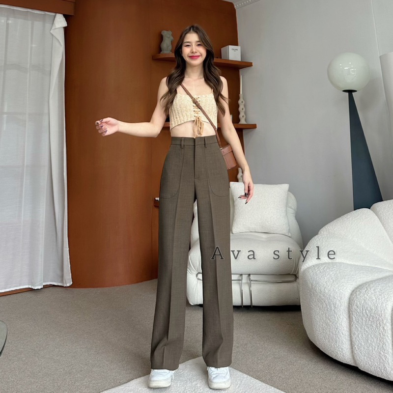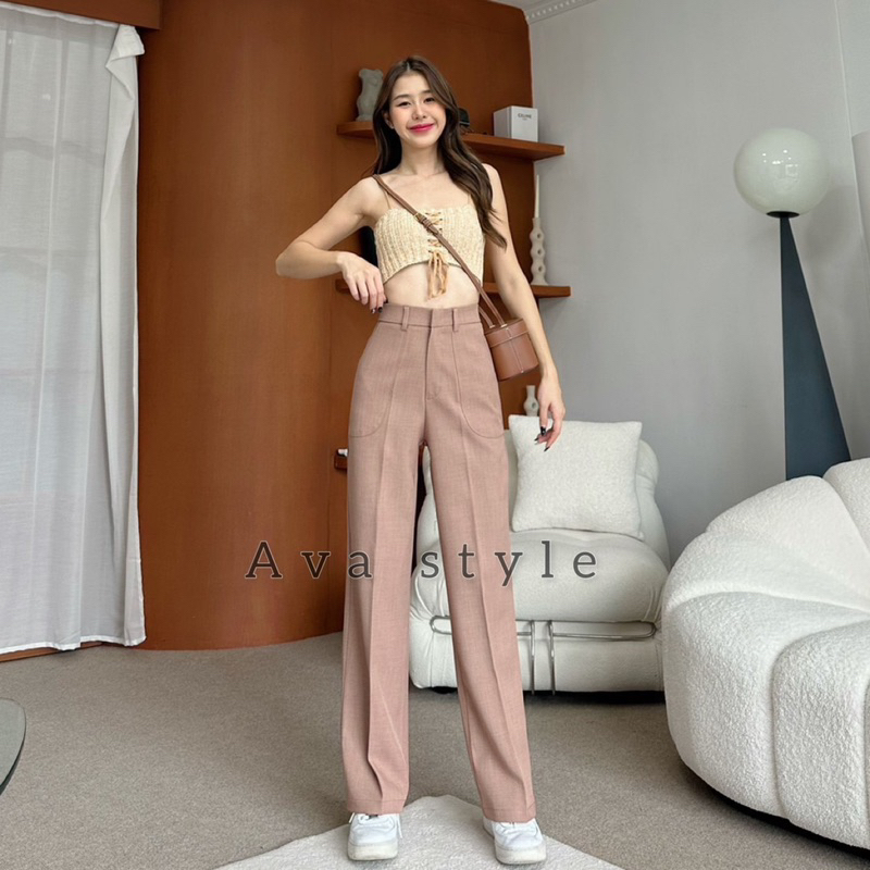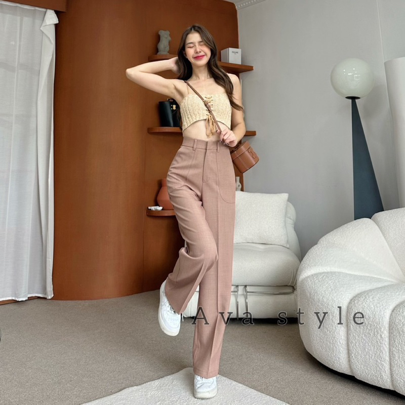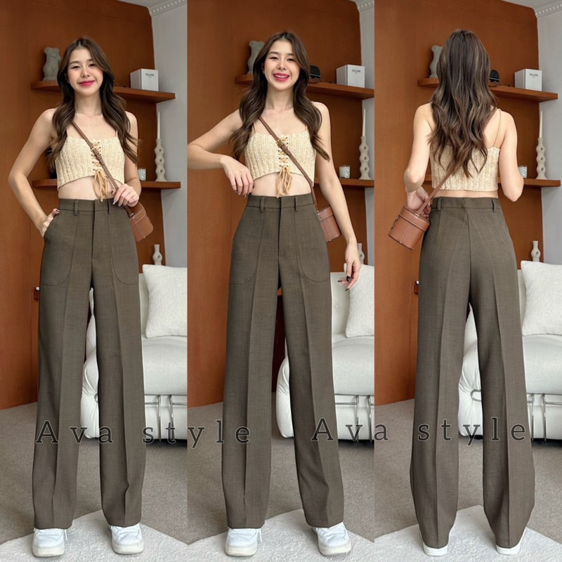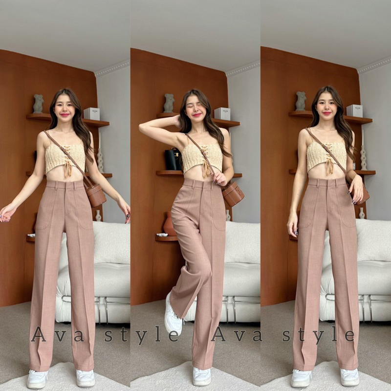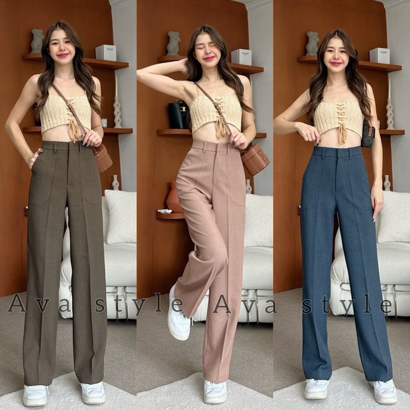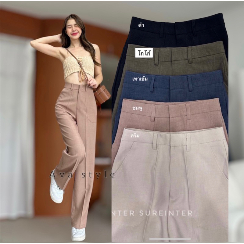 🛍มี5สีแนะนำ🎀กางเกงขากระบอกกลาง รุ่นหูเข็มแต่งกระเป๋า(ผ้าป๊อกกี้) ผ้าดีทรงสวย 🚨🚨