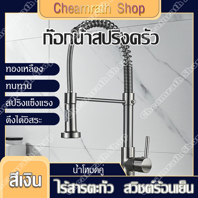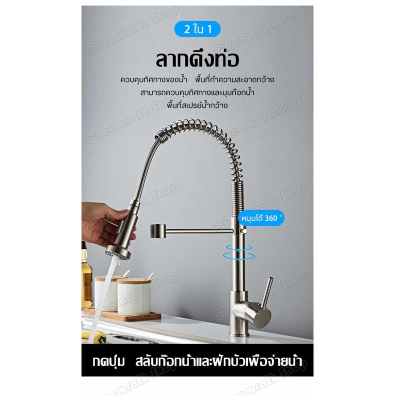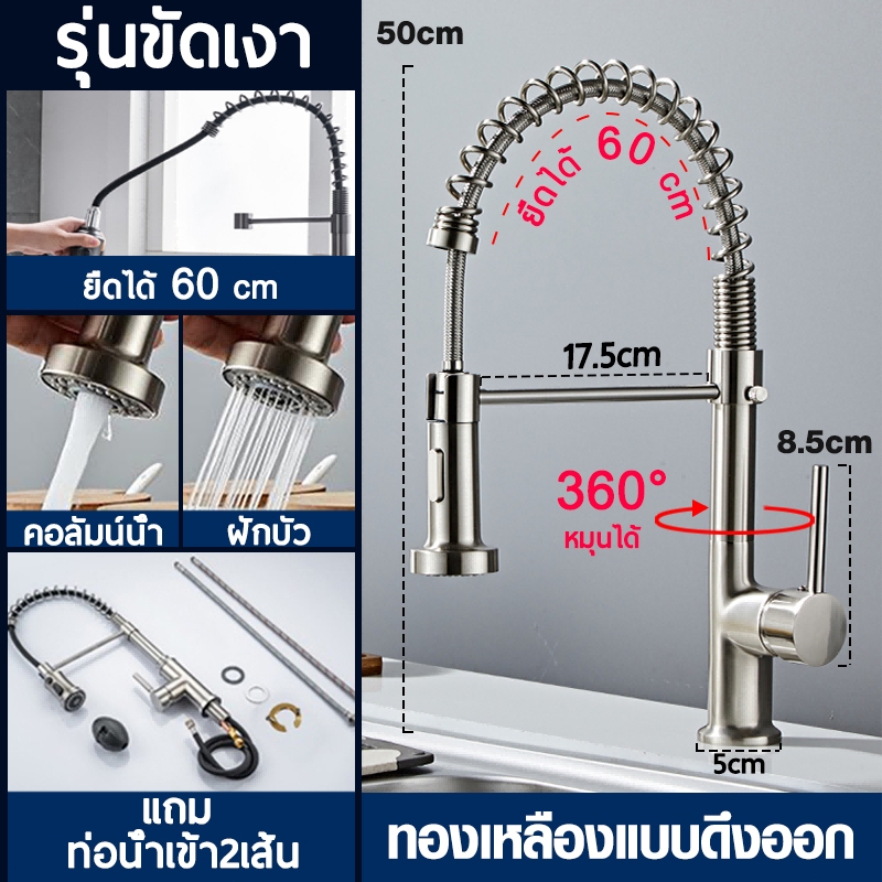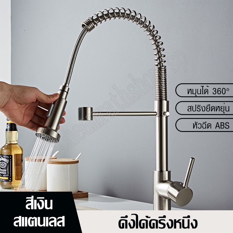 ก๊อกน้ำครัว Homesoon ก๊อกน้ำอ่างล้างจาน สแตนเลส 304 แบบดึงออกได้ ปรับได้ 360° สำหรับอ่างล้างจาน