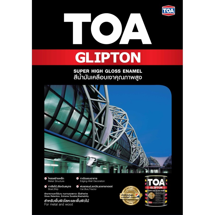 สีน้ำมัน TOA Glipton 3.7 ลิตร กึ่งเงา สีน้ำมัน เคลือบเงา สีทาเหล็ก สีทาไม้ (1 แกลลอน)