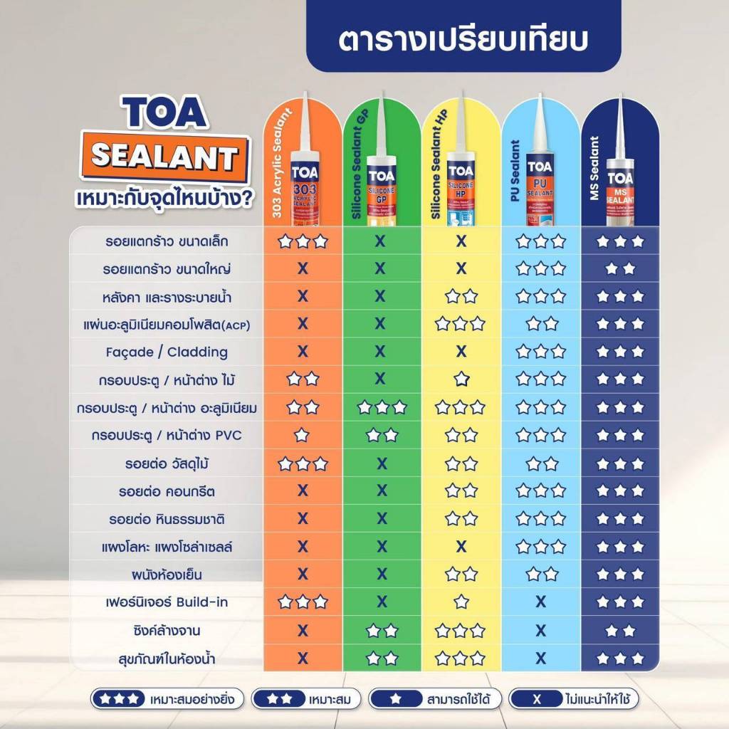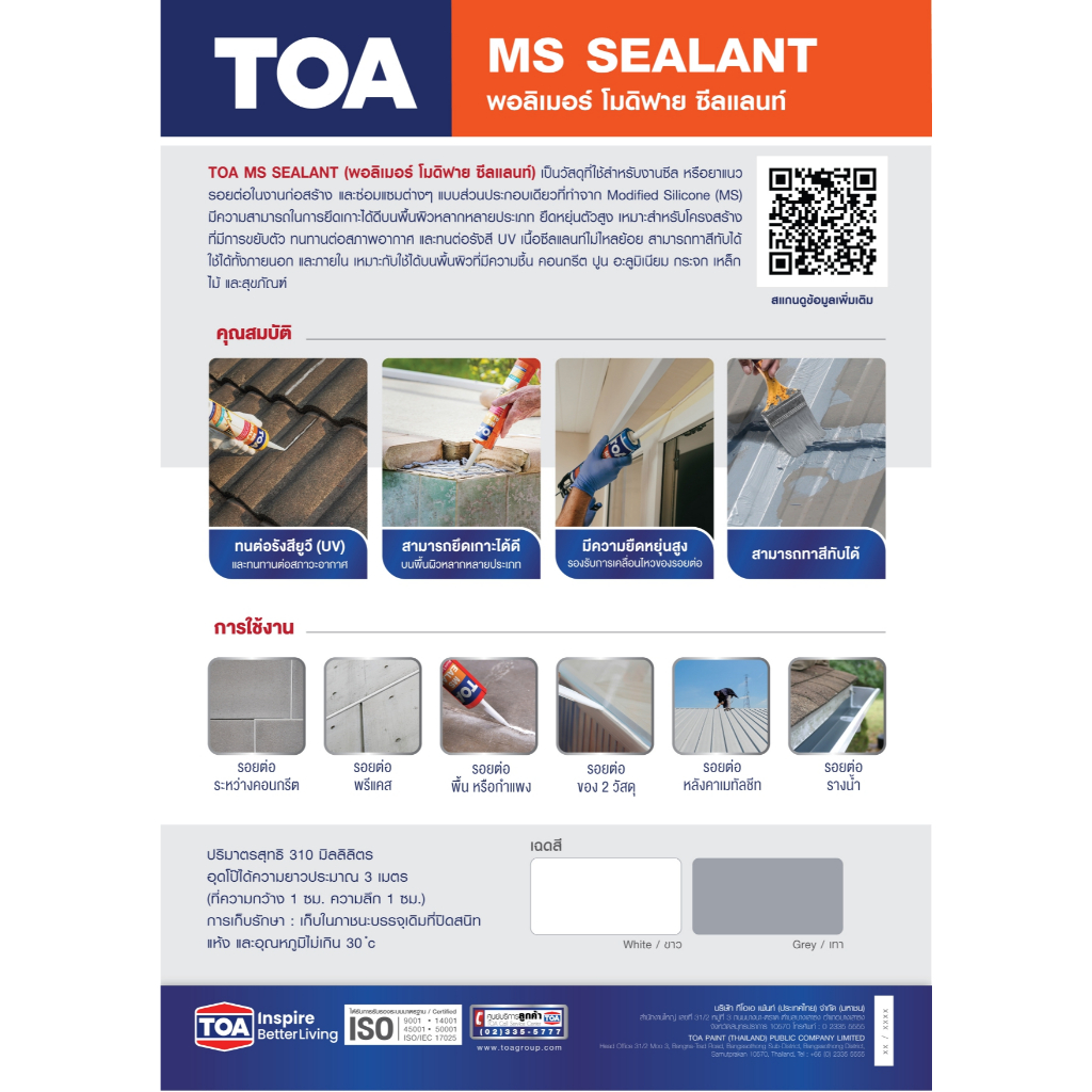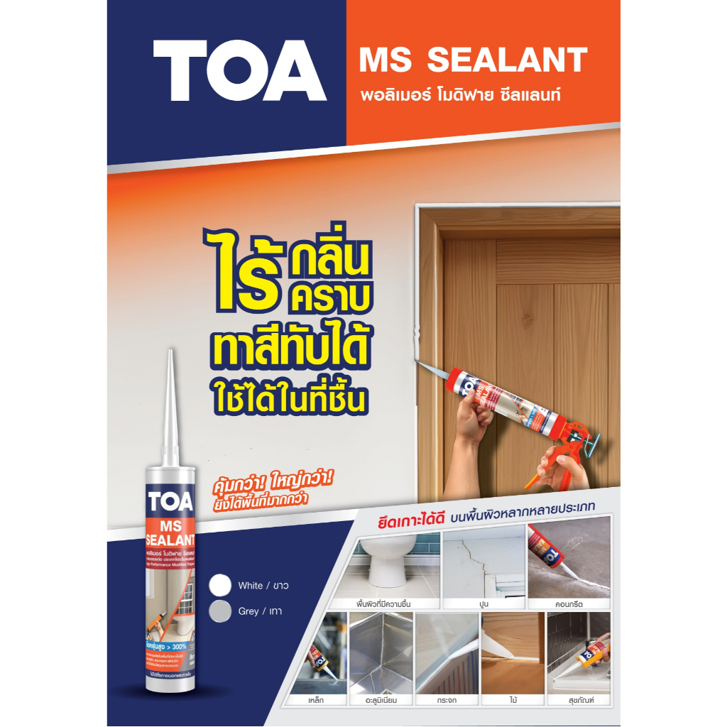 TOA MS Sealant เอ็มเอส พอลิเมอร์ โมดิฟาย ซีลแลนท์ ขนาด 310ml. 600ml. แดป กาวยาแนว ซิลิโคน ไม่ก่อคราบน้ำมัน ทาสีทับได้