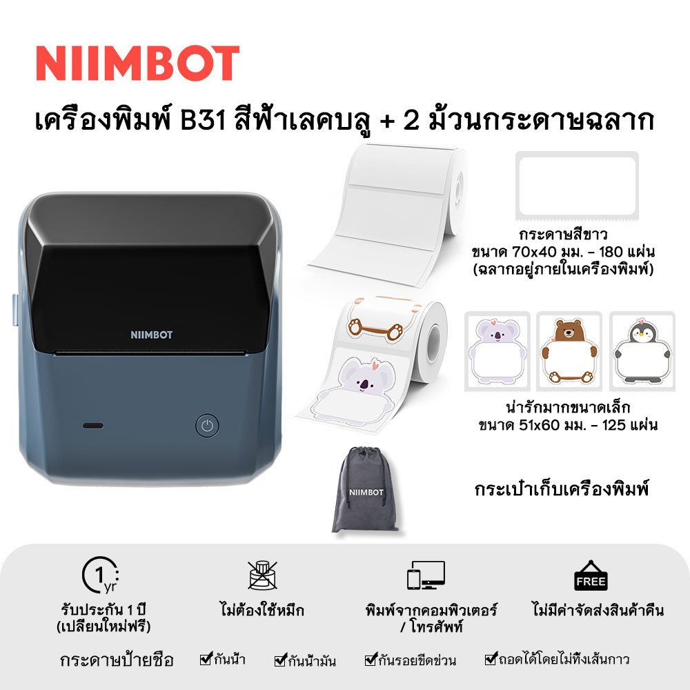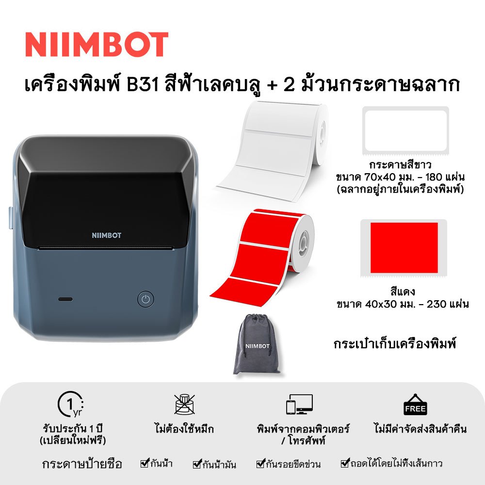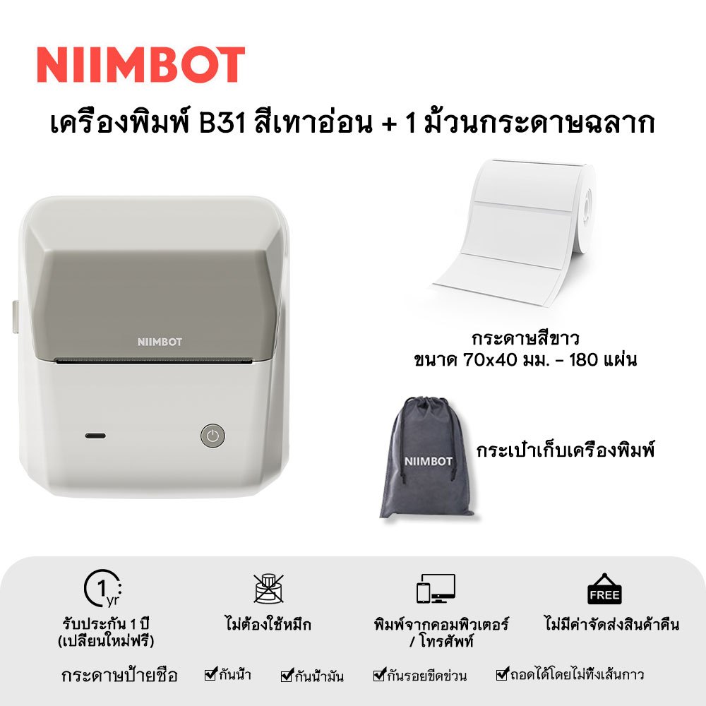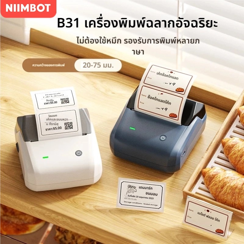 NIIMBOT B31 เครื่องพิมพ์ฉลากพกพา เครื่องพิมพ์มือถือ ความกว้างการพิมพ์ 20-75 มม.