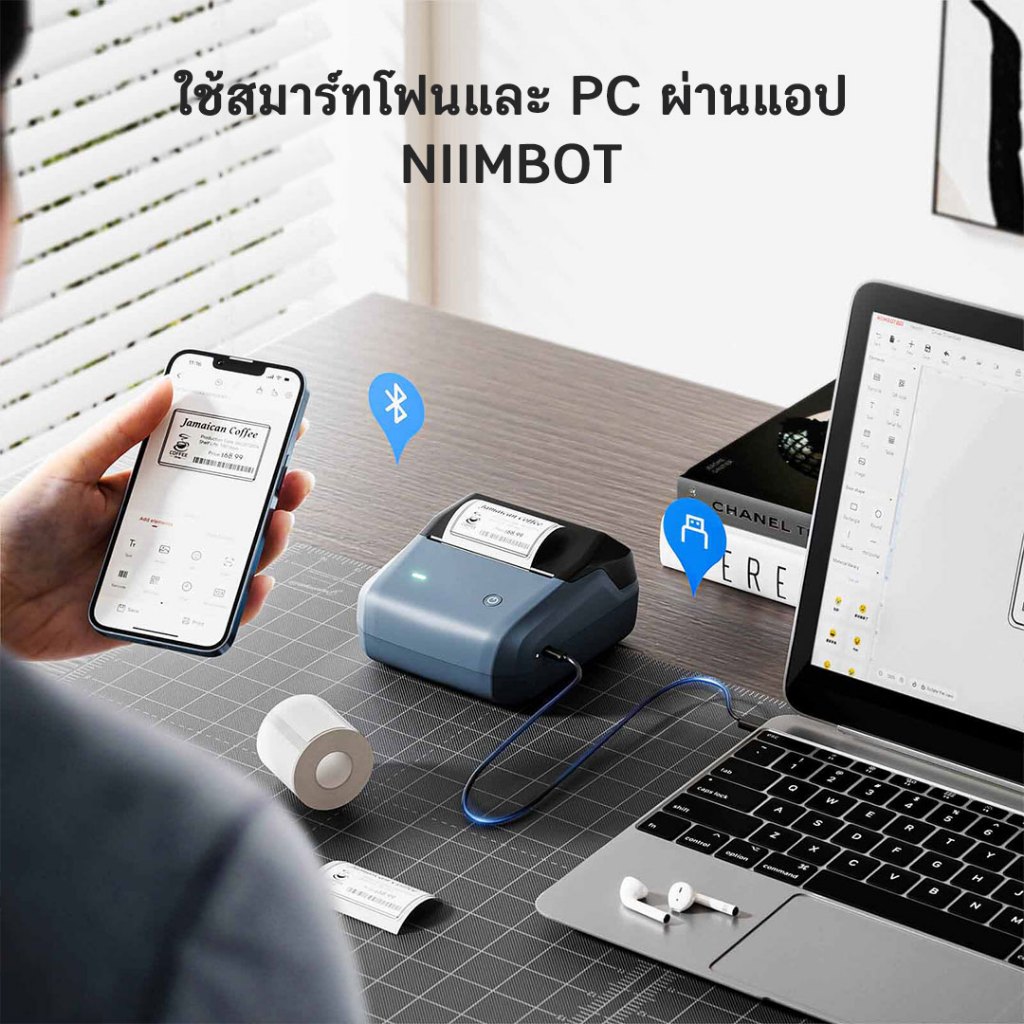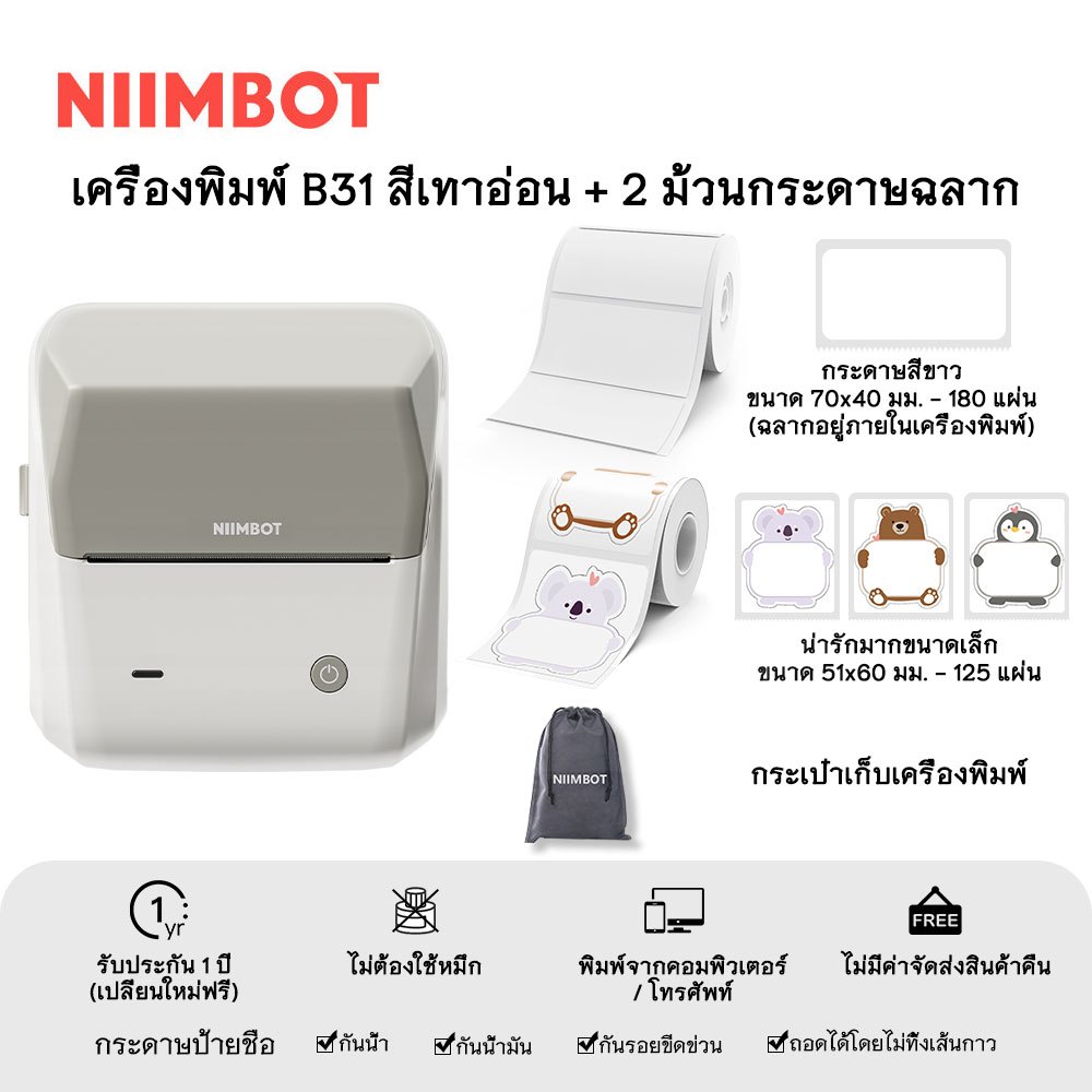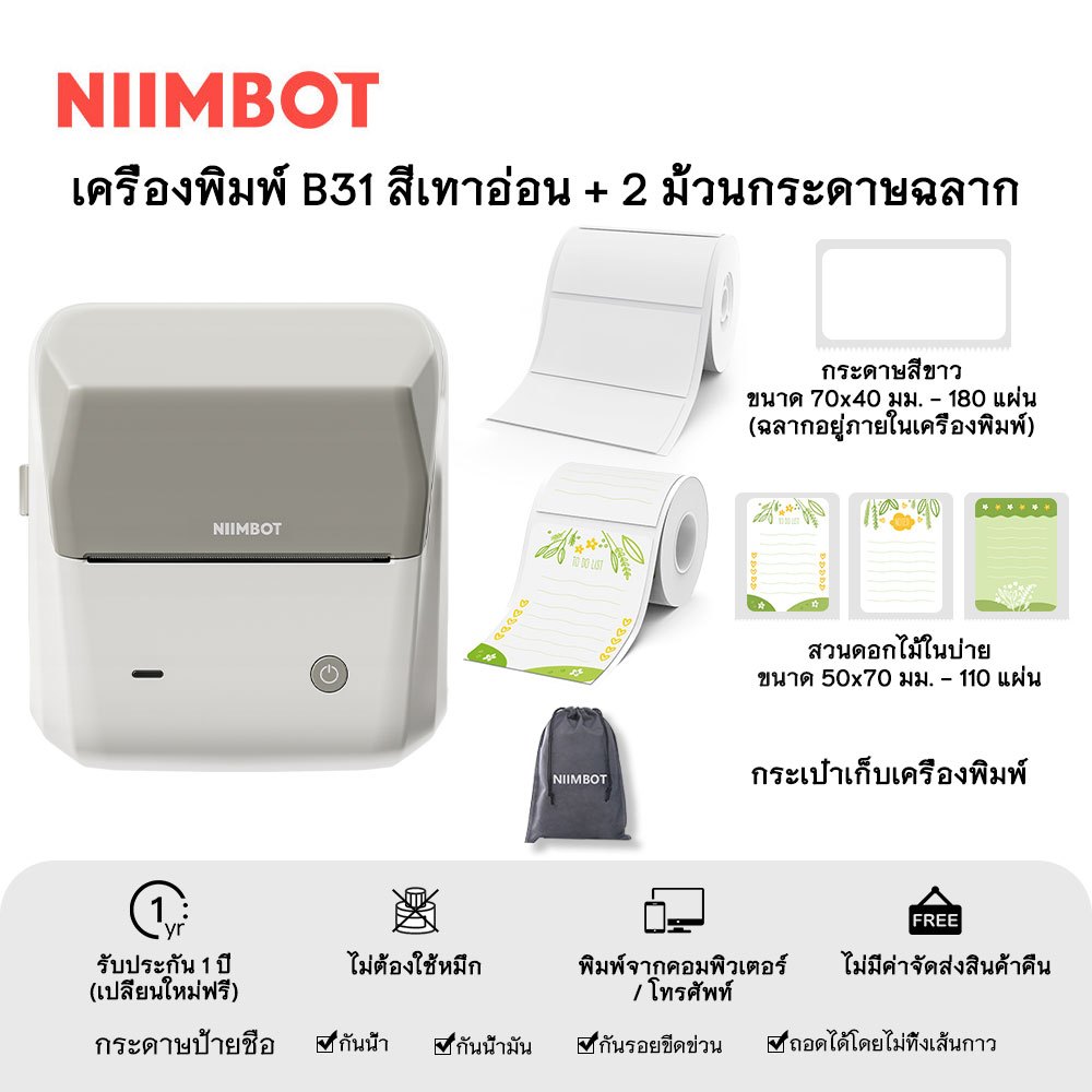 NIIMBOT B31 เครื่องพิมพ์ฉลากพกพา เครื่องพิมพ์มือถือ ความกว้างการพิมพ์ 20-75 มม.